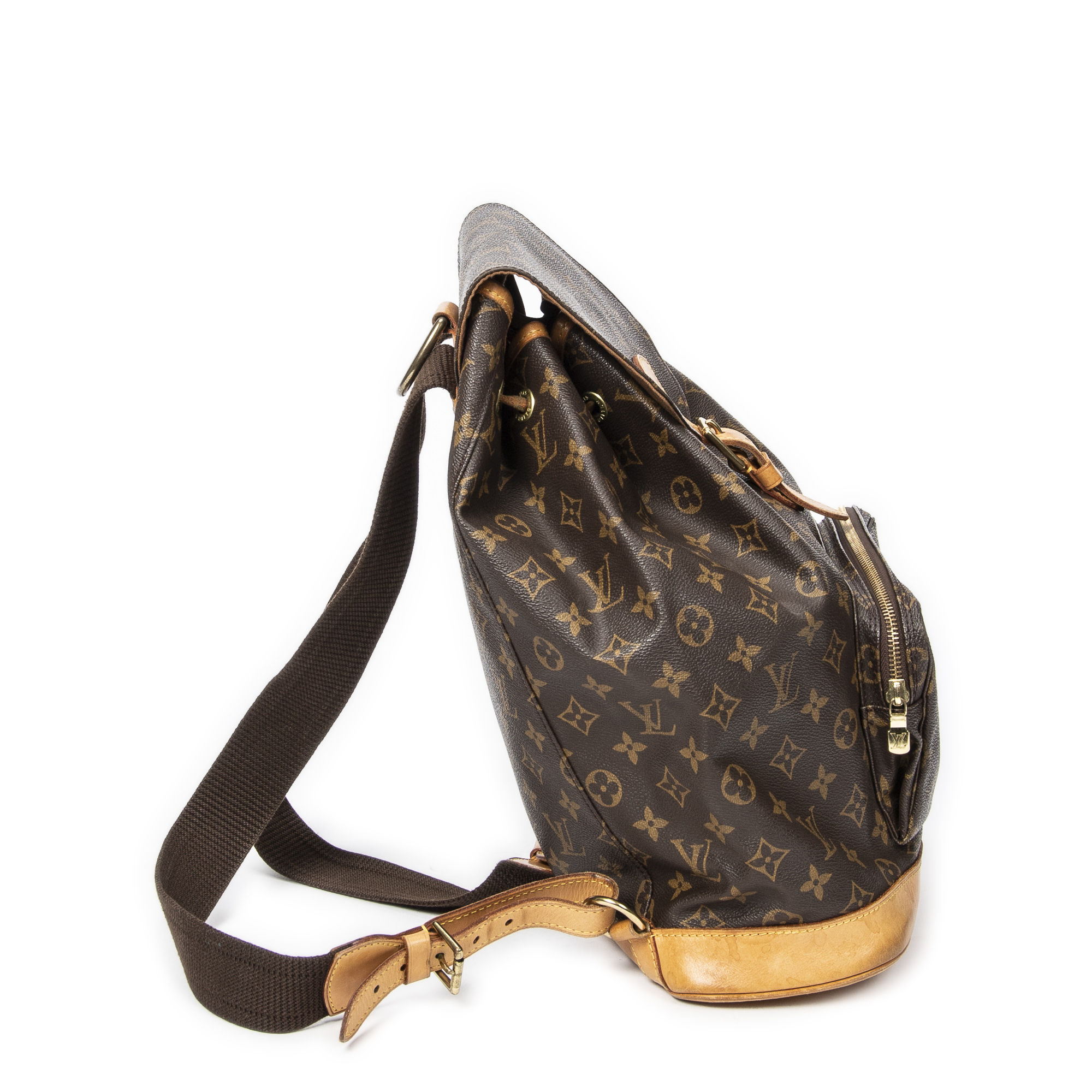 Louis Vuitton Sac à dos Montsouris GM en Brown et Cuivre d’Or. Le produit est en Très Bon état (AB).