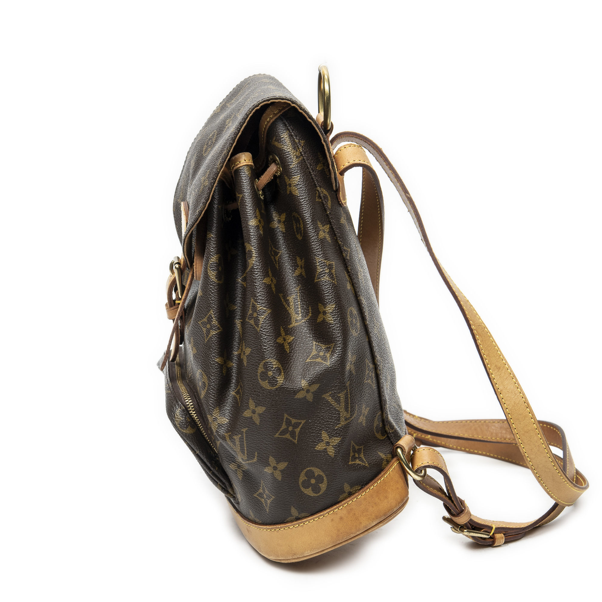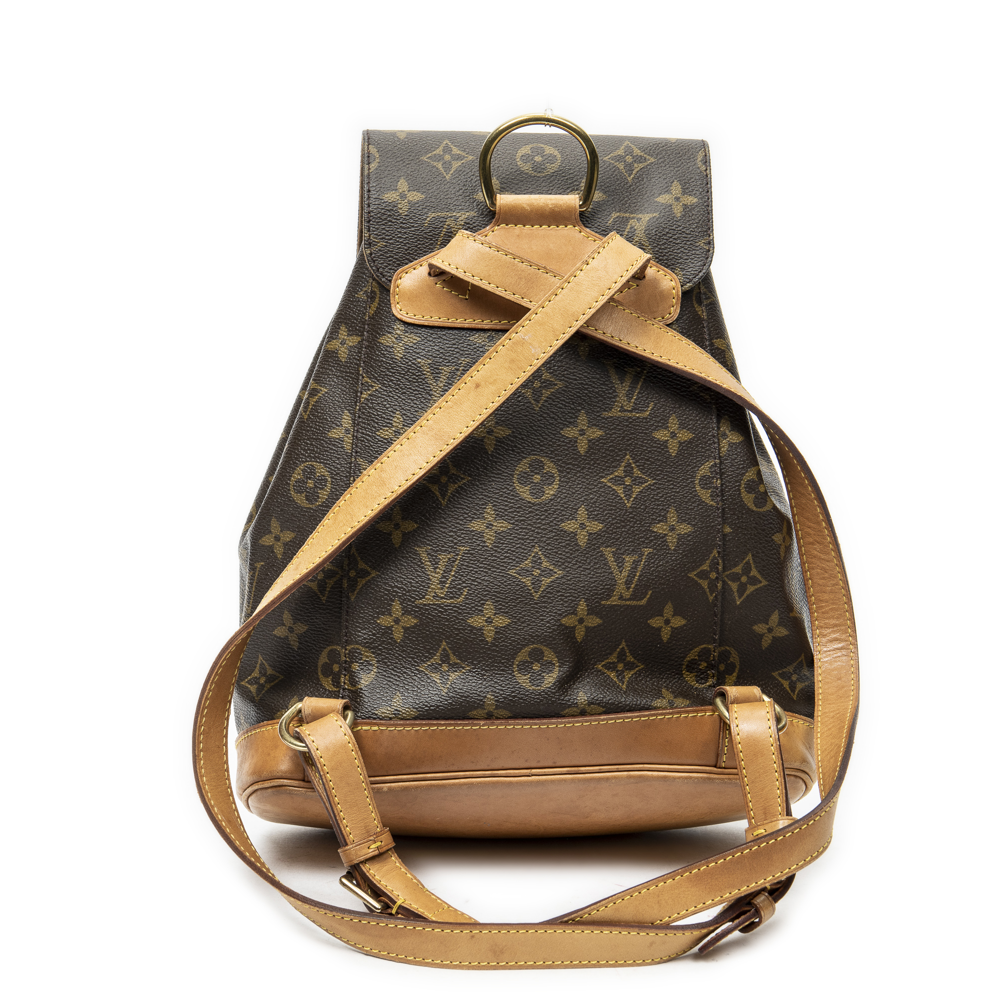 Louis Vuitton Sac à dos Montsouris MM en Brown et Cuivre d’Or. Le produit est en Très Bon état (AB).