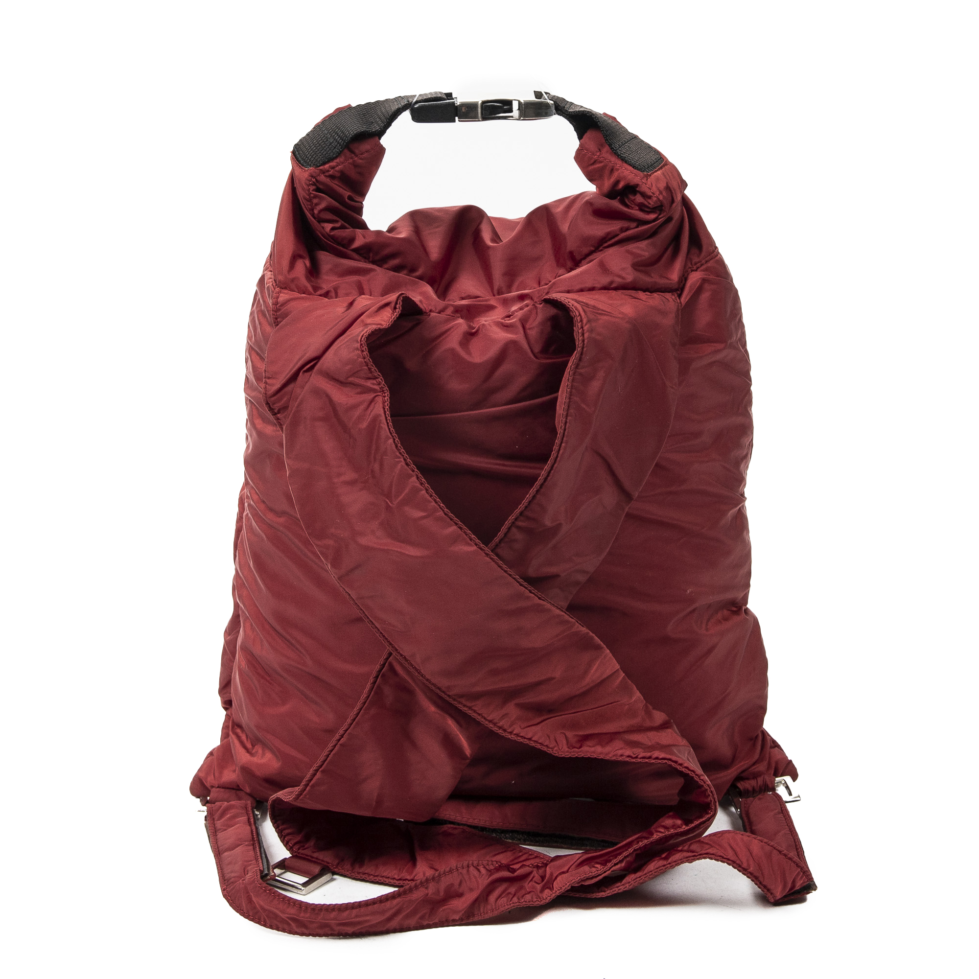 Prada Sac à dos Sport Nylon Backpack en Rouge foncé et Argent. Le produit est en Excellent état (A).