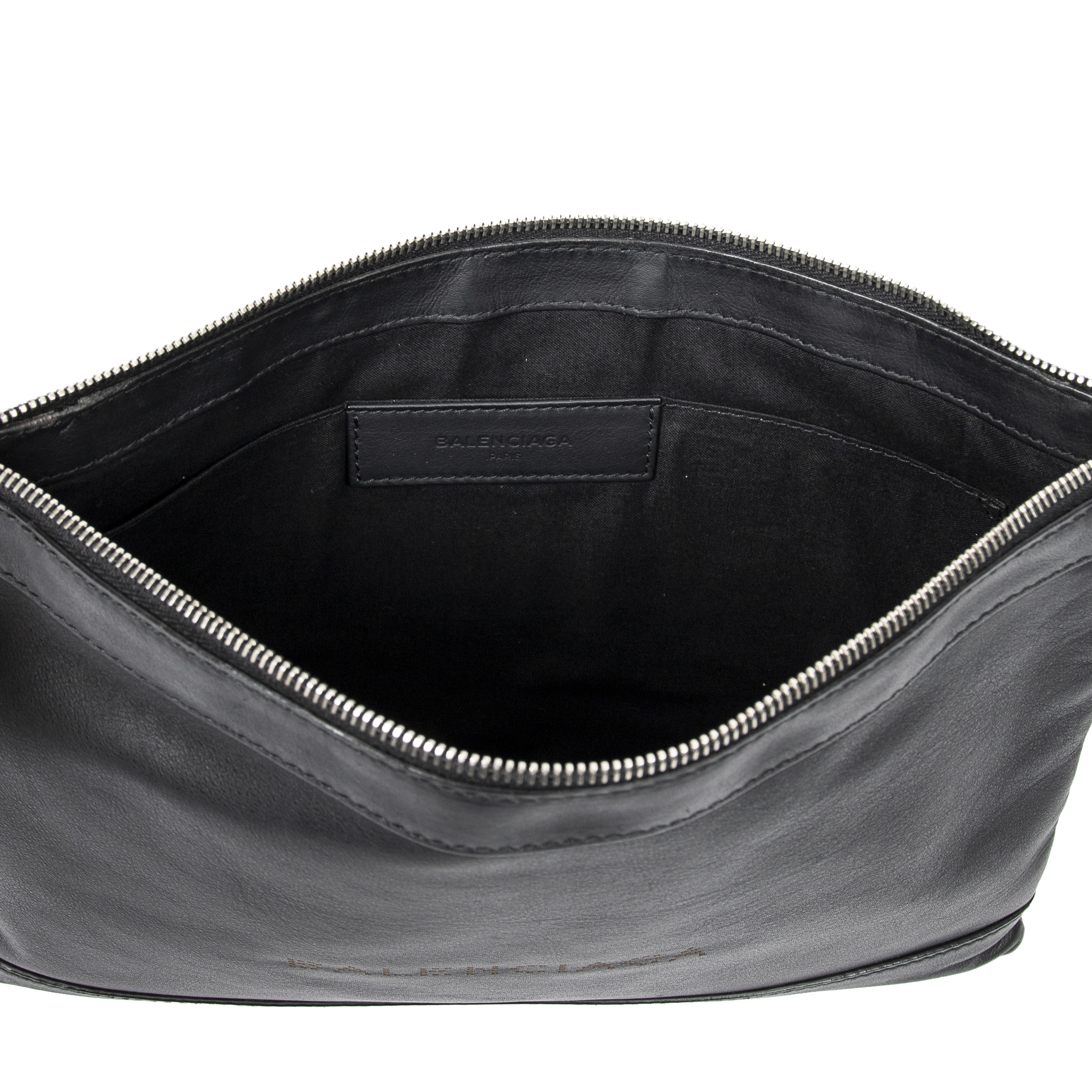 Balenciaga Sac à main M Navy Clip Pouch en Black et Argent. Le produit est en Excellent état (A).