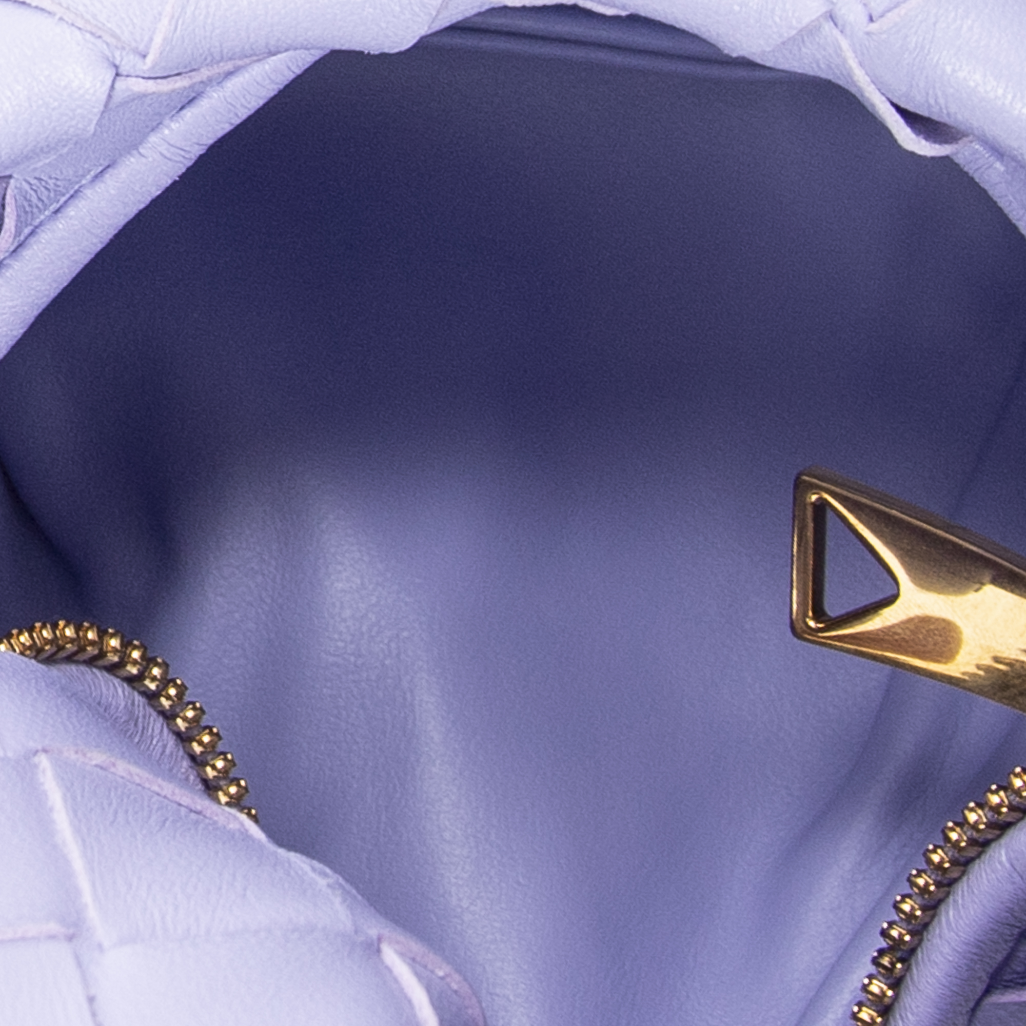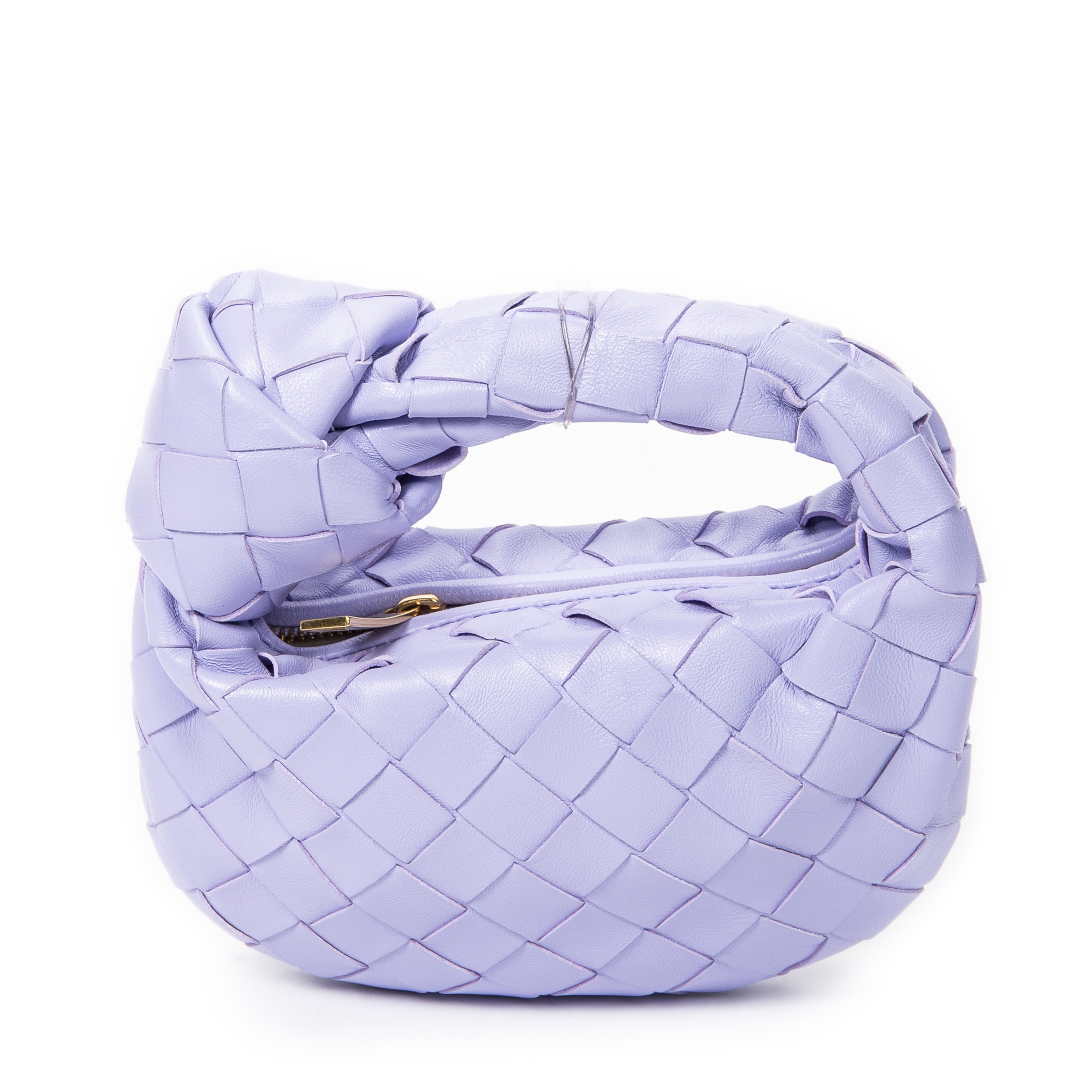 Bottega Veneta Sac à main Micro Candy Jodie en Lilas et Gold. Le produit est en Parfait état (AA).