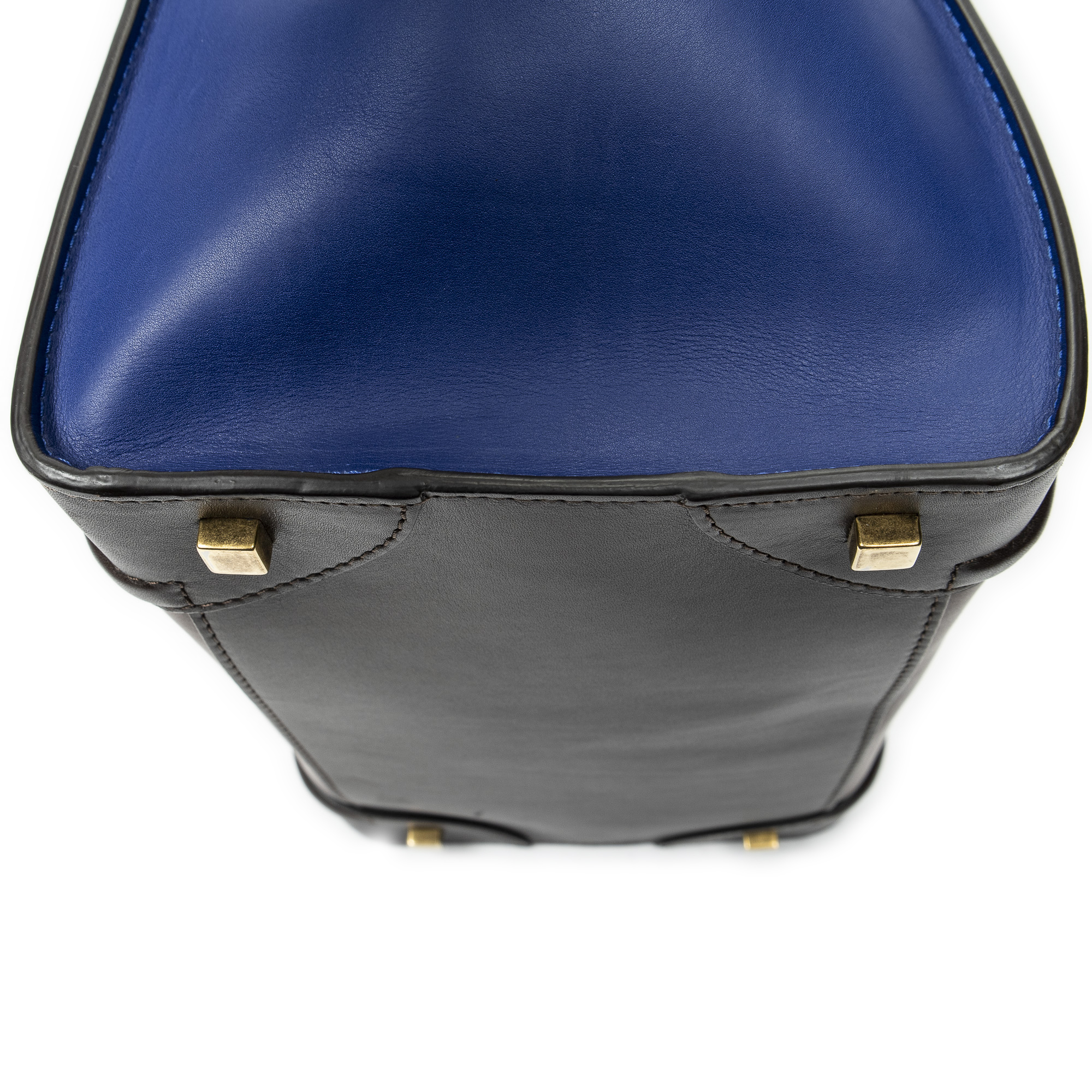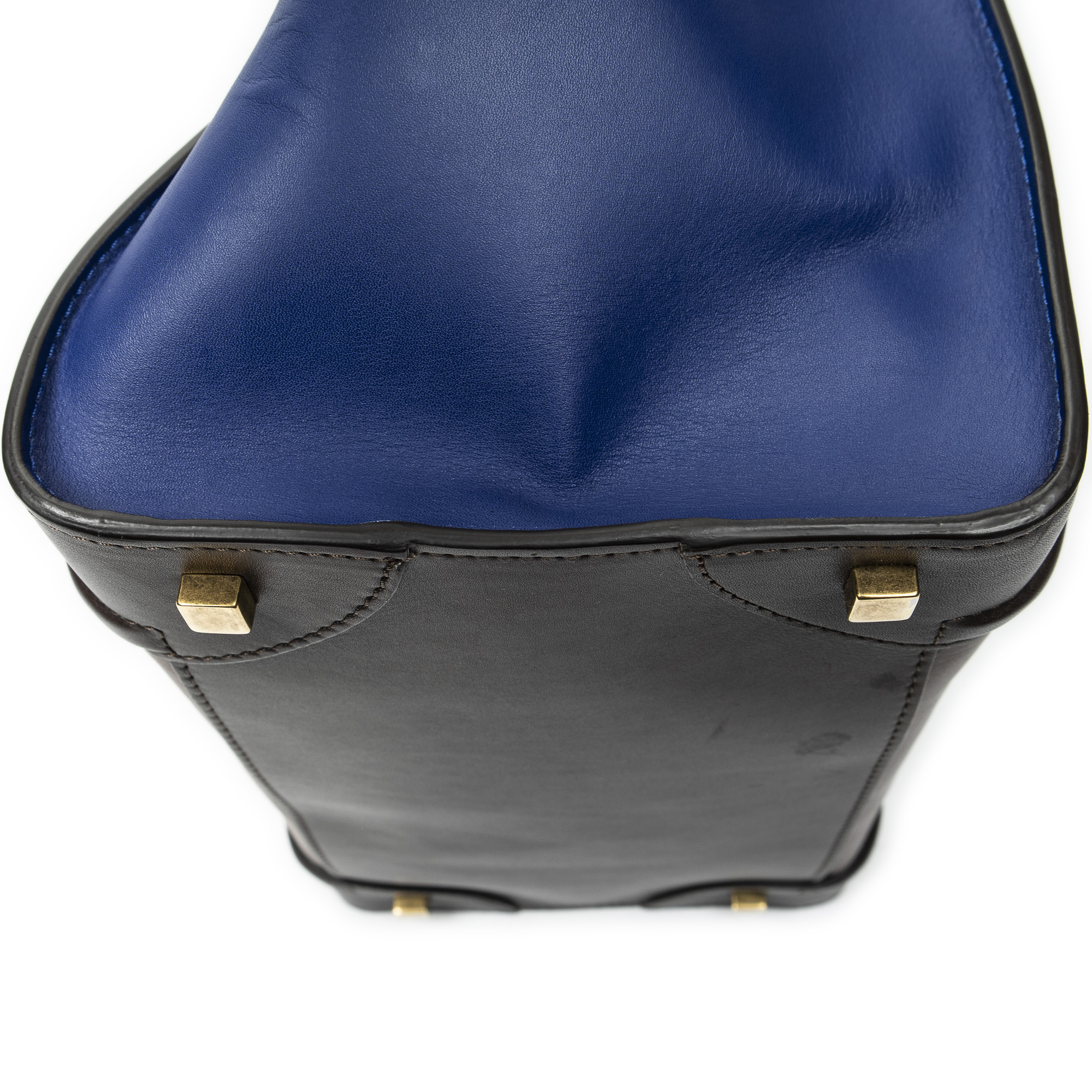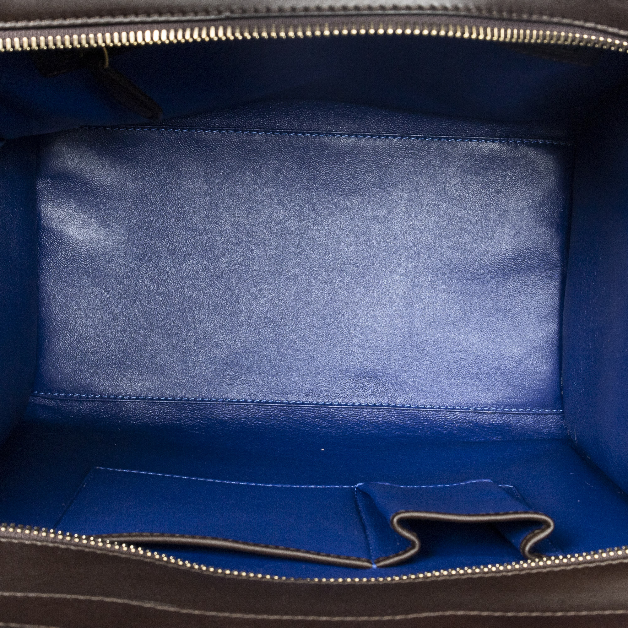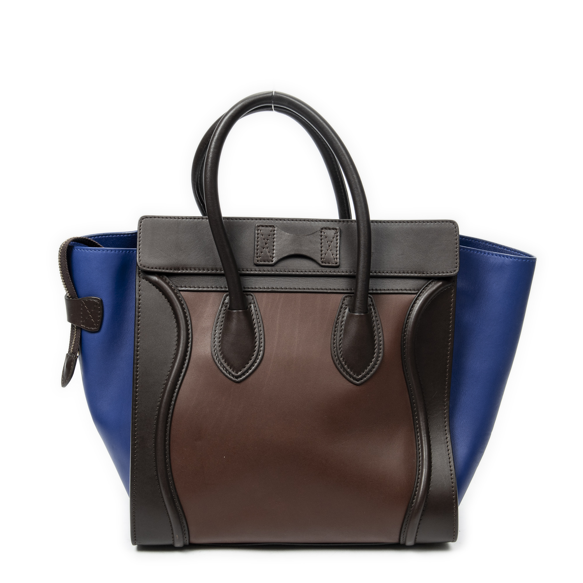 Celine Sac à main Medium Tricolor Luggage en Du cuir de veau brun et or. Le produit est en Excellent état (A).