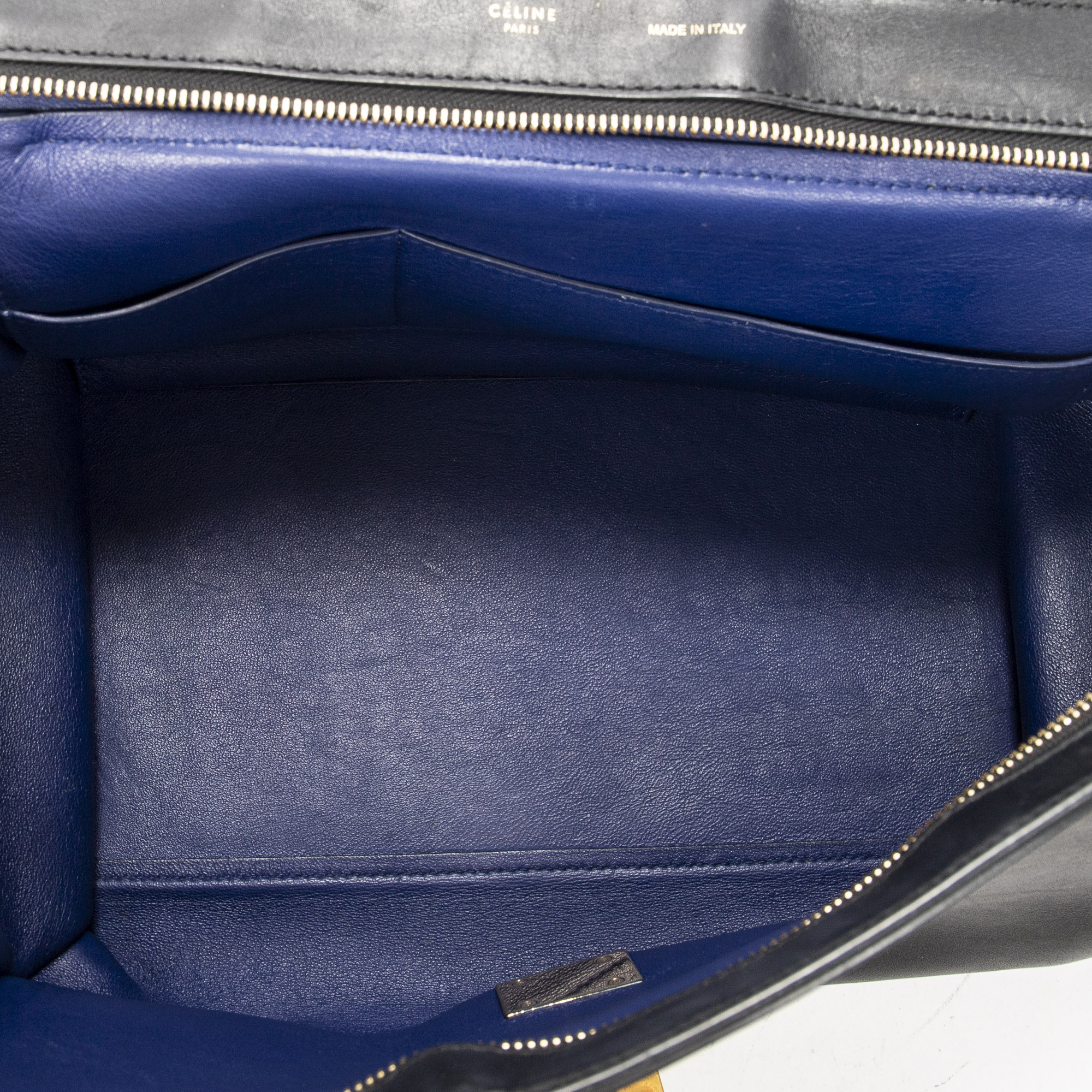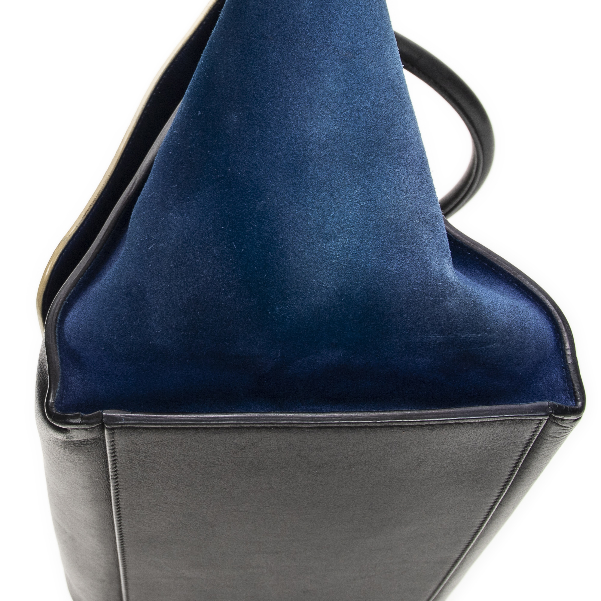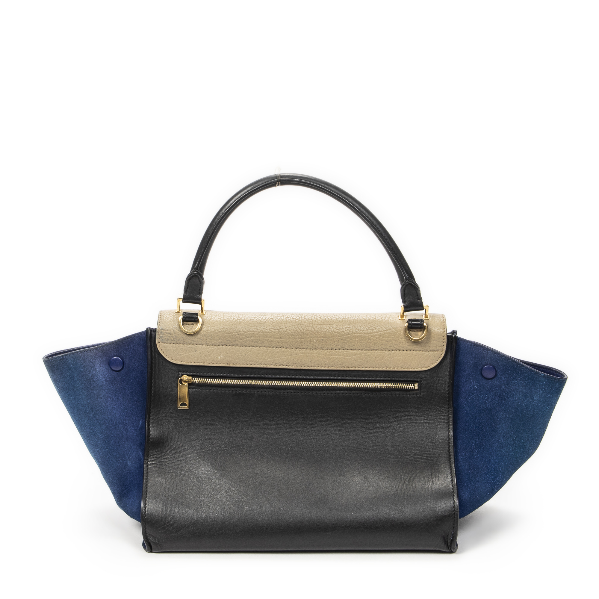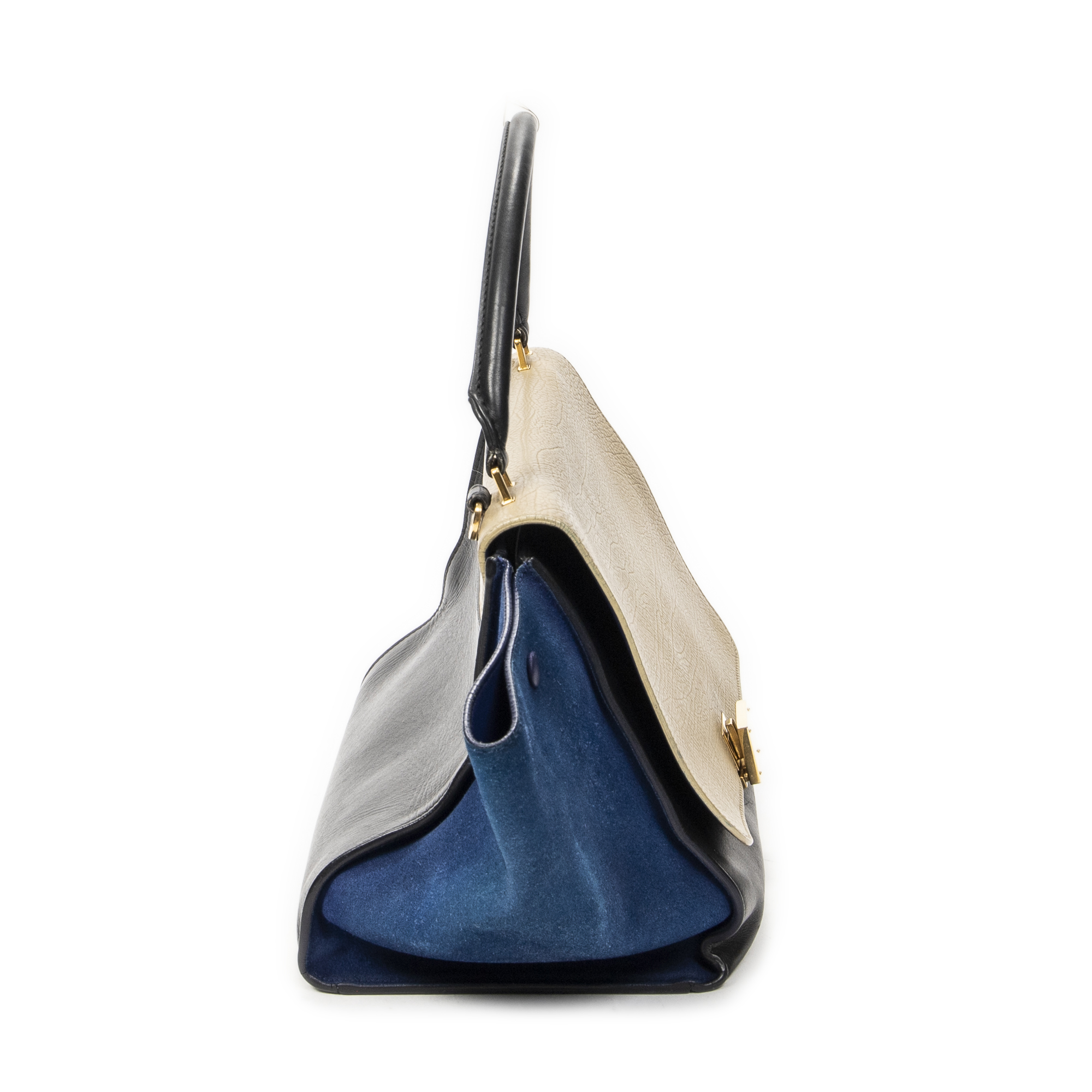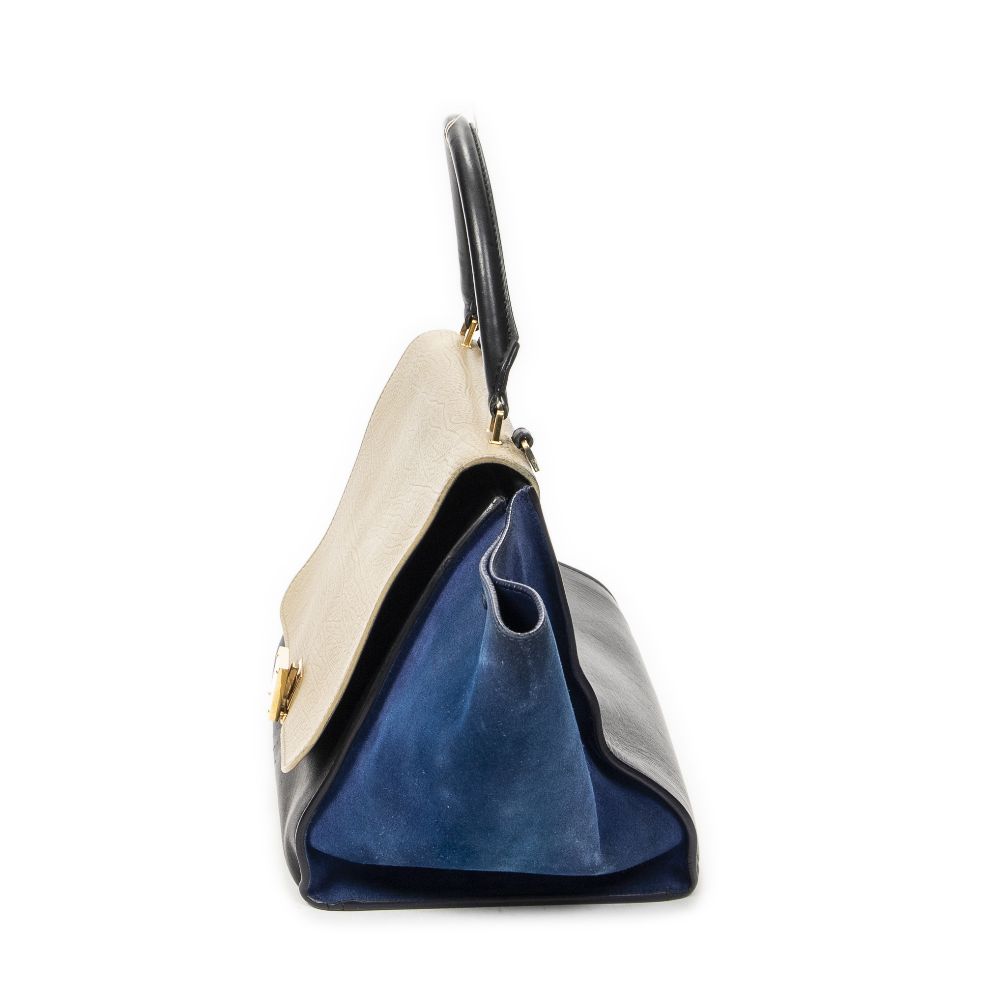 Celine Sac à main Medium Tricolor Trapeze en Du cuir de veau beige et or. Le produit est en Très Bon état (AB).