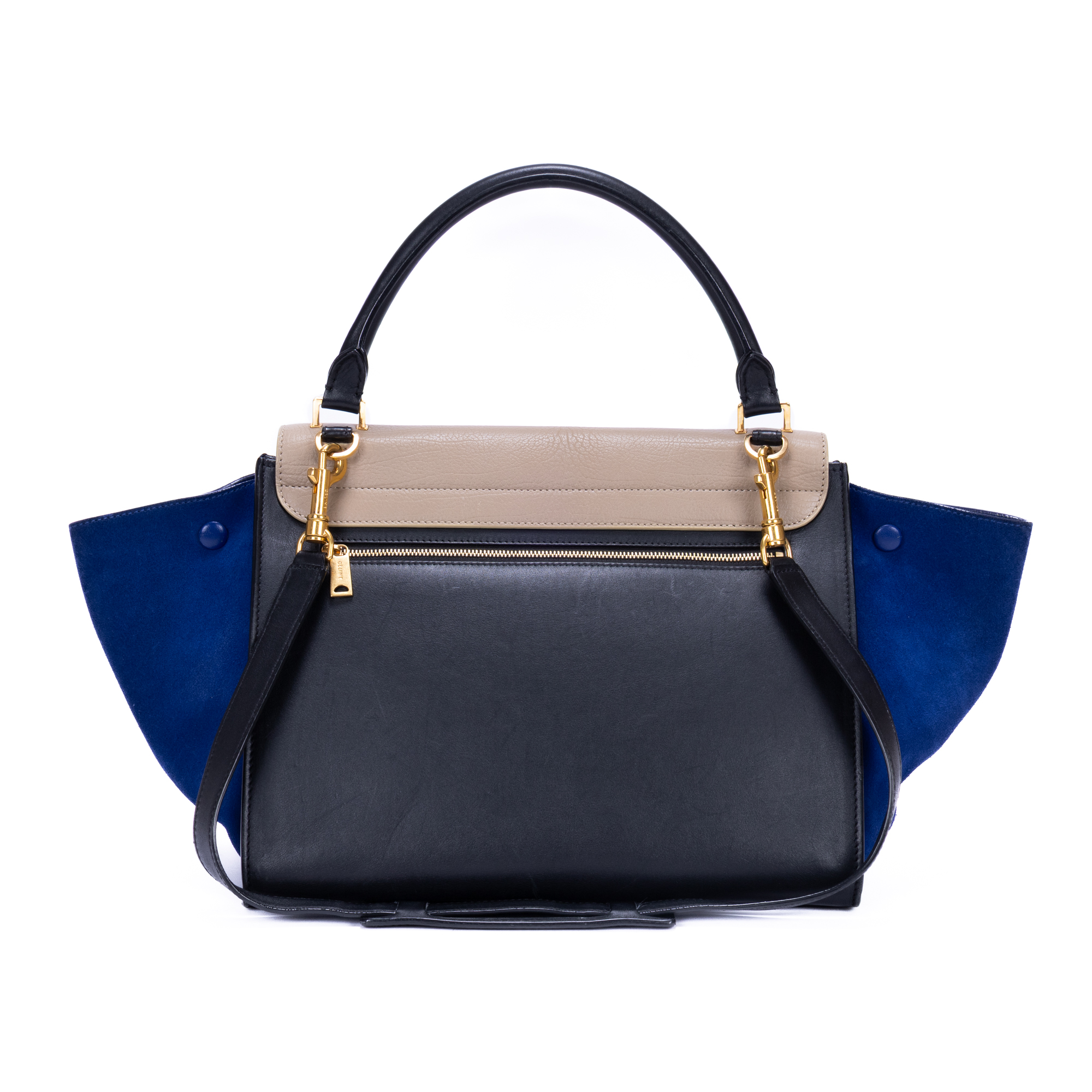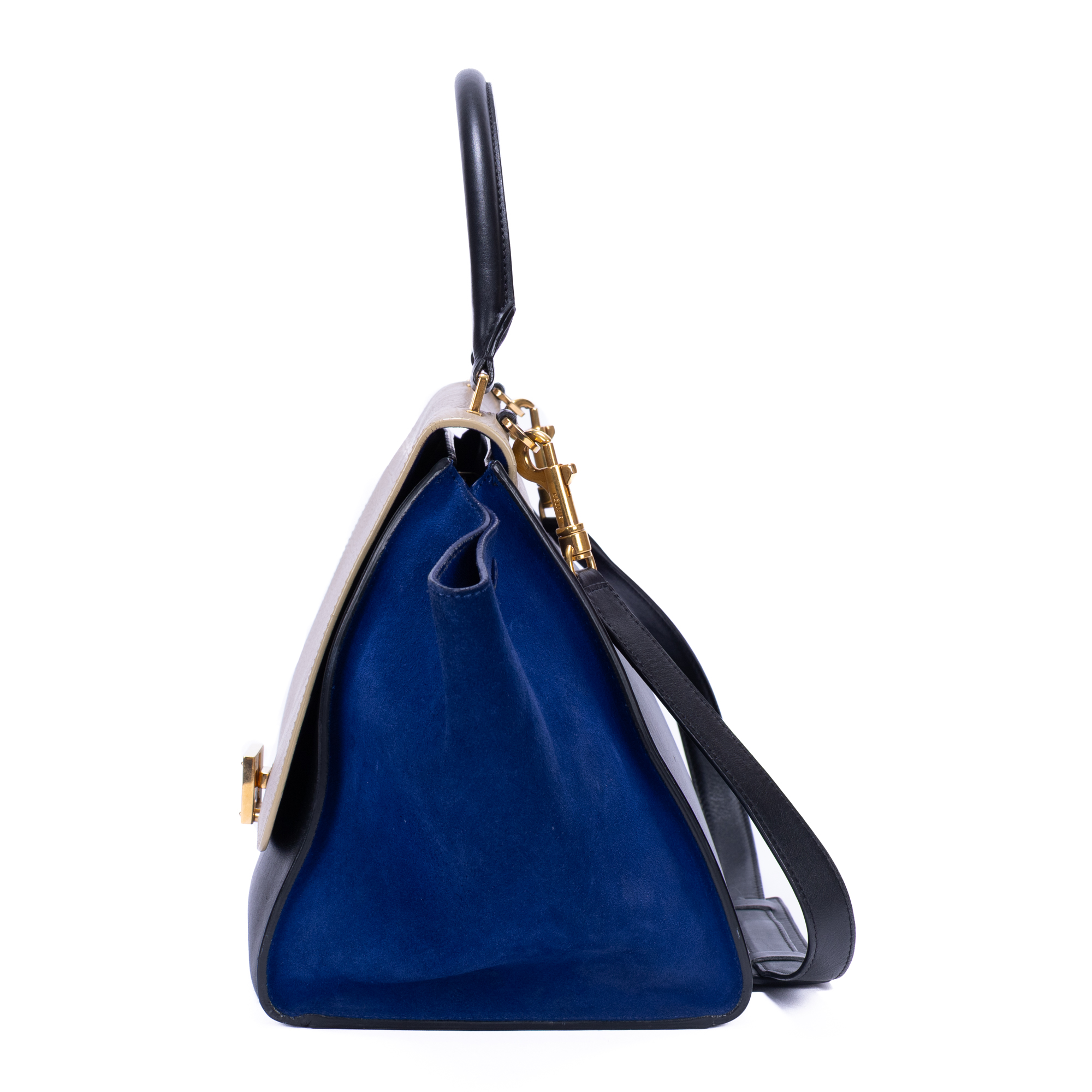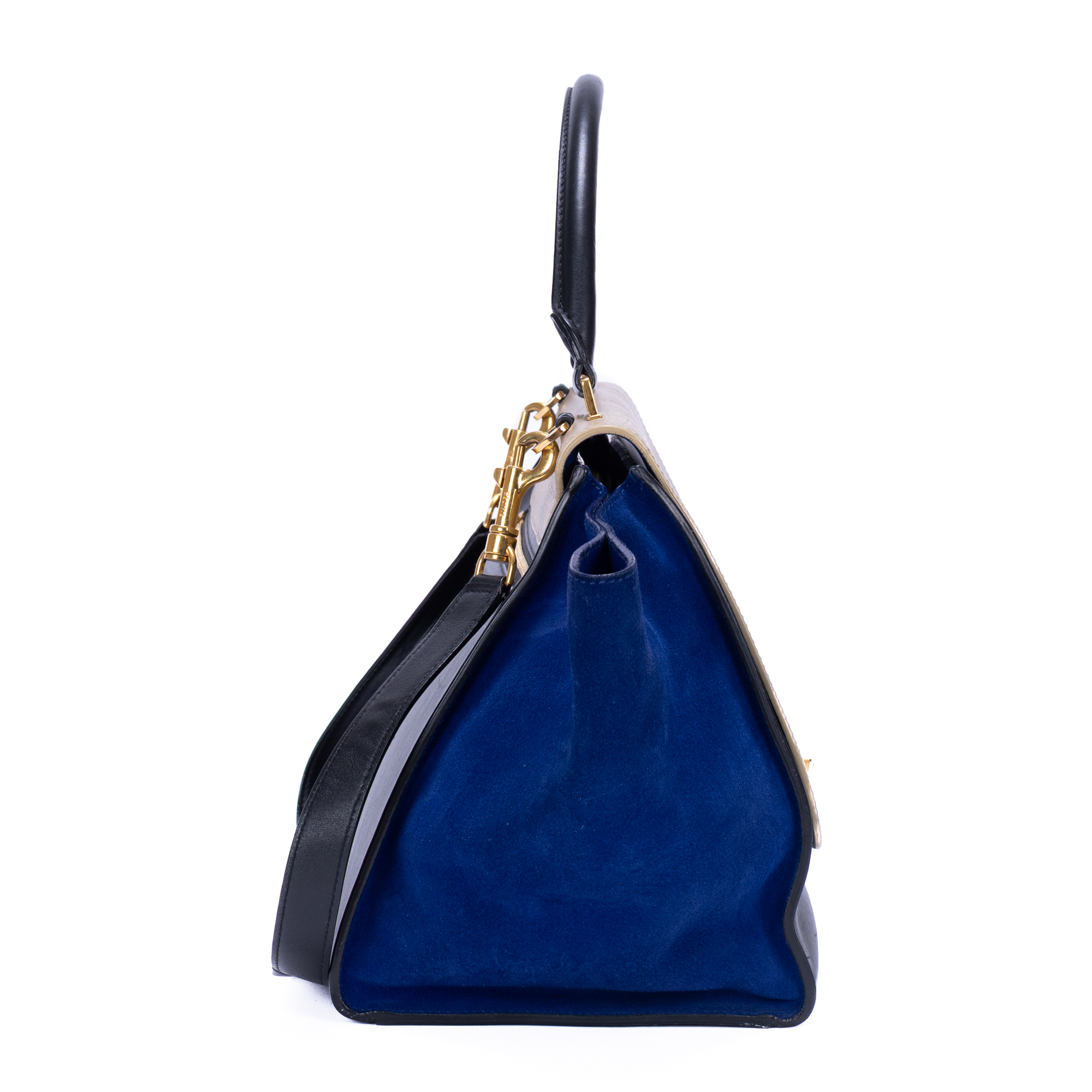 Celine Sac à main Trapeze Medium en Du cuir de veau Gris/Noir/Bleu et Or. Le produit est en Parfait état (AA).