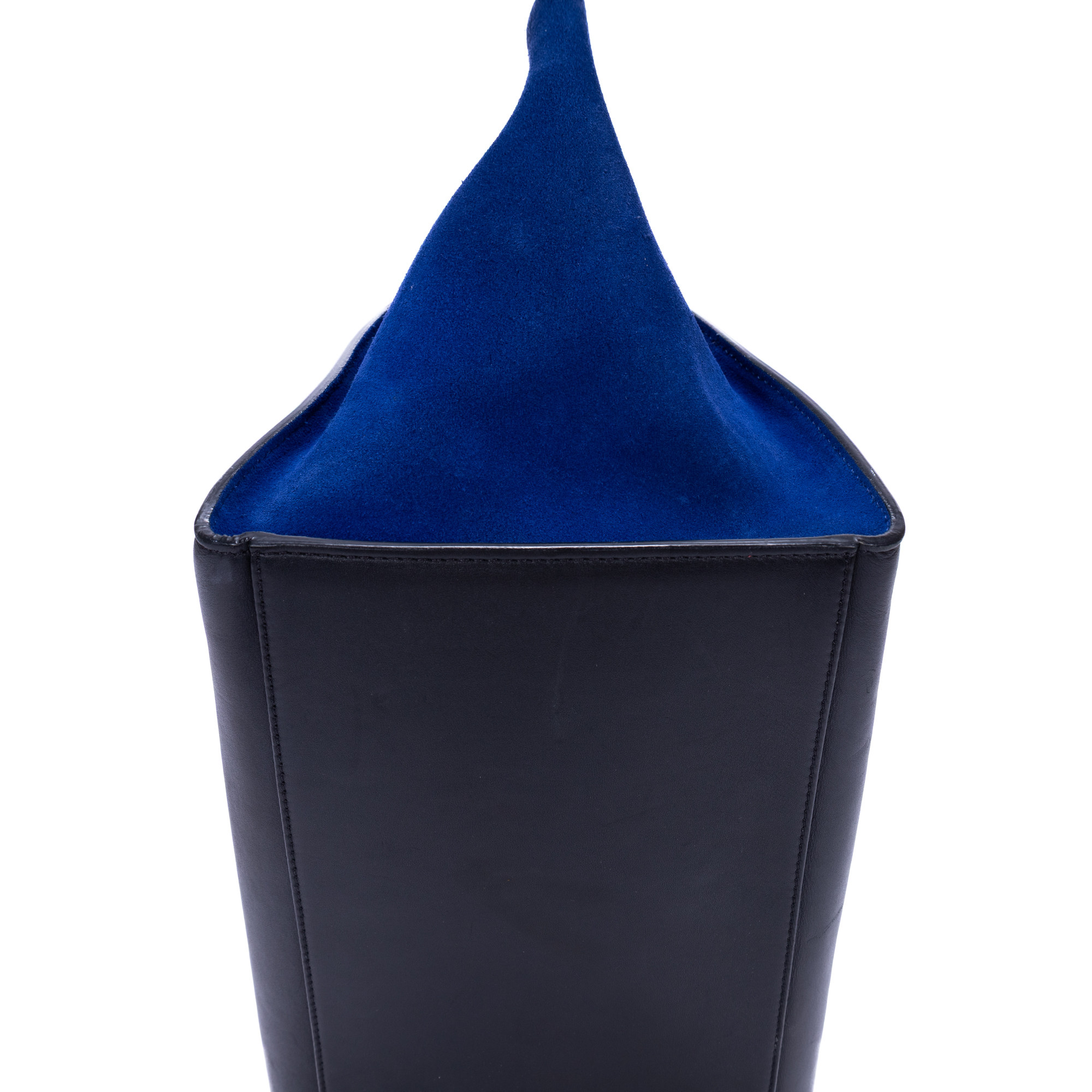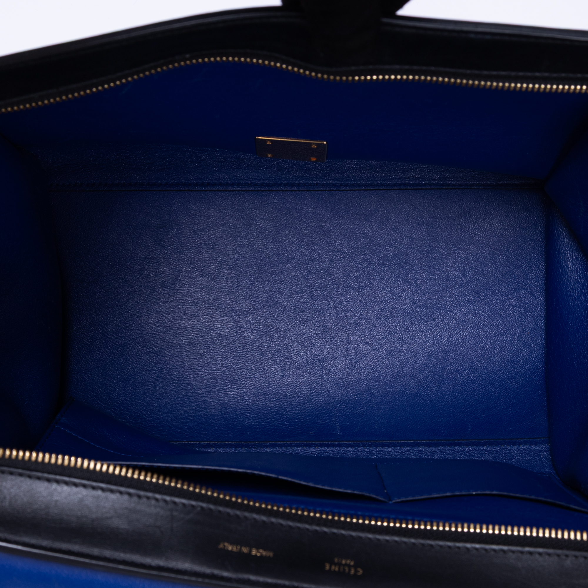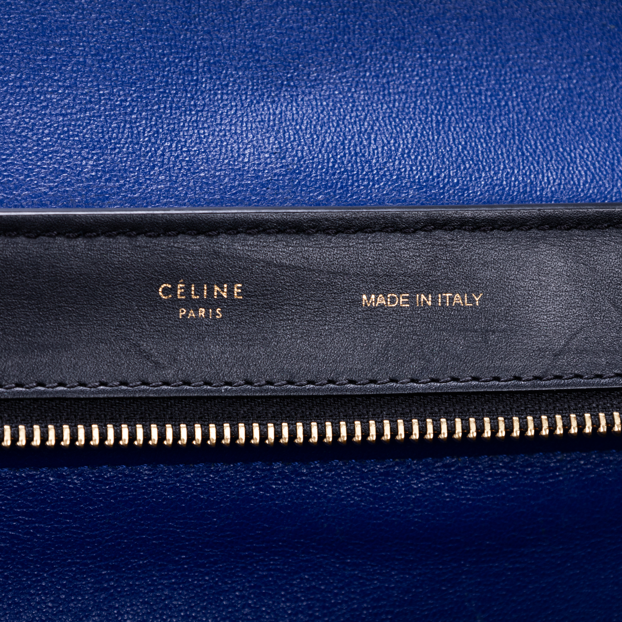 Celine Sac à main Trapeze Medium en Du cuir de veau Gris/Noir/Bleu et Or. Le produit est en Parfait état (AA).