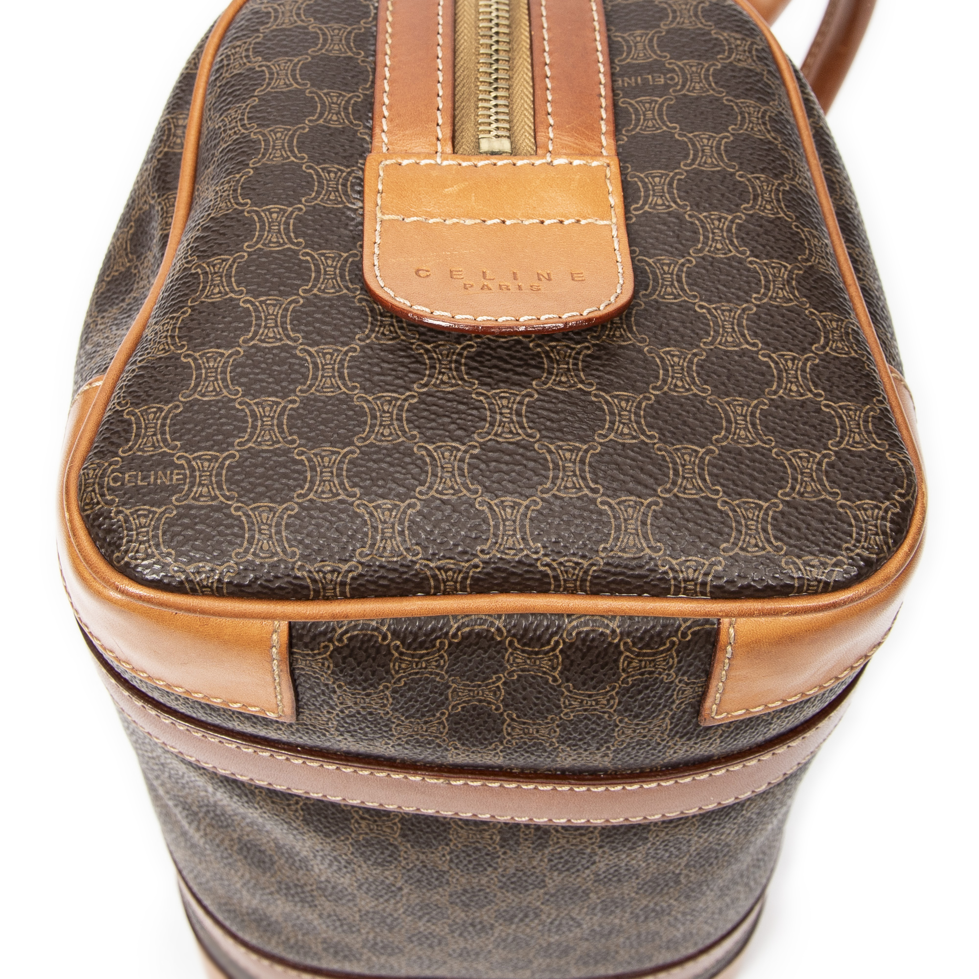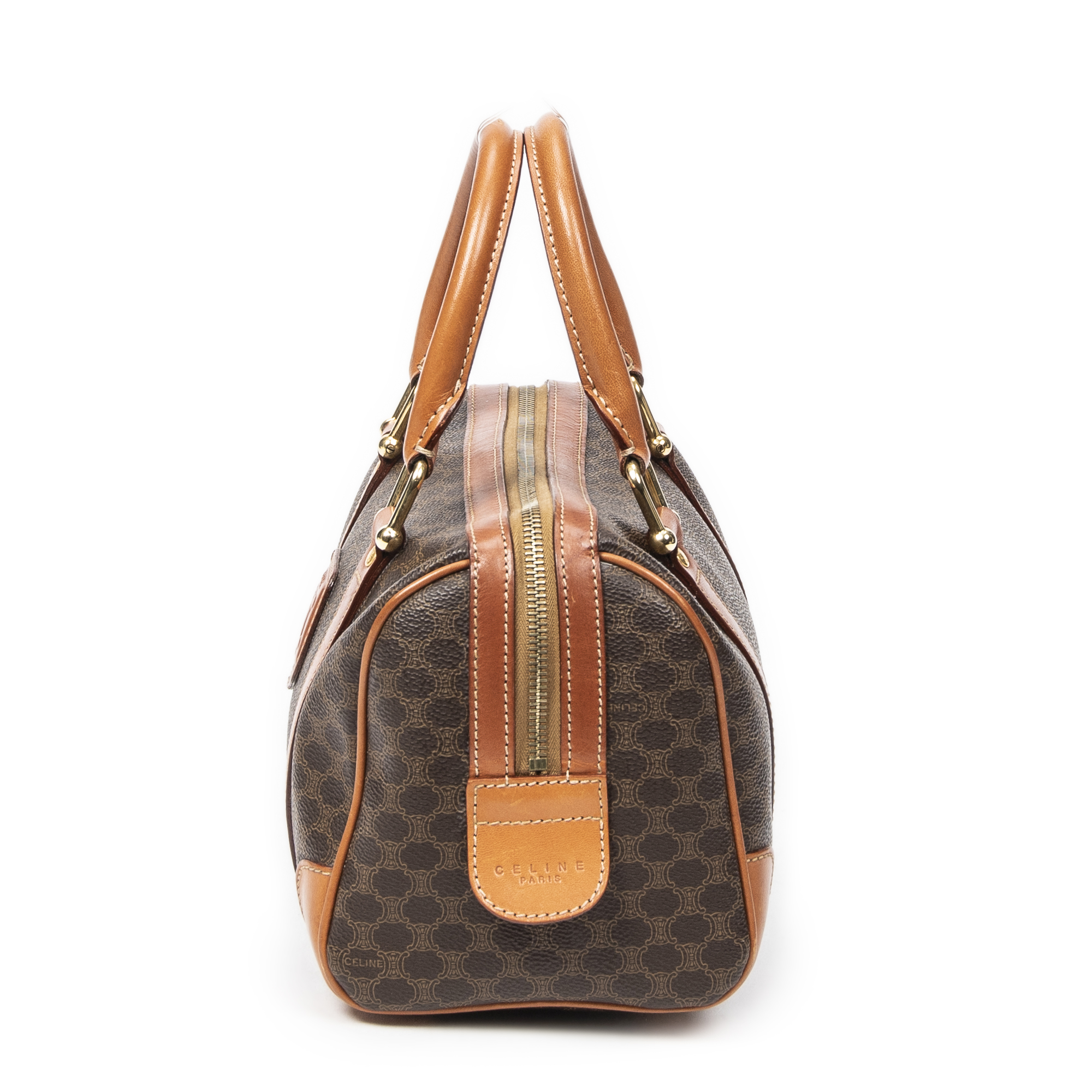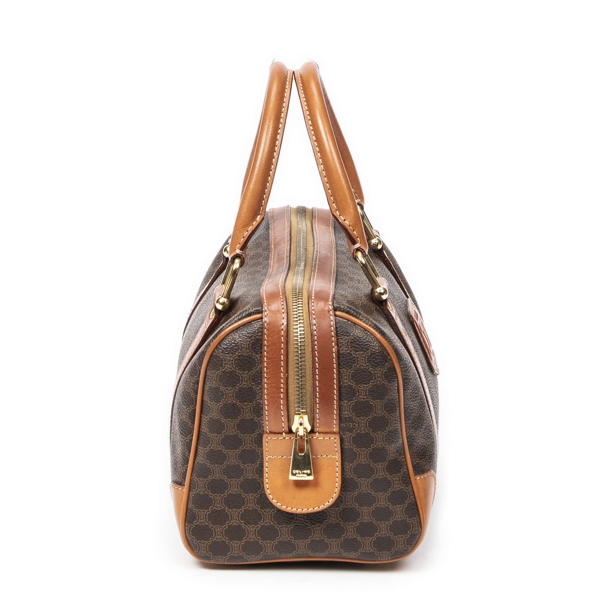 Celine Sac à main Vintage Mini Boston en Brown et Gold. Le produit est en Très Bon état (AB).