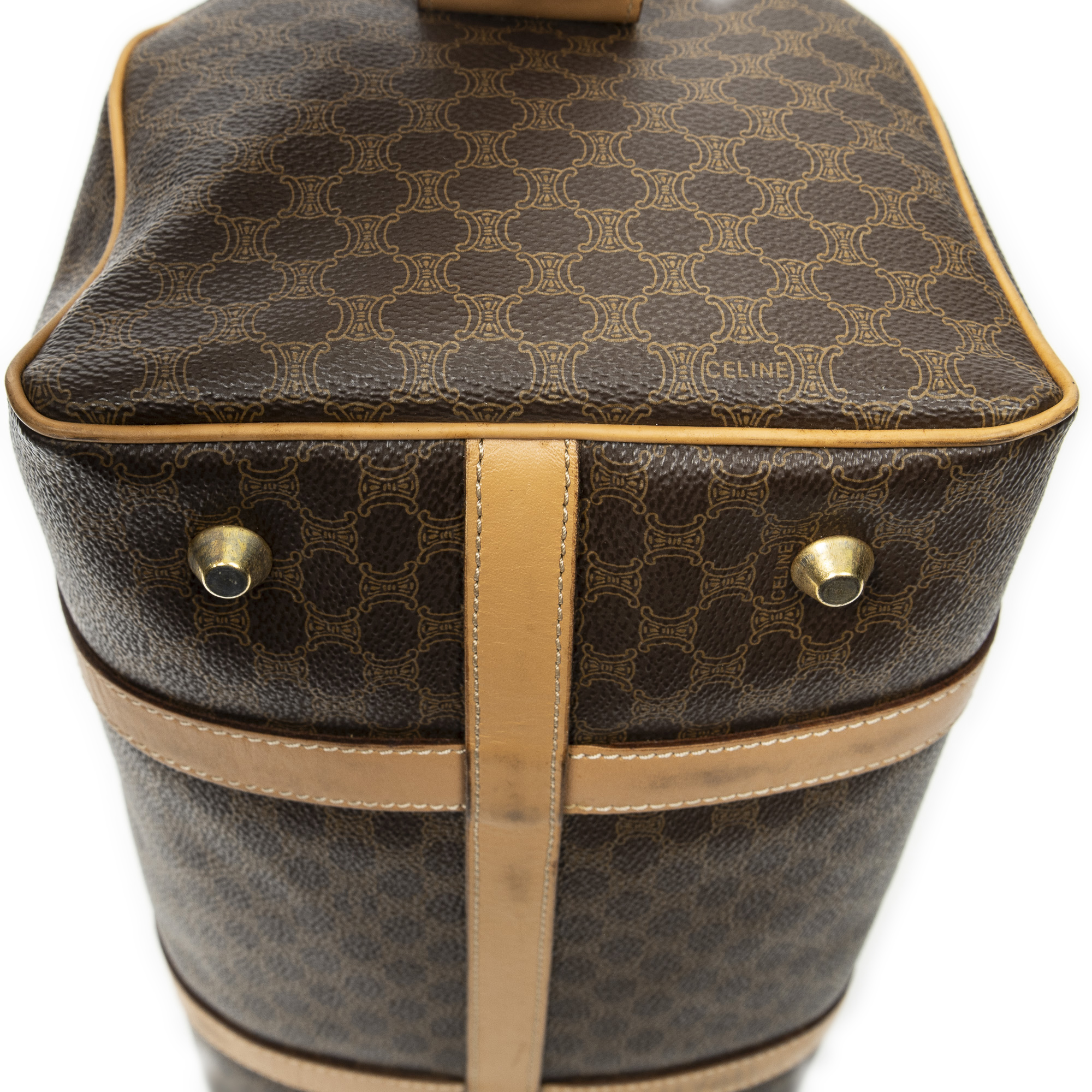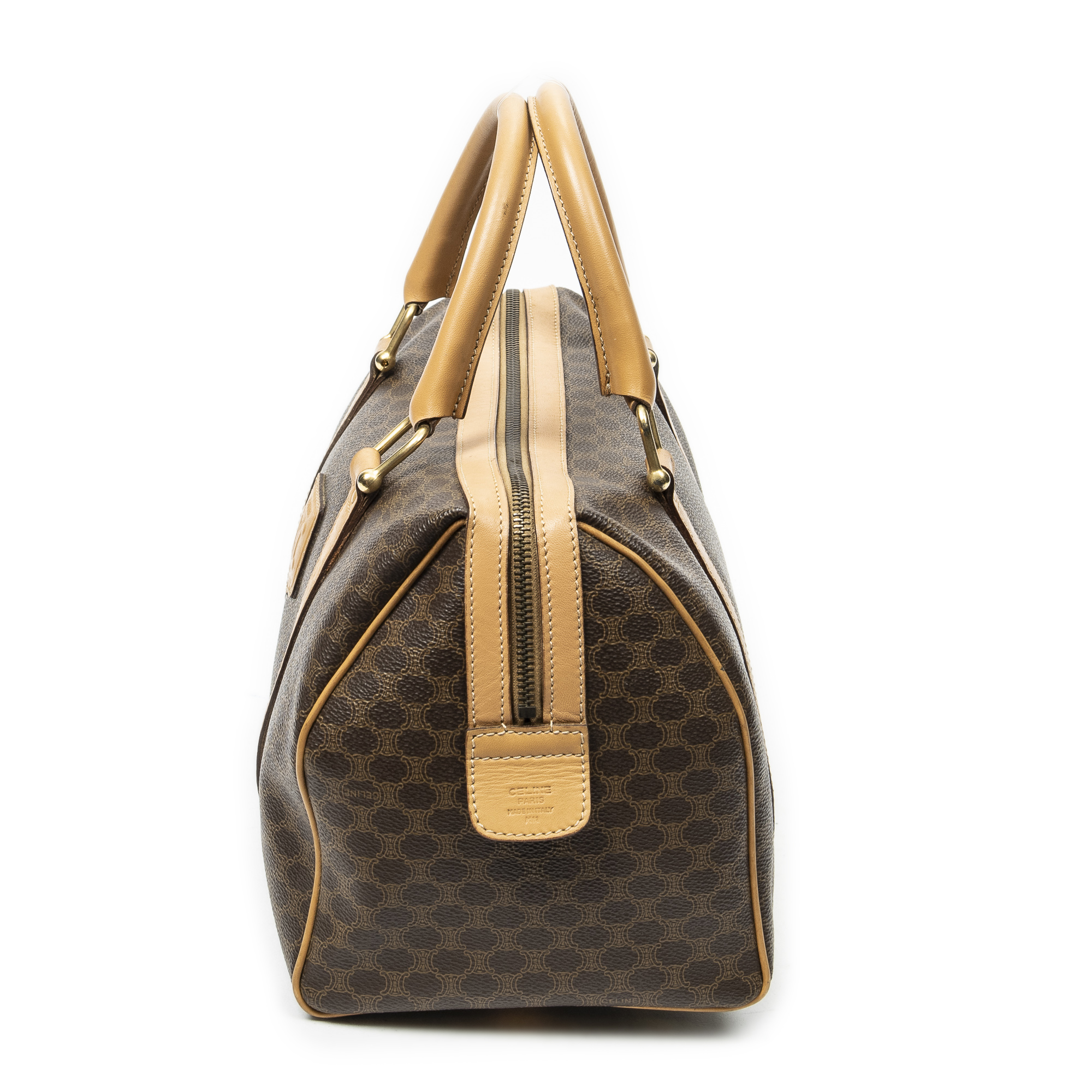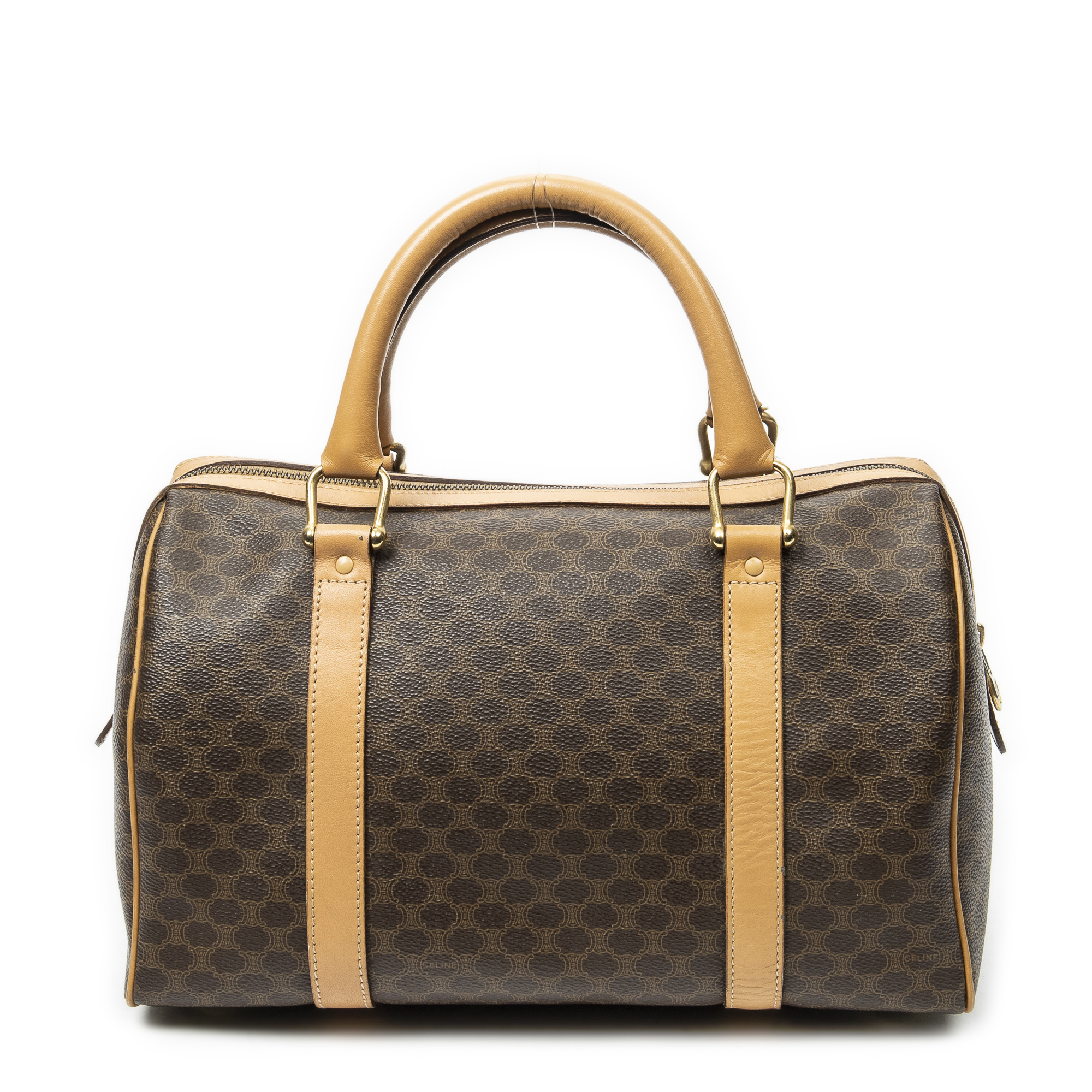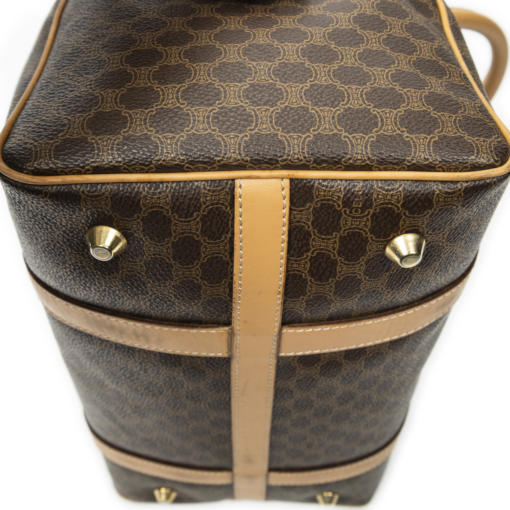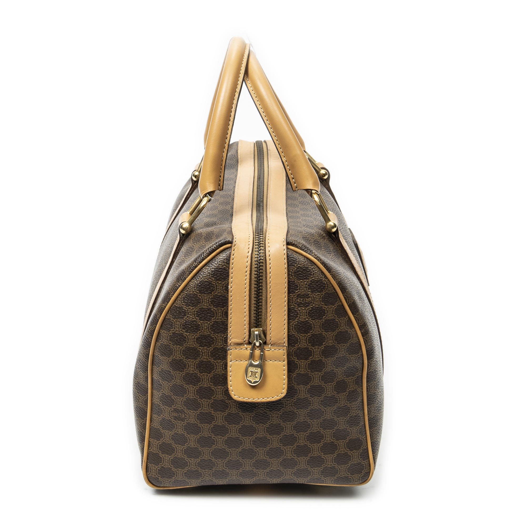 Celine sac à main Vintage Small Boston en beige et or. Le produit est en Excellent état (A).