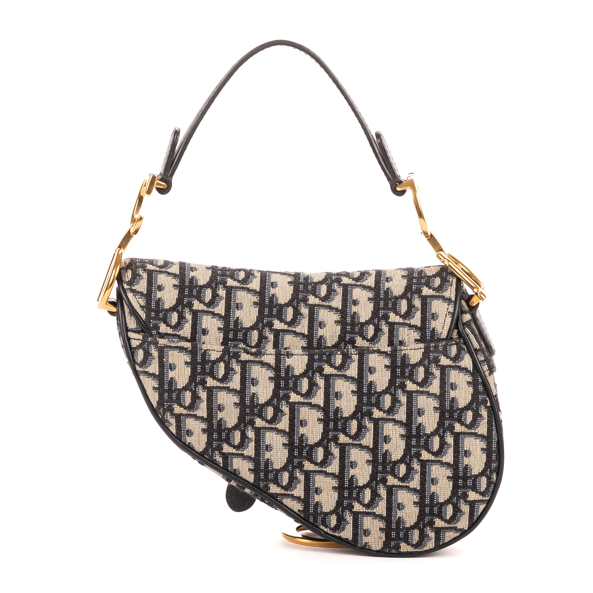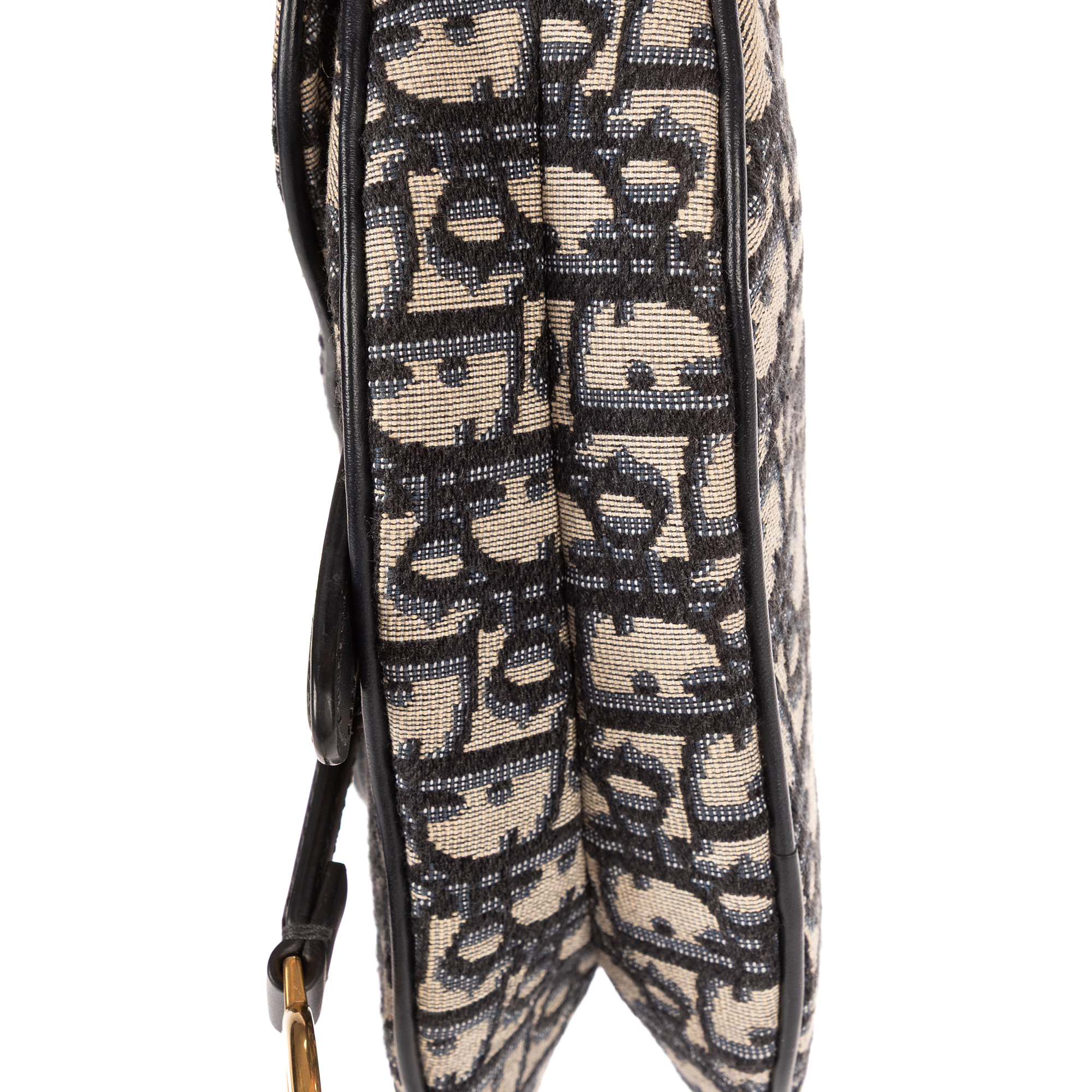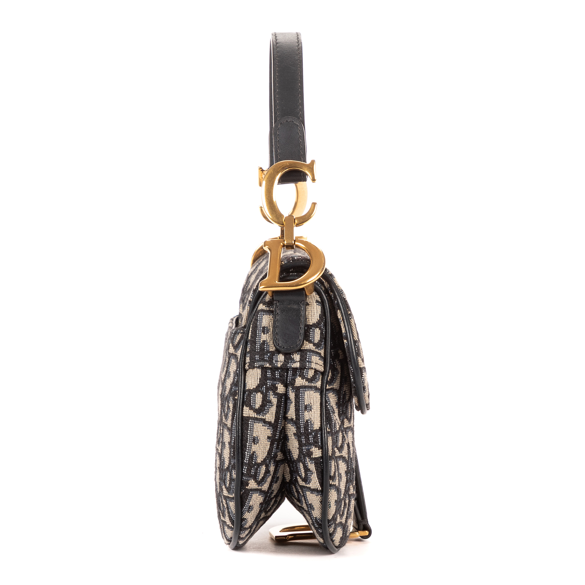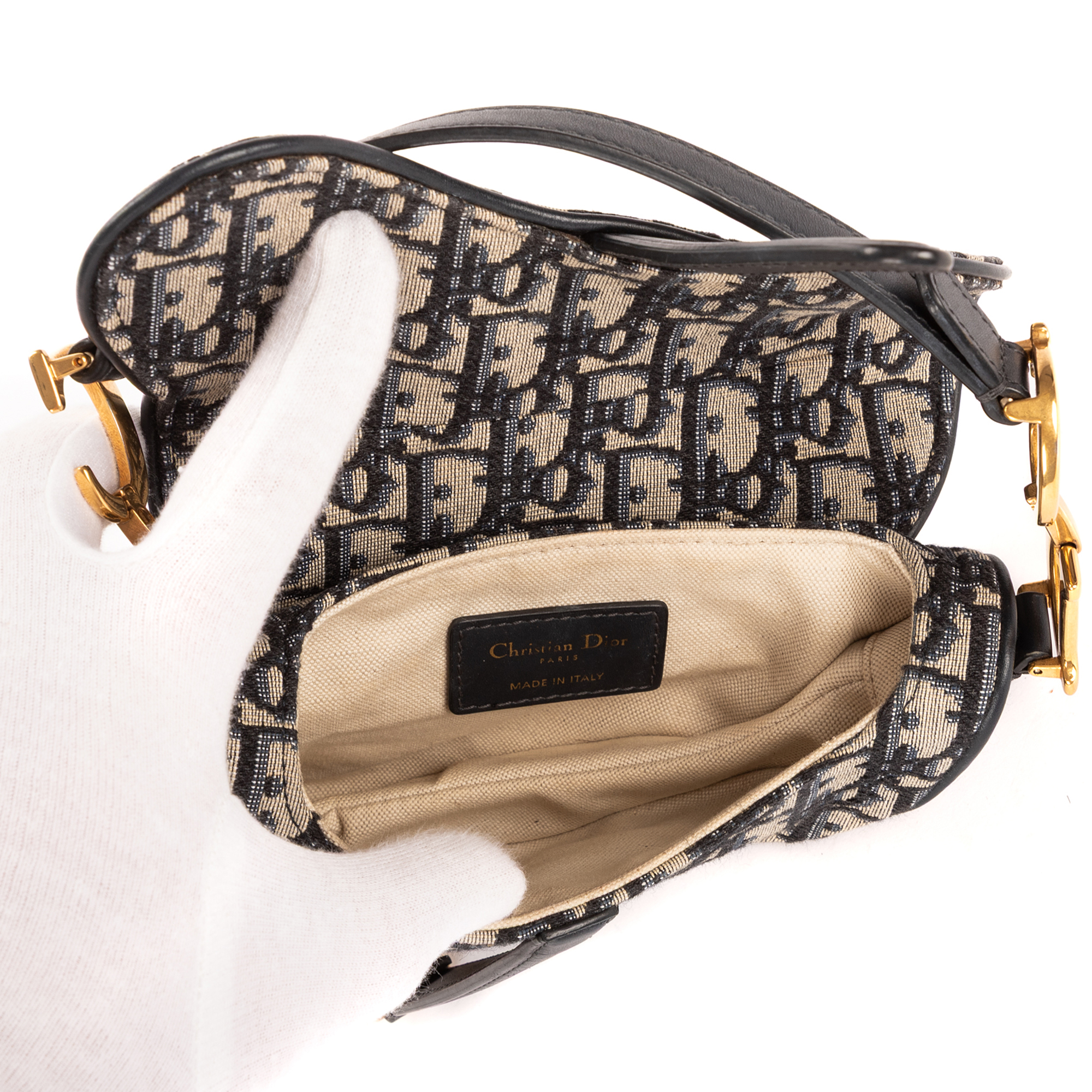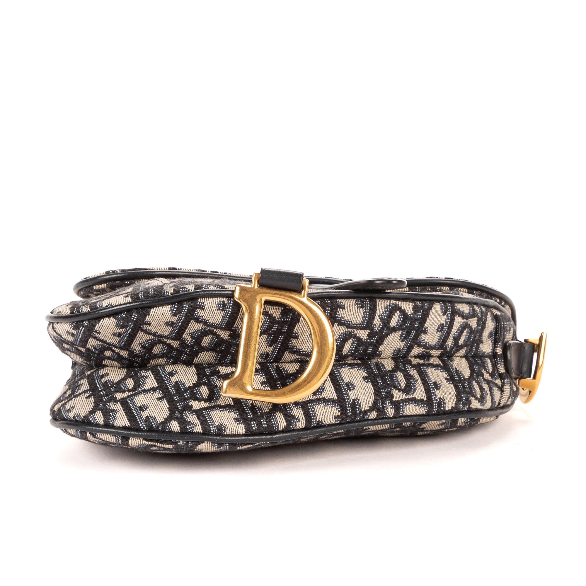 Christian Dior Sac à main Oblique Saddle Mini en Marine et Gold. Le produit est en Excellent état (A).