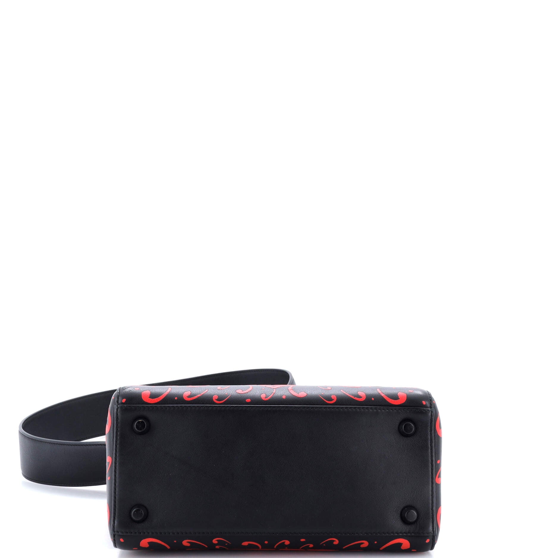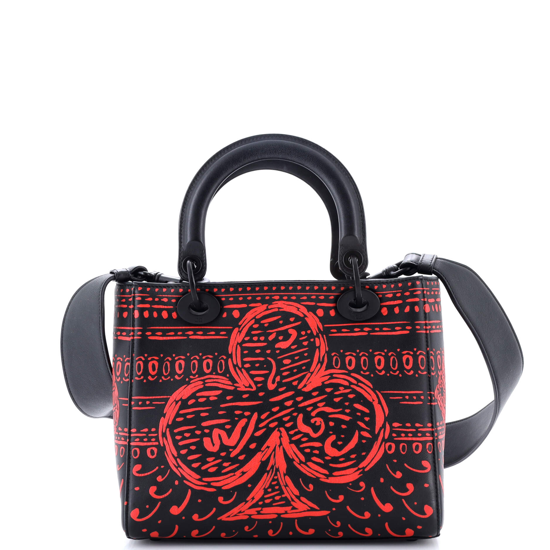 Dior Sac à main Ltd. Ed. Playing Cards Painted Lady Dior Medium en Noir/Rouge et Black Metal. Le produit est en Parfait état (AA).