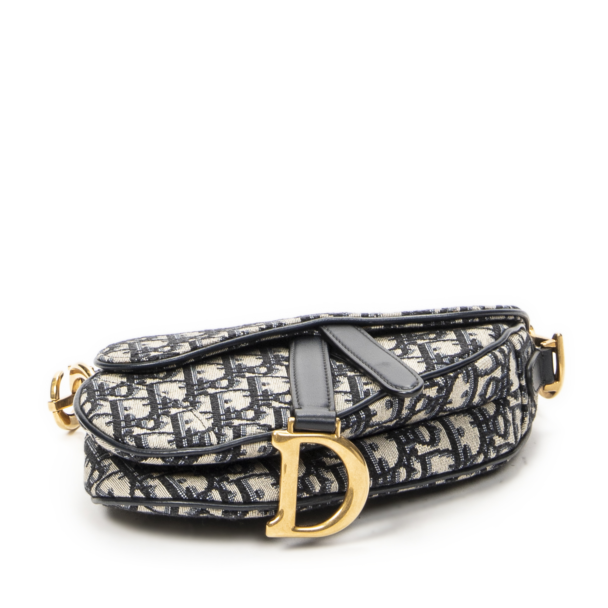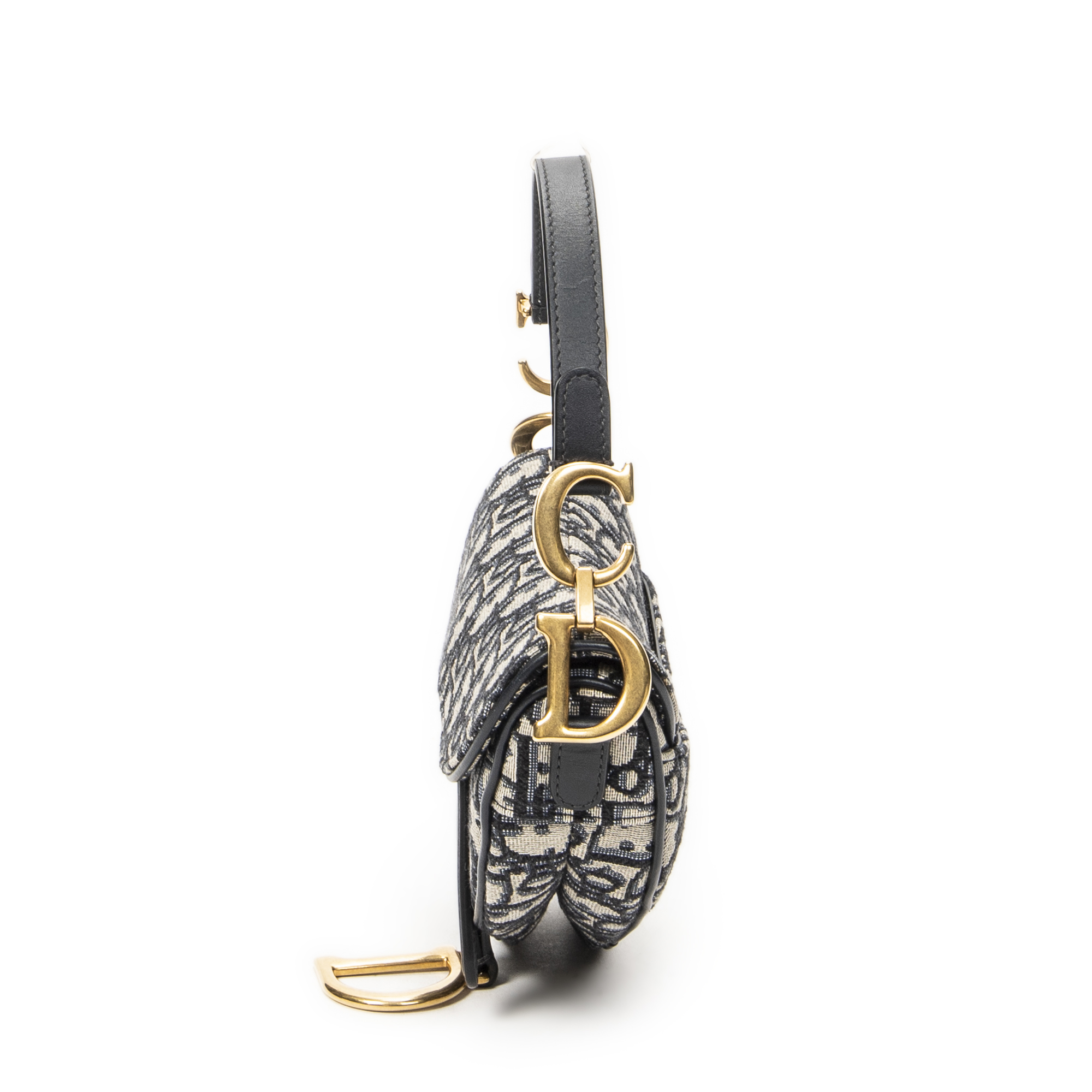 Dior sac à main Mini Saddle Bag en Marine et Or. Le produit est en Parfait état (AA).