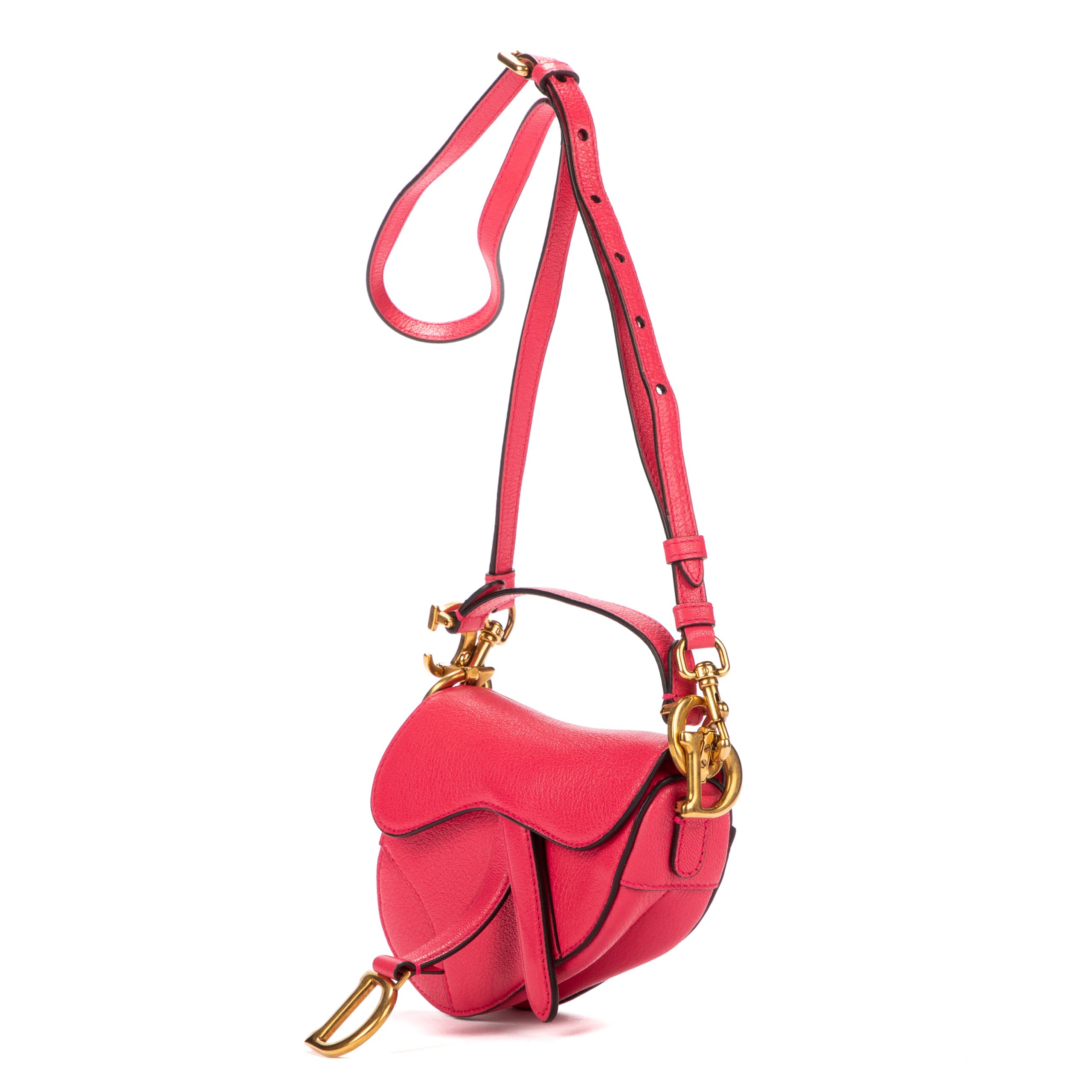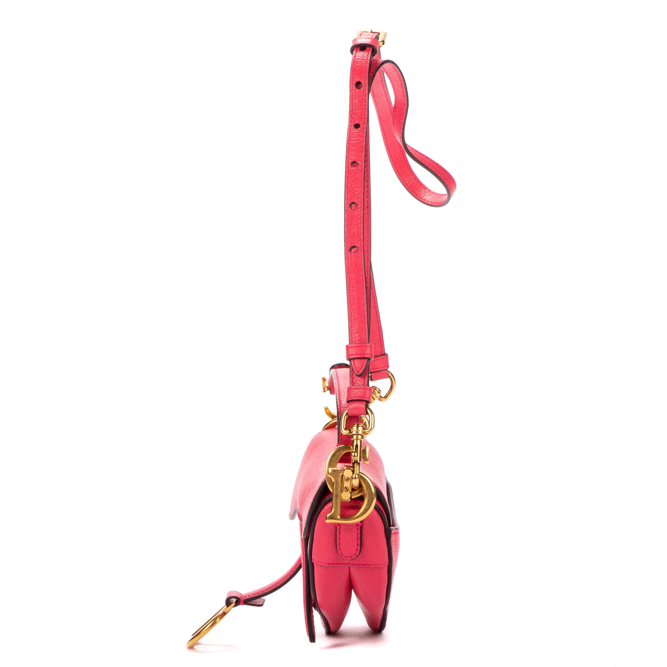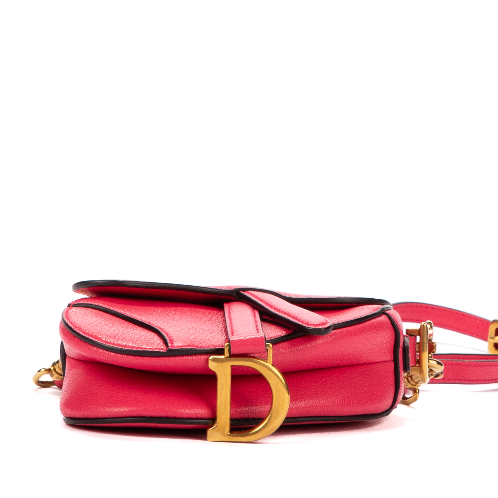 Dior Sac à main Saddle Mini en Du cuir de veau Rose et Gold. Le produit est en Excellent état (A).
