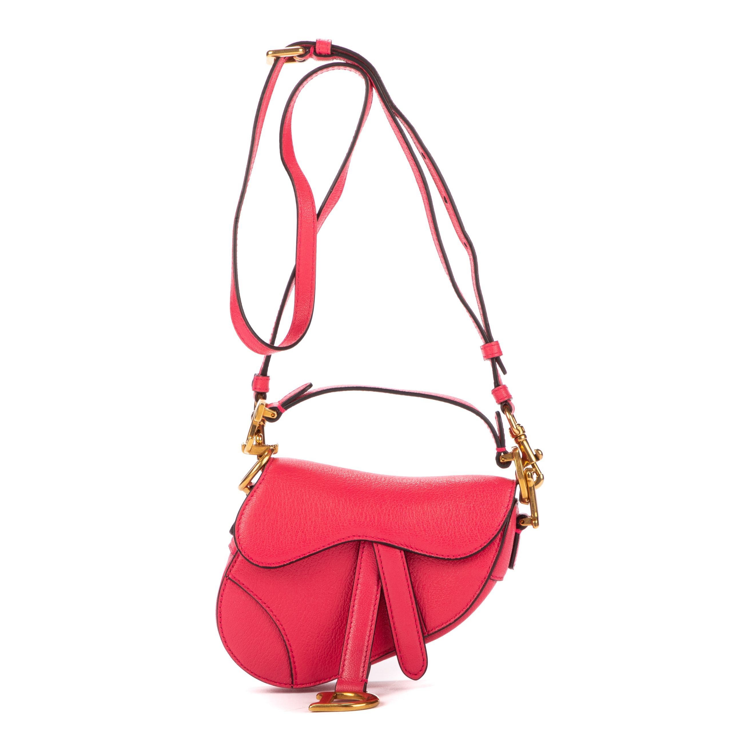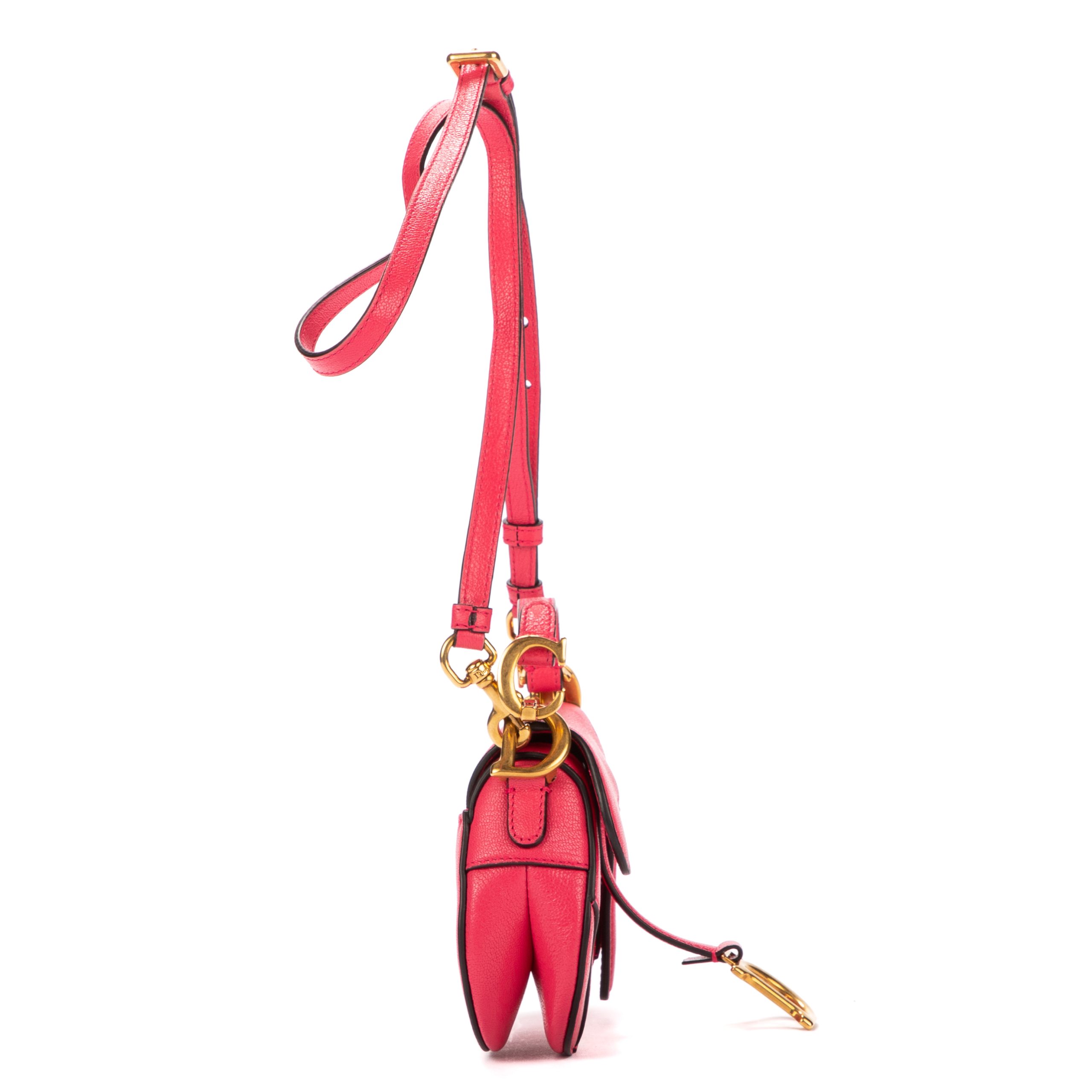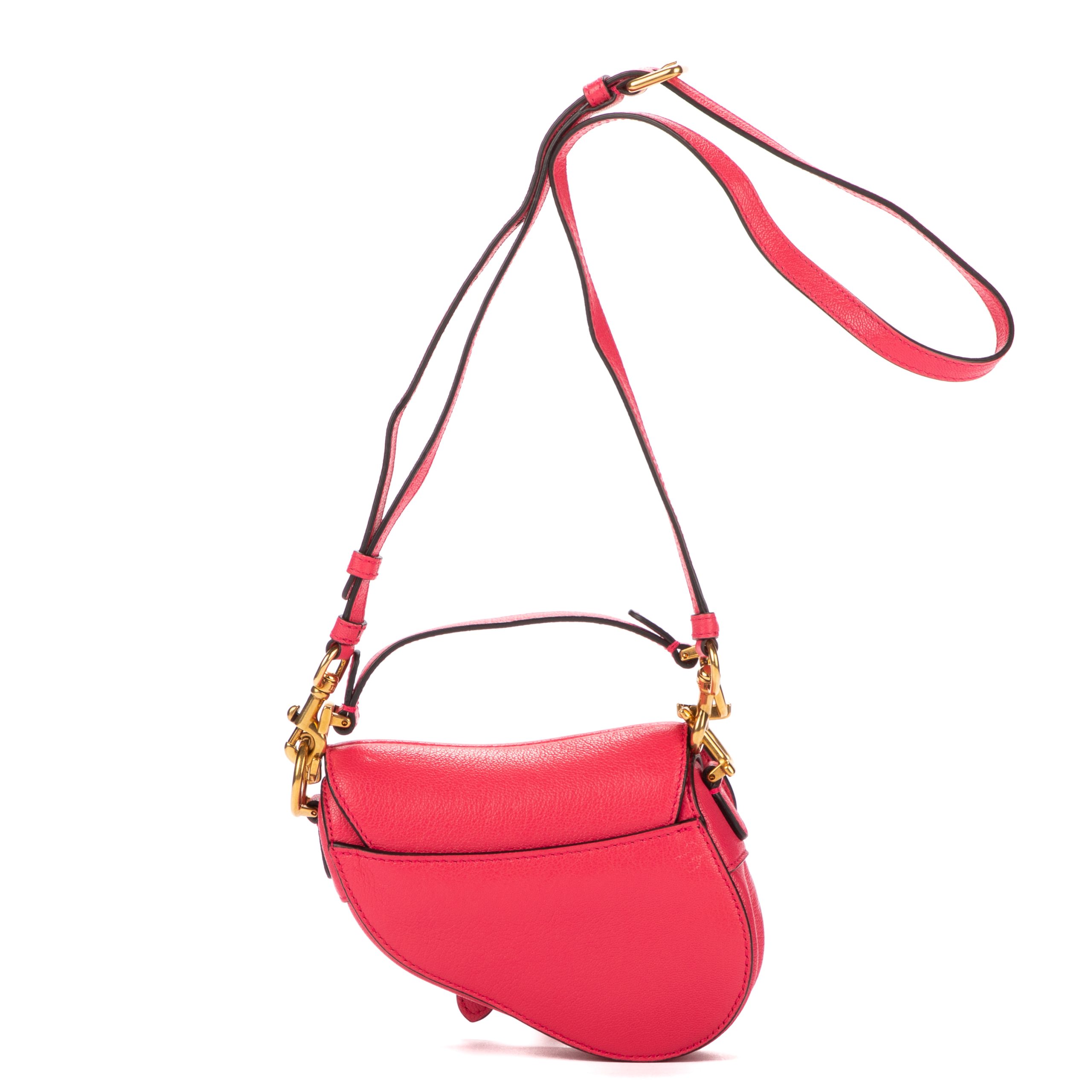 Dior Sac à main Saddle Mini en Du cuir de veau Rose et Gold. Le produit est en Excellent état (A).