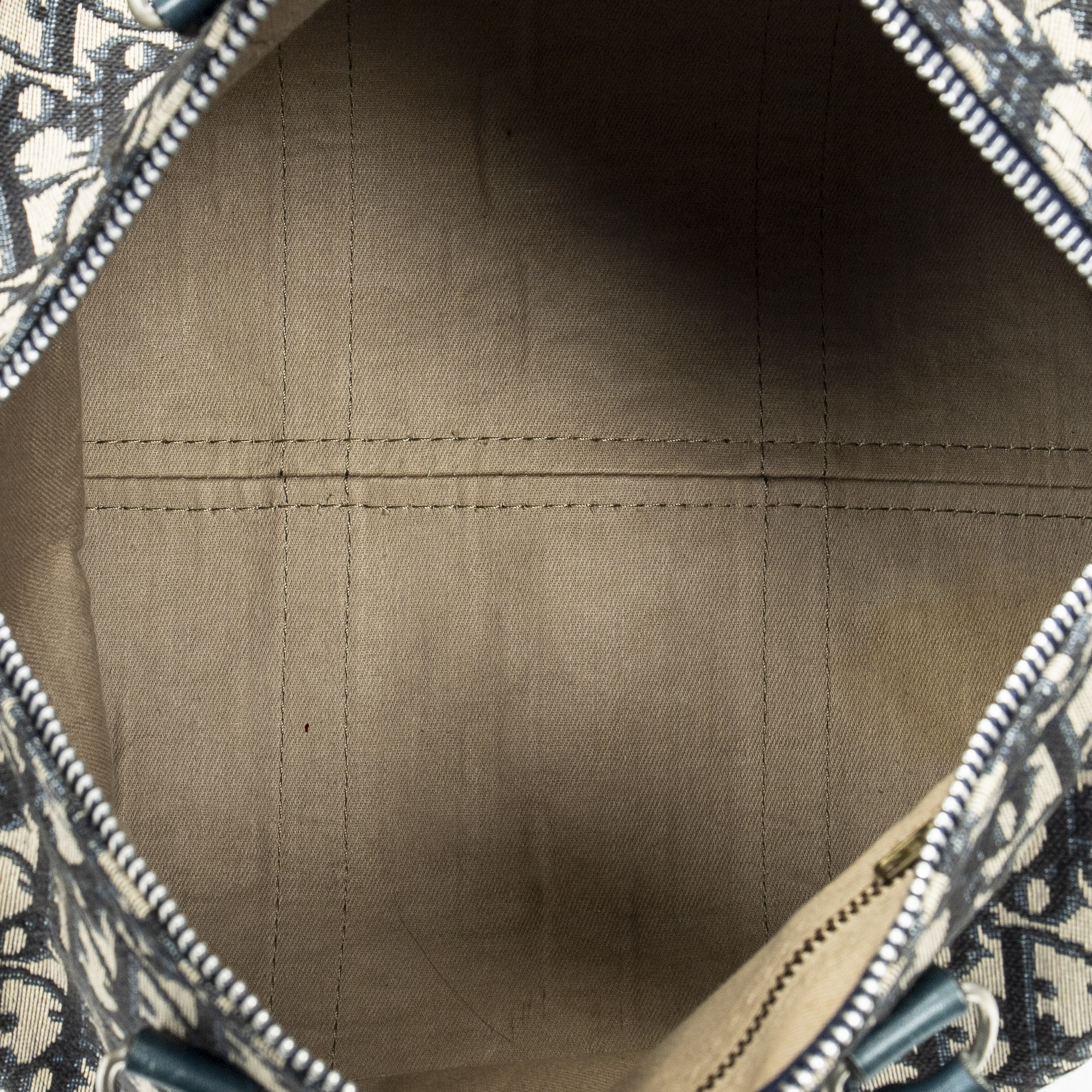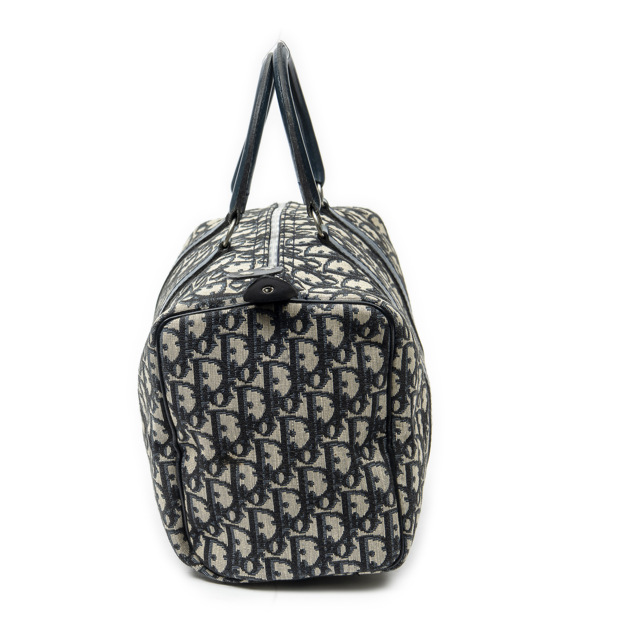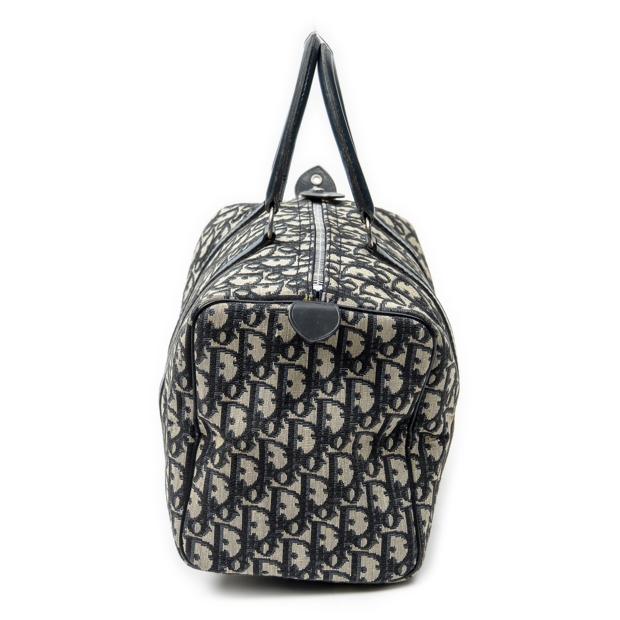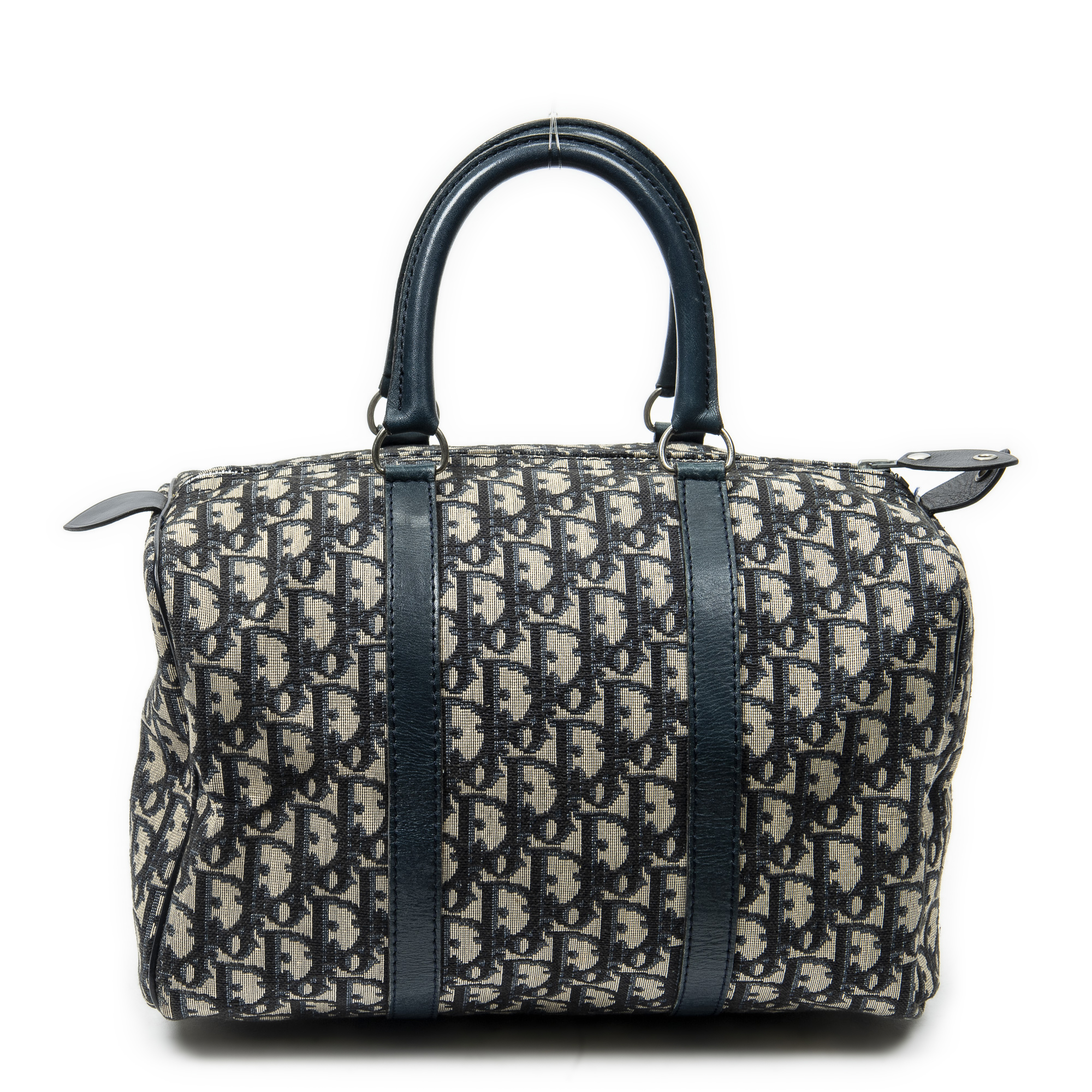 Dior Sac à main Small Boston en Bleu marine/Beige et Argent. Le produit est en Très Bon état (AB).