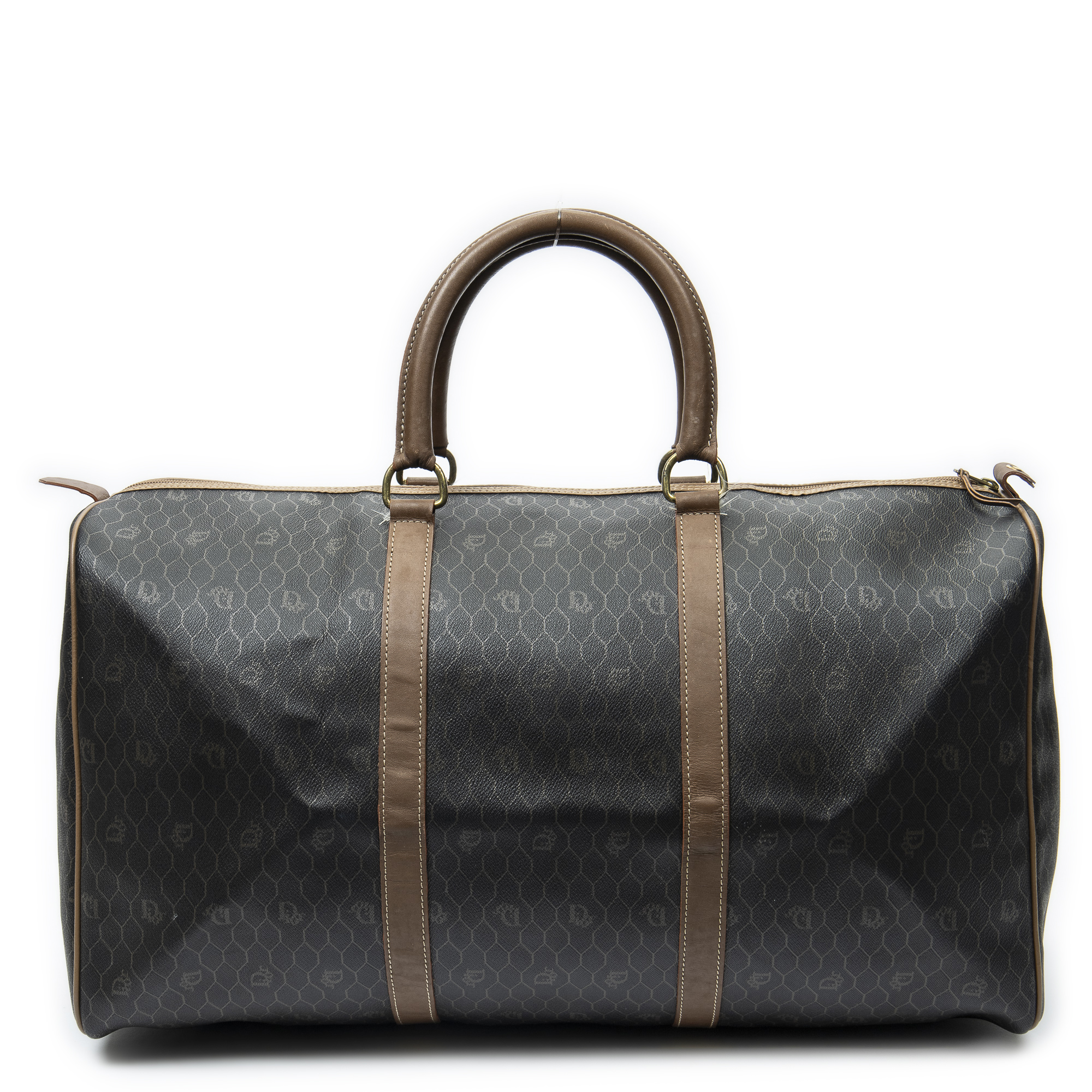 Dior Sac de voyage Vintage Large Travel Boston en Gris foncé/Marron et Gold. Le produit est en Très Bon état (AB).