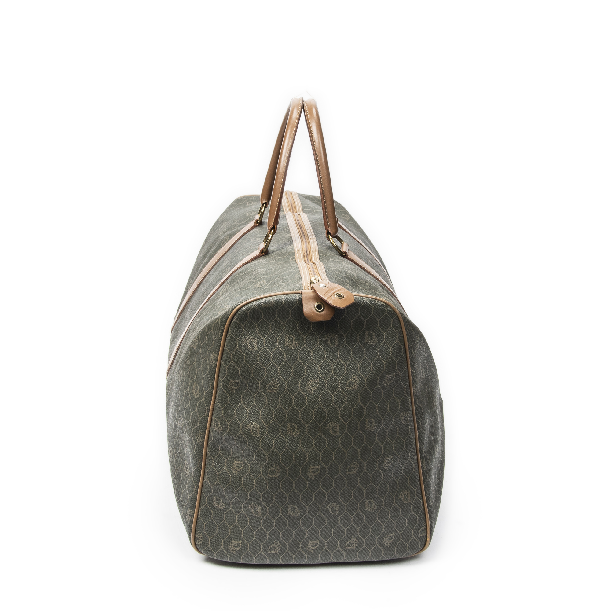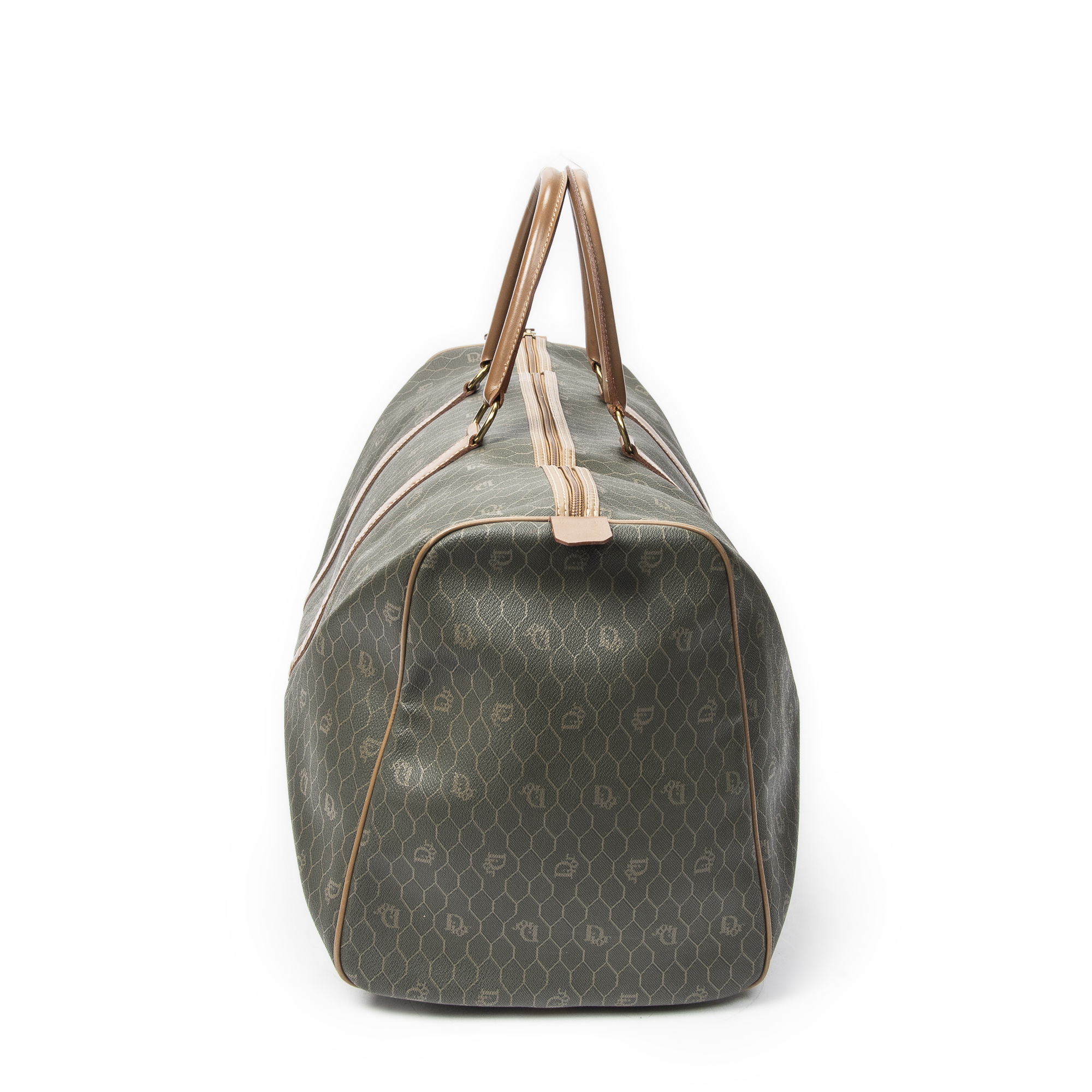 Dior Sac de voyage Vintage Large Travel Boston en Vert/Marron et Gold. Le produit est en Excellent état (A).