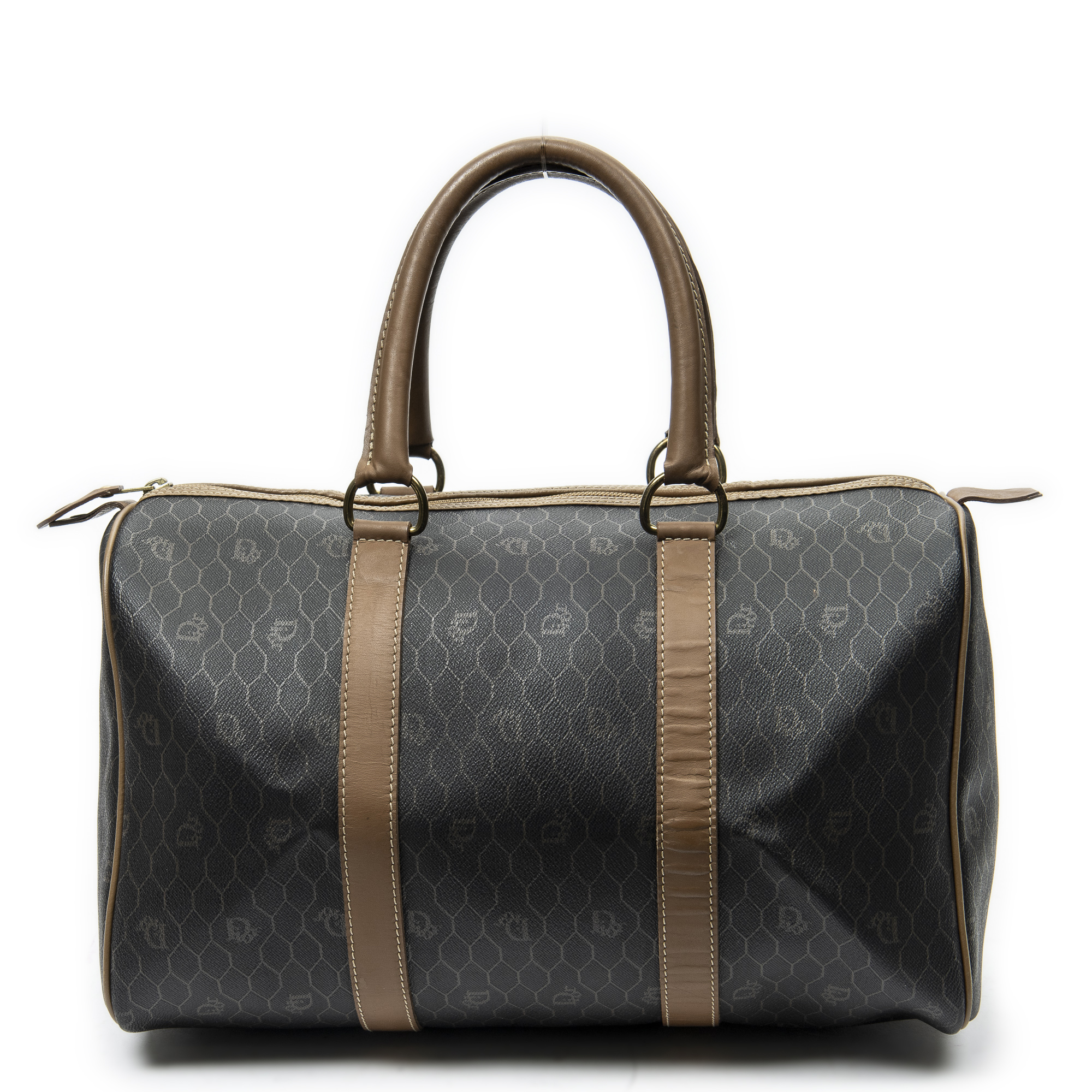 Dior Sac à main Vintage Medium Boston en Gris foncé/Beige et Gold. Le produit est en Excellent état (A).