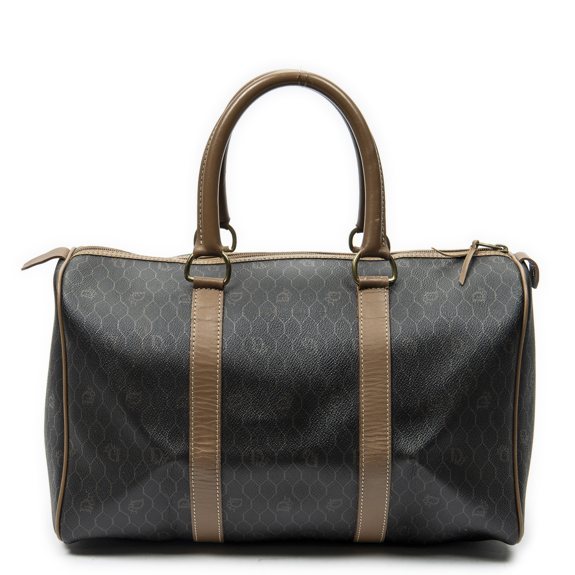 Dior Sac de voyage Vintage Medium Travel Boston en Marron/Gris et Gold. Le produit est en Excellent état (A).