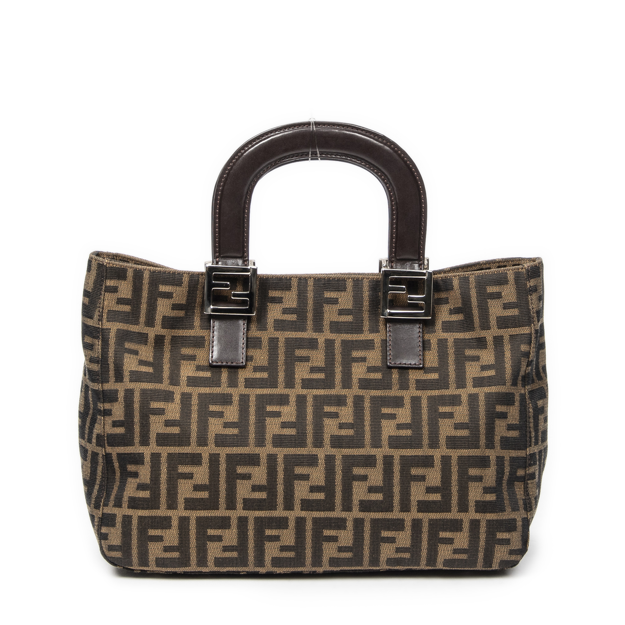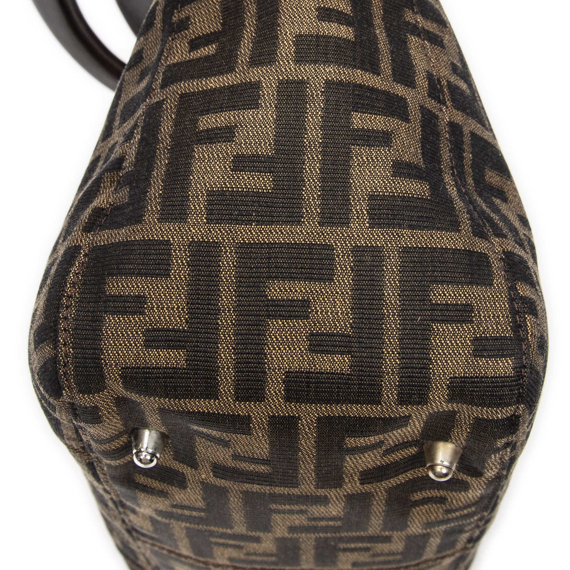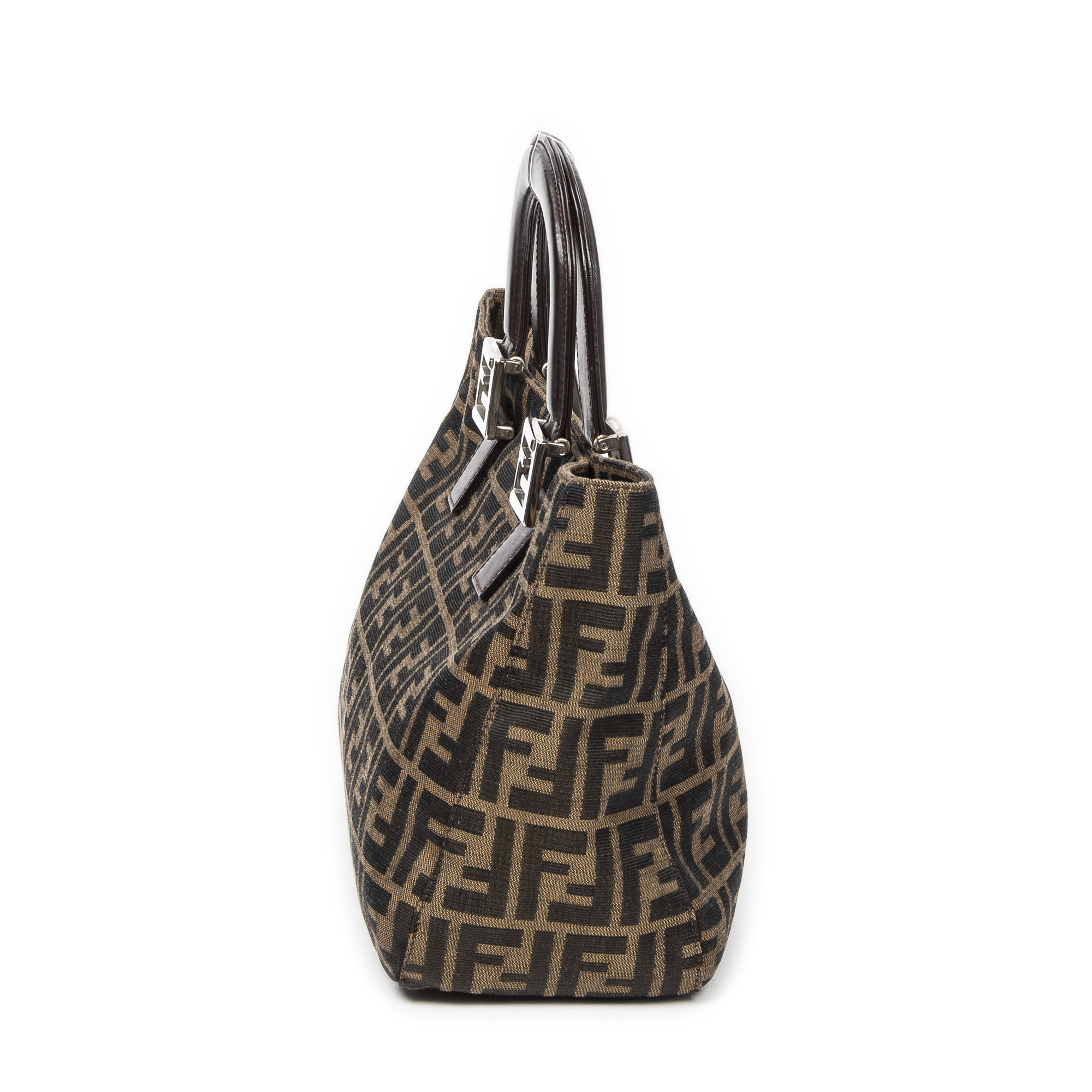 Fendi Sac à main Small FF Open Tote en Brown et Argent. Le produit est en Excellent état (A).