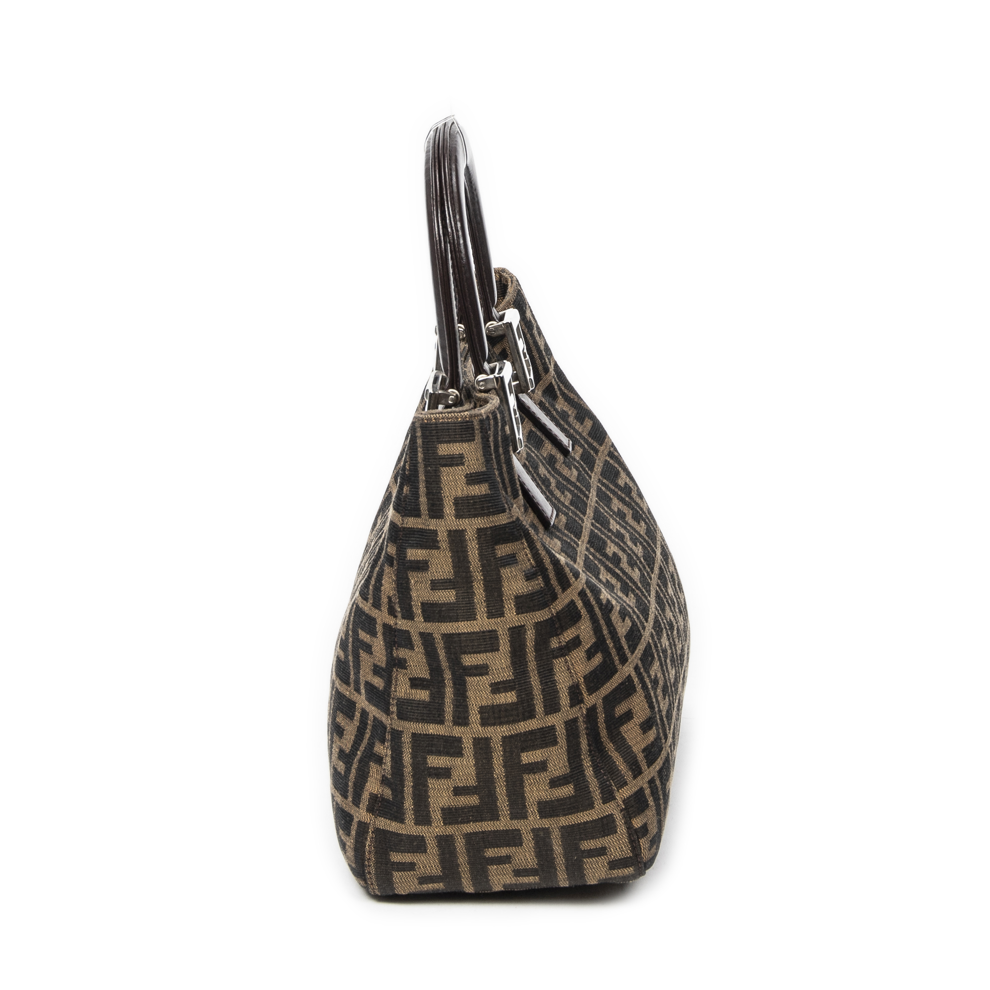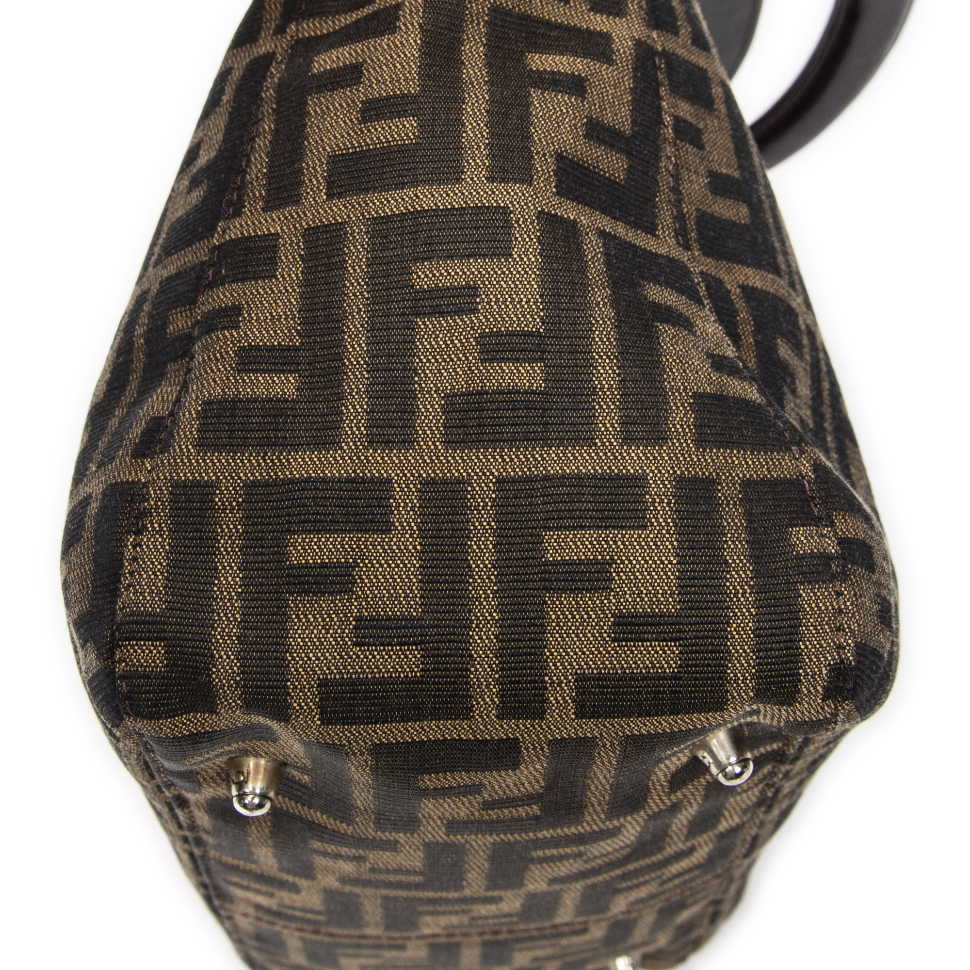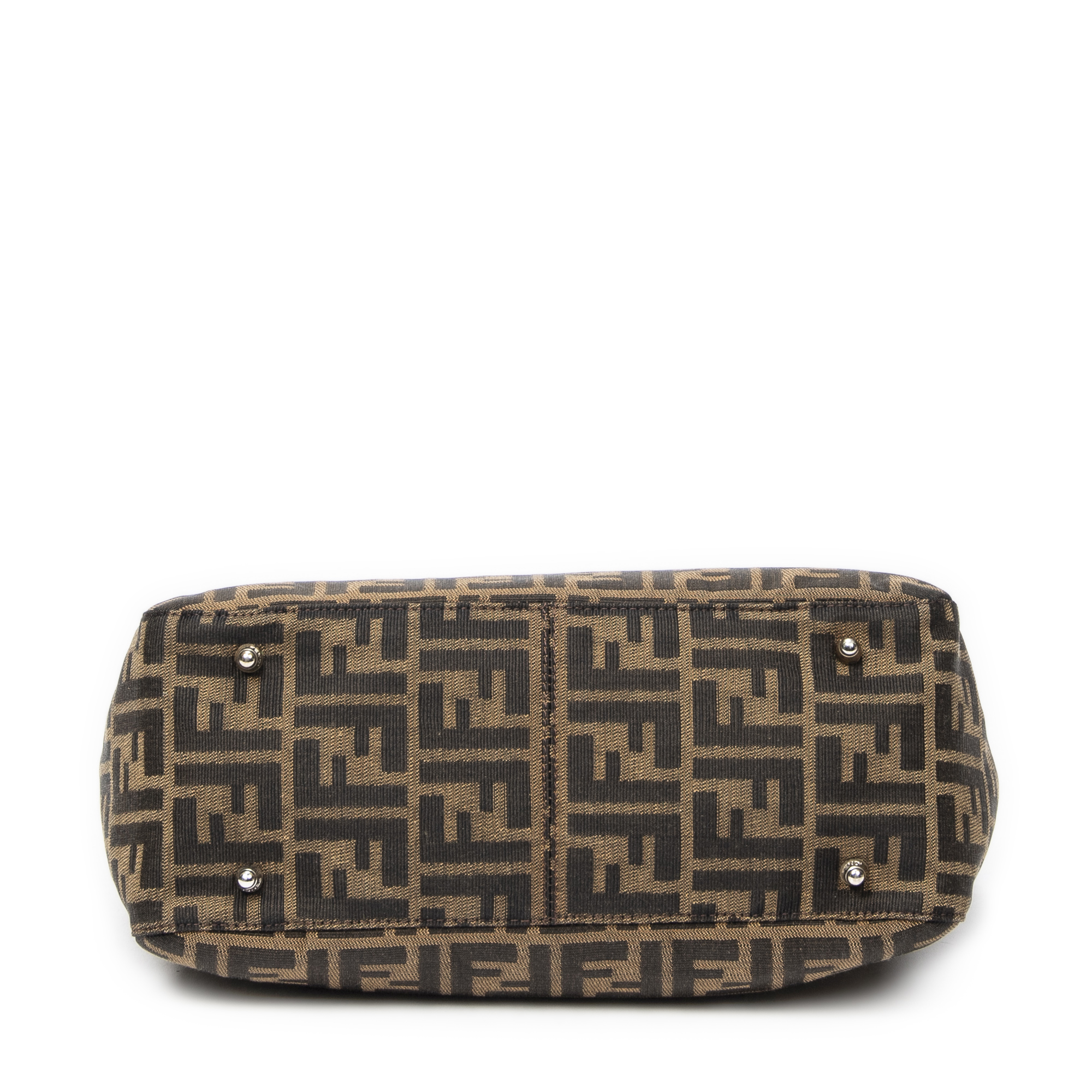 Fendi Sac à main Small FF Open Tote en Brown et Argent. Le produit est en Excellent état (A).