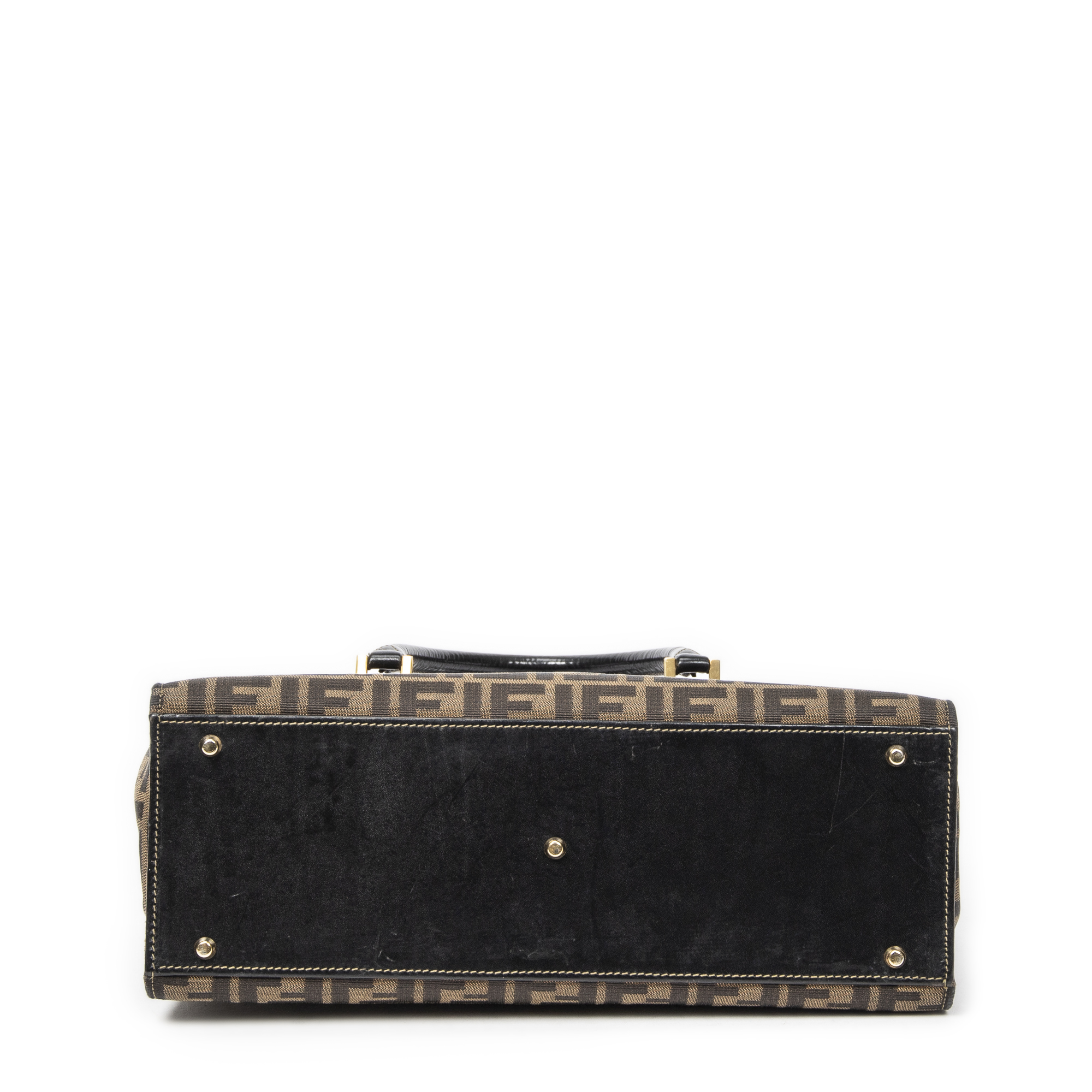 Fendi Sac à main Vintage Square Tote en Beige/Brun foncé et Gold. Le produit est en Excellent état (A).