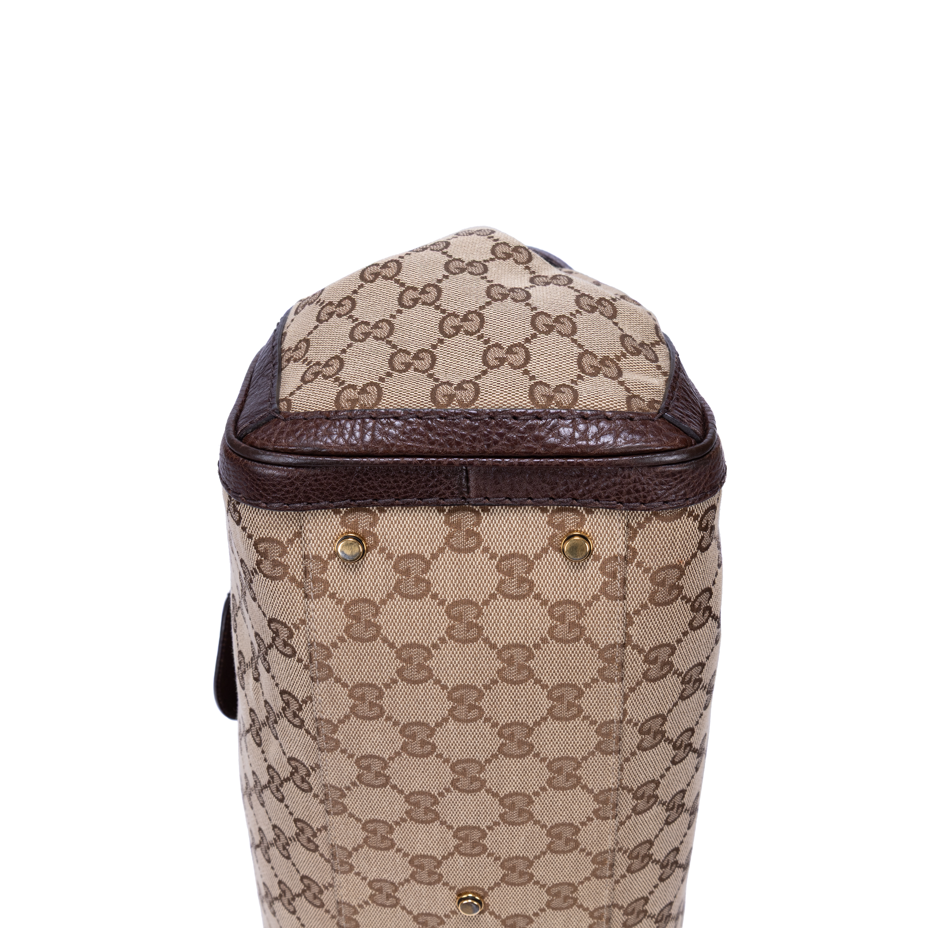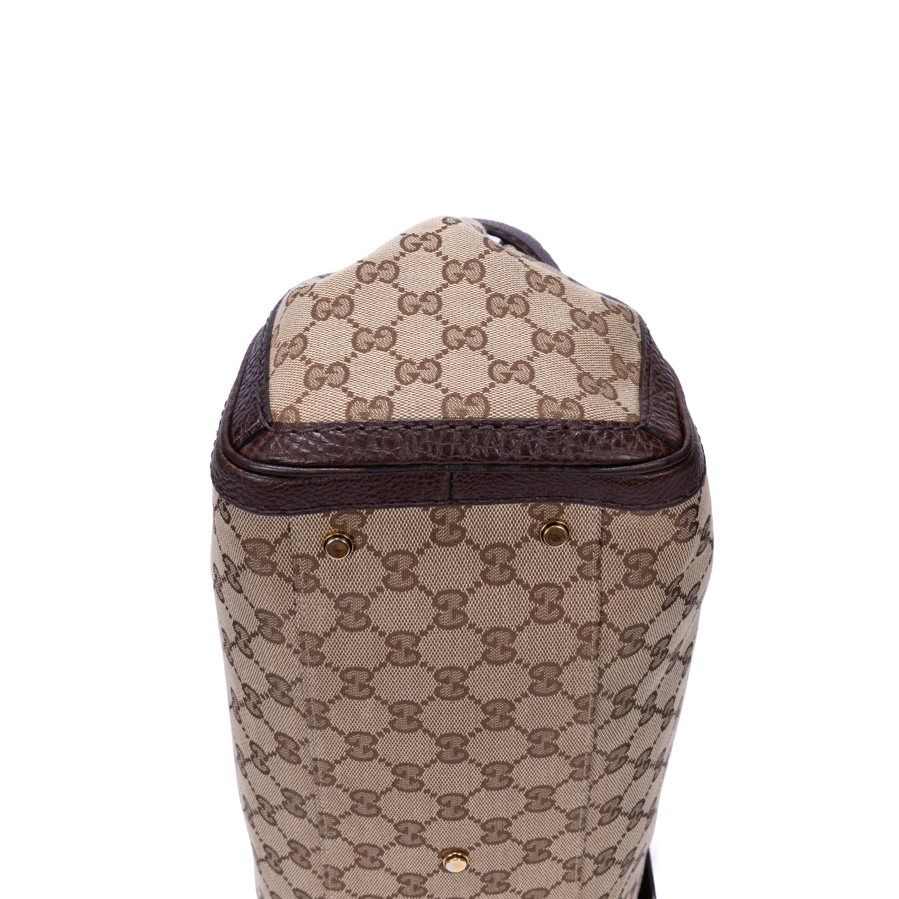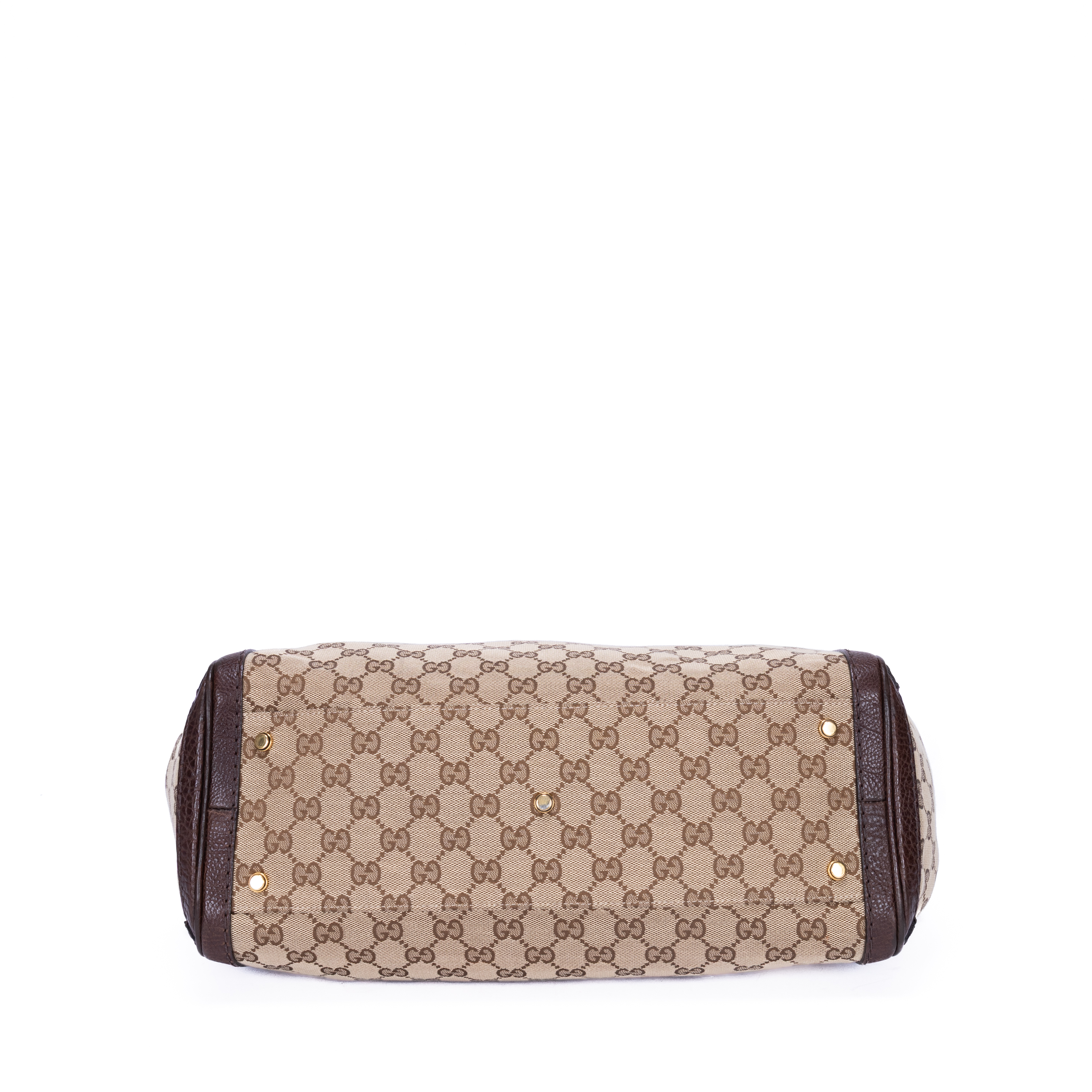 Gucci Sac à main Running Tote en Beige/Marron et Gold. Le produit est en Excellent état (A).