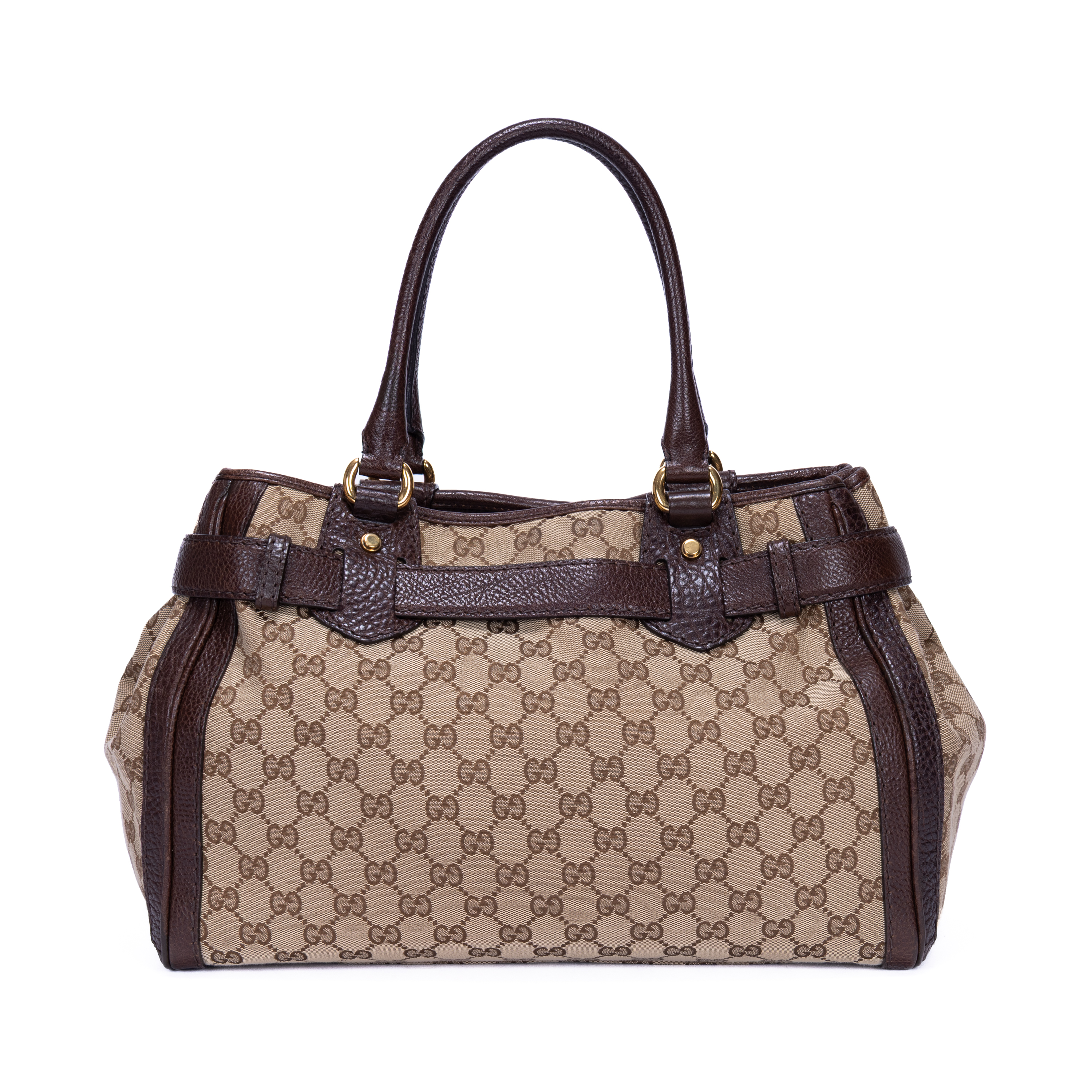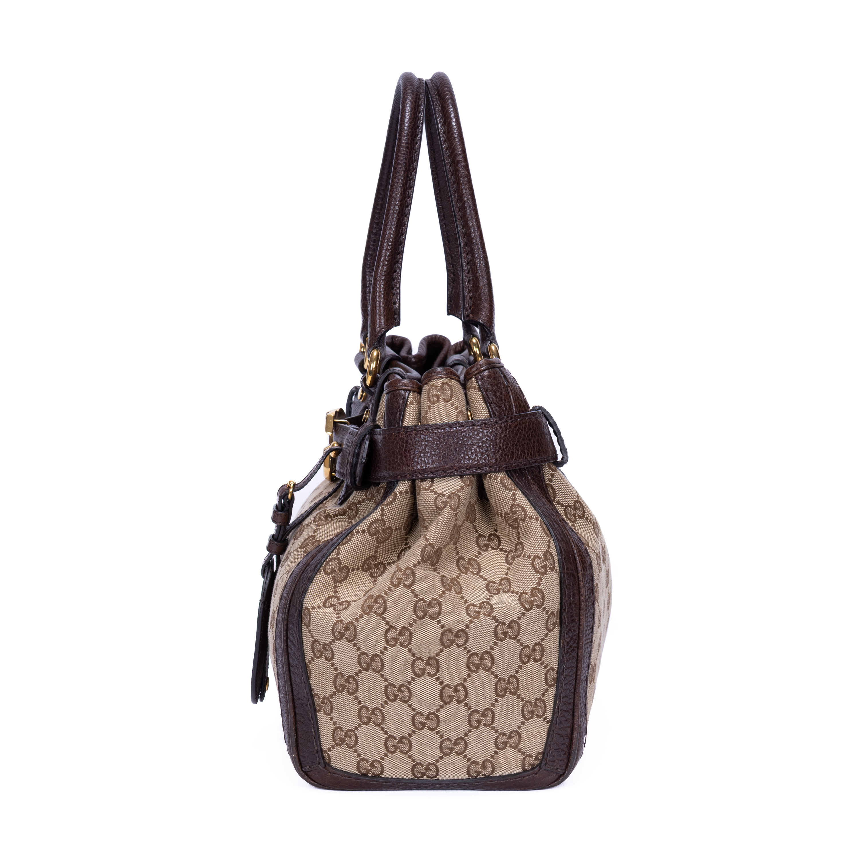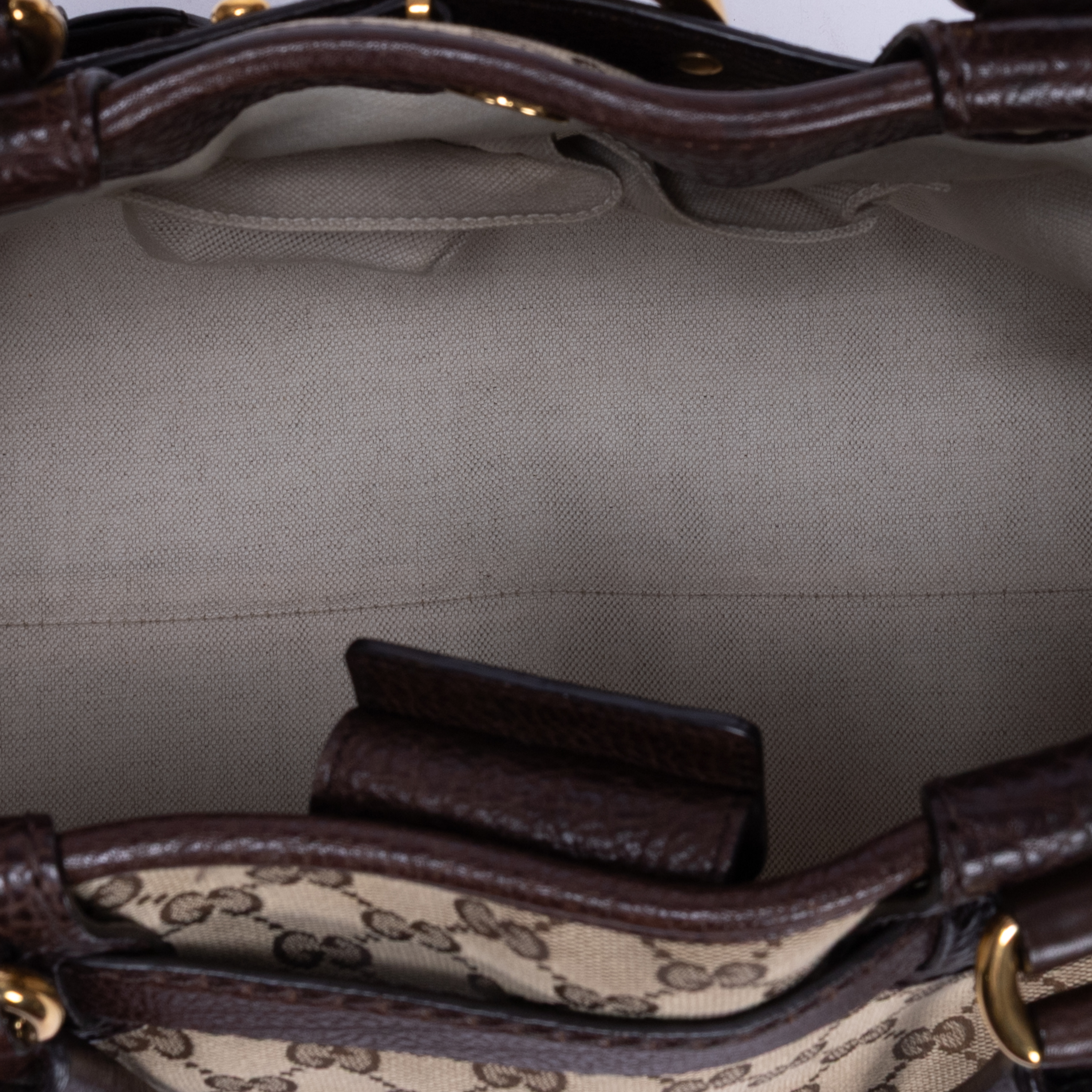 Gucci Sac à main Running Tote en Beige/Marron et Gold. Le produit est en Excellent état (A).