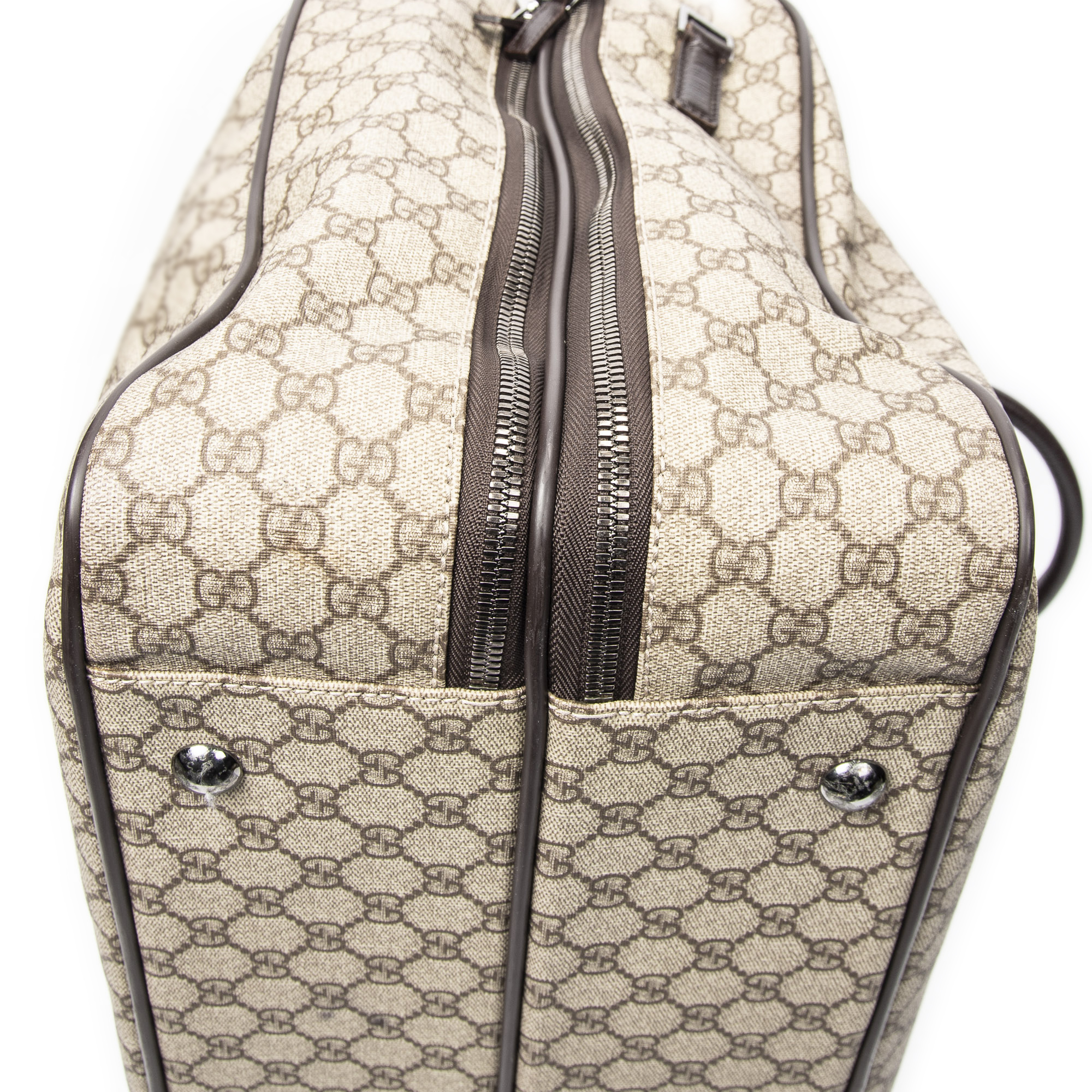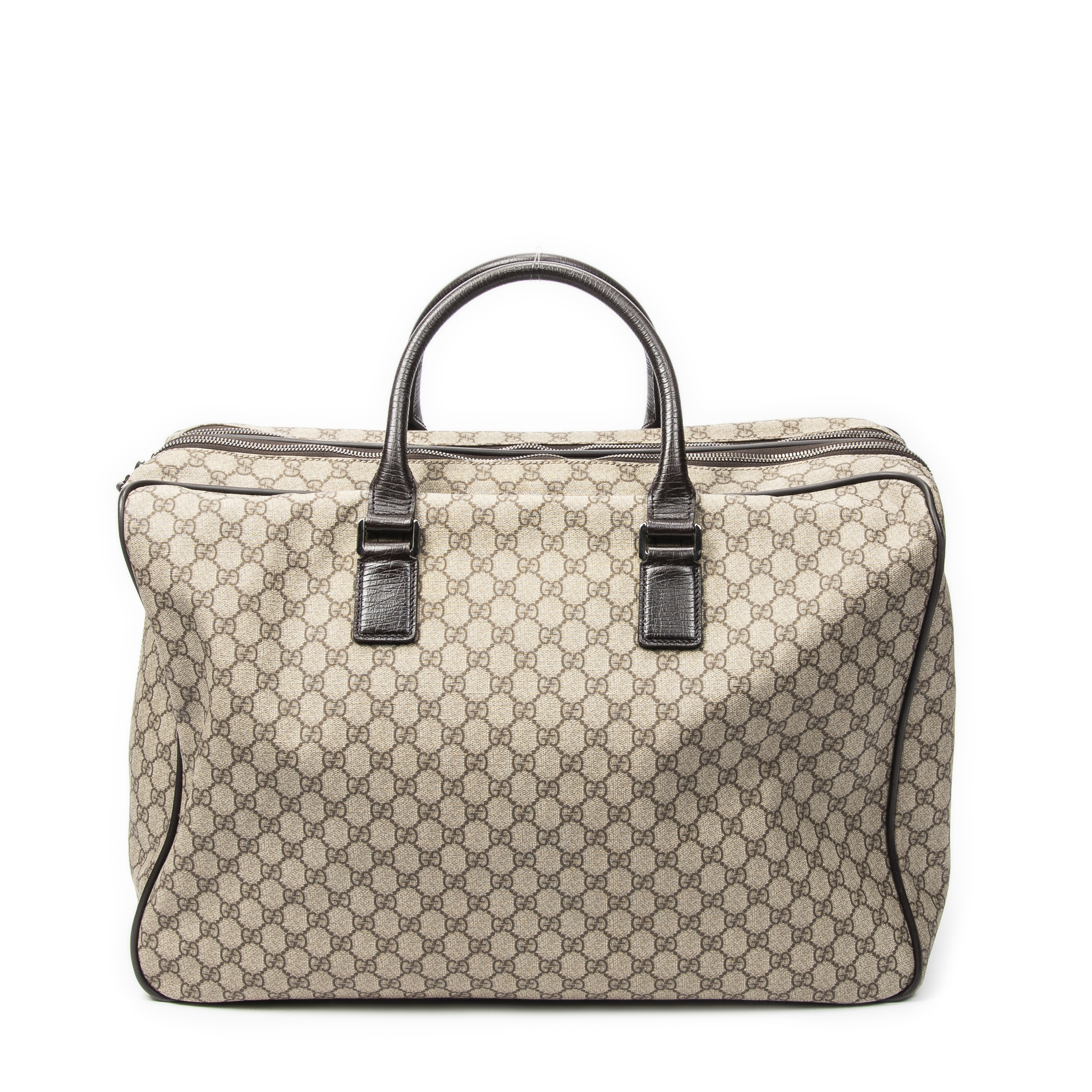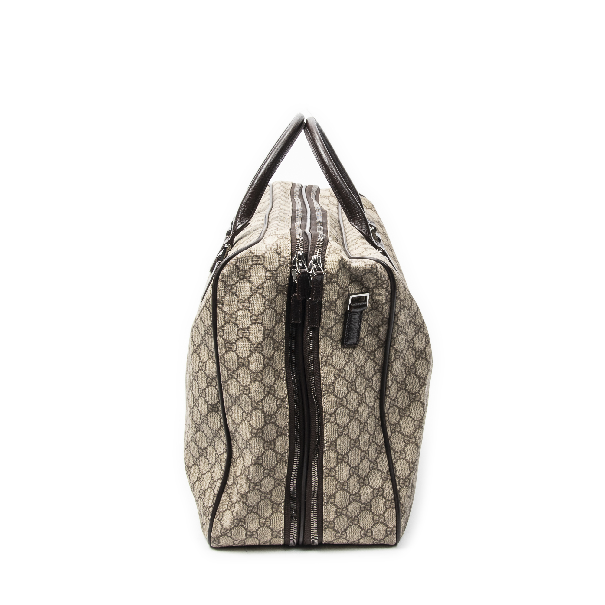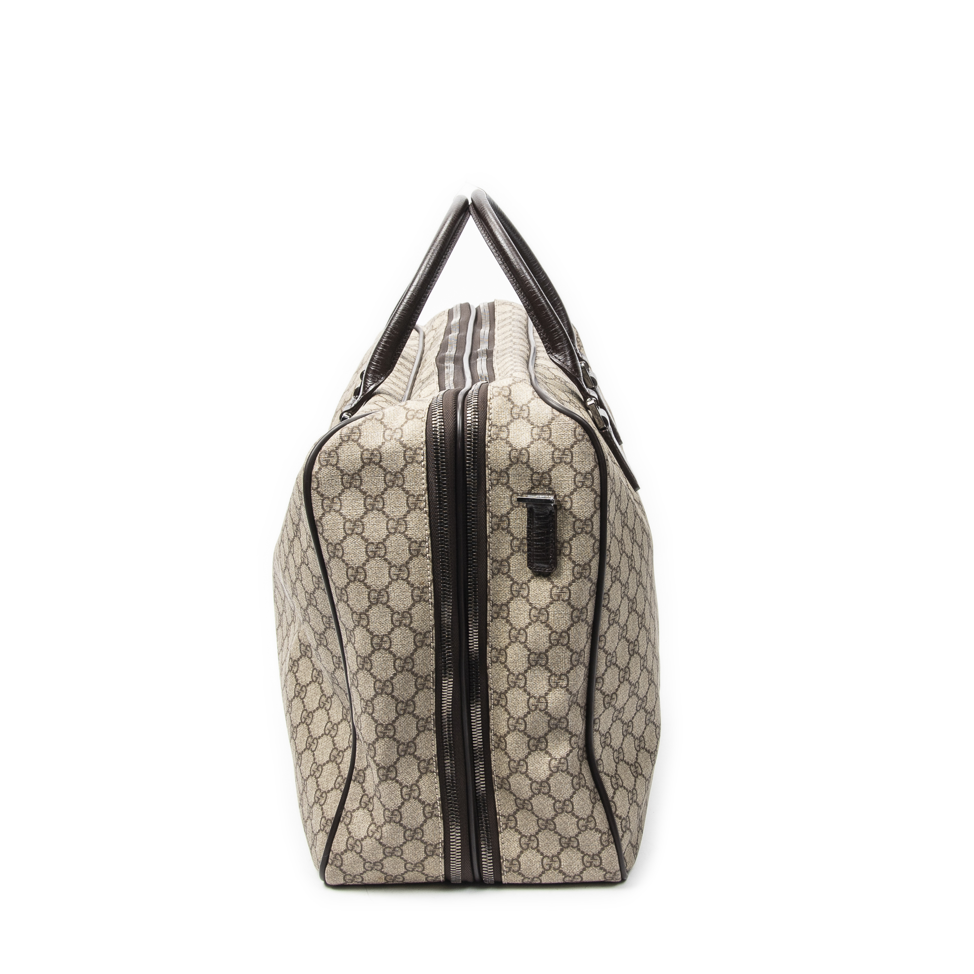Gucci Sac de voyage Weekender Bag en Marron foncé/Beige et Argent. Le produit est en Parfait état (AA).
