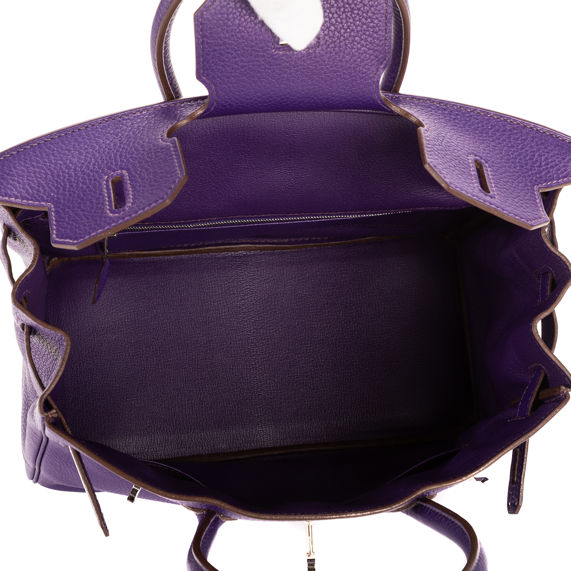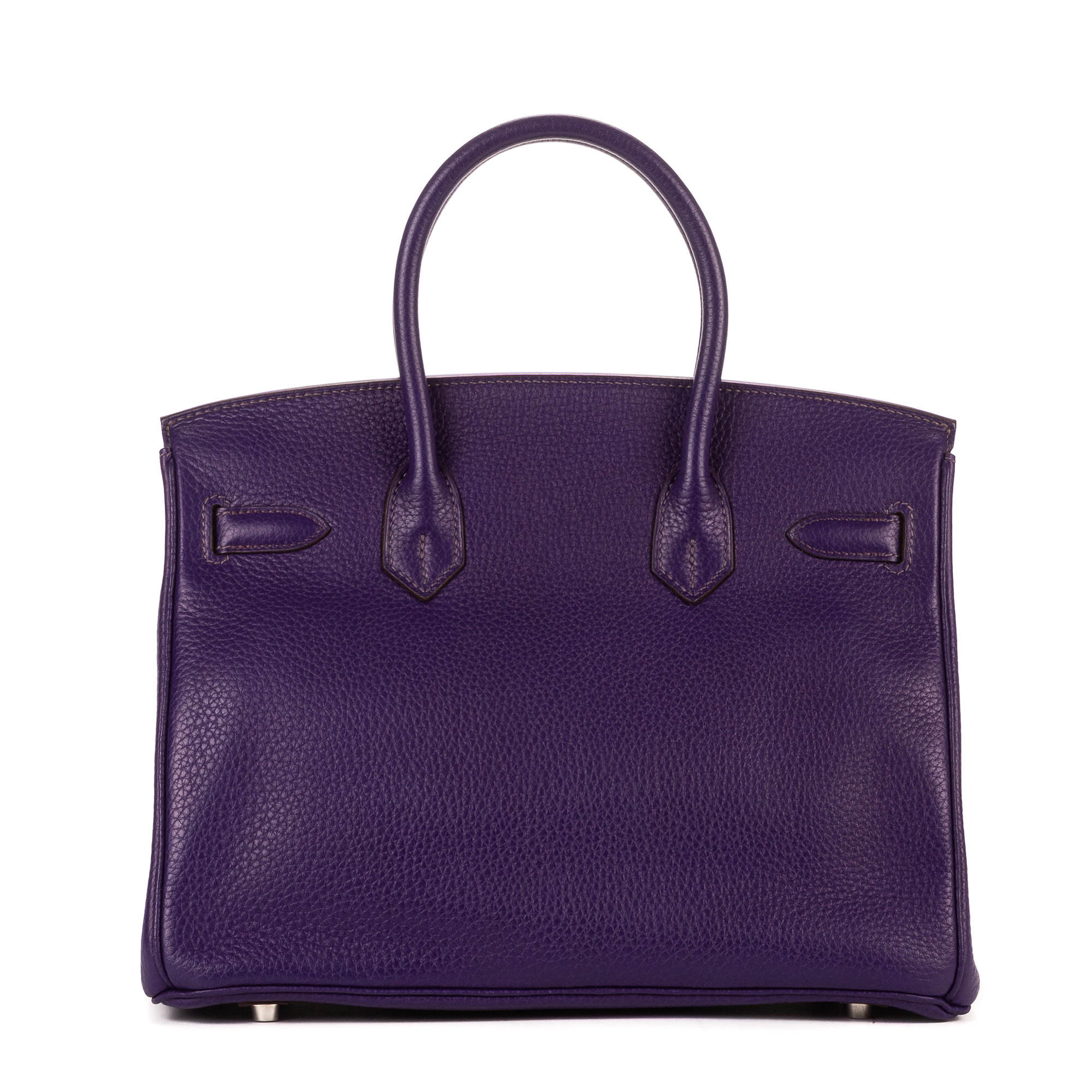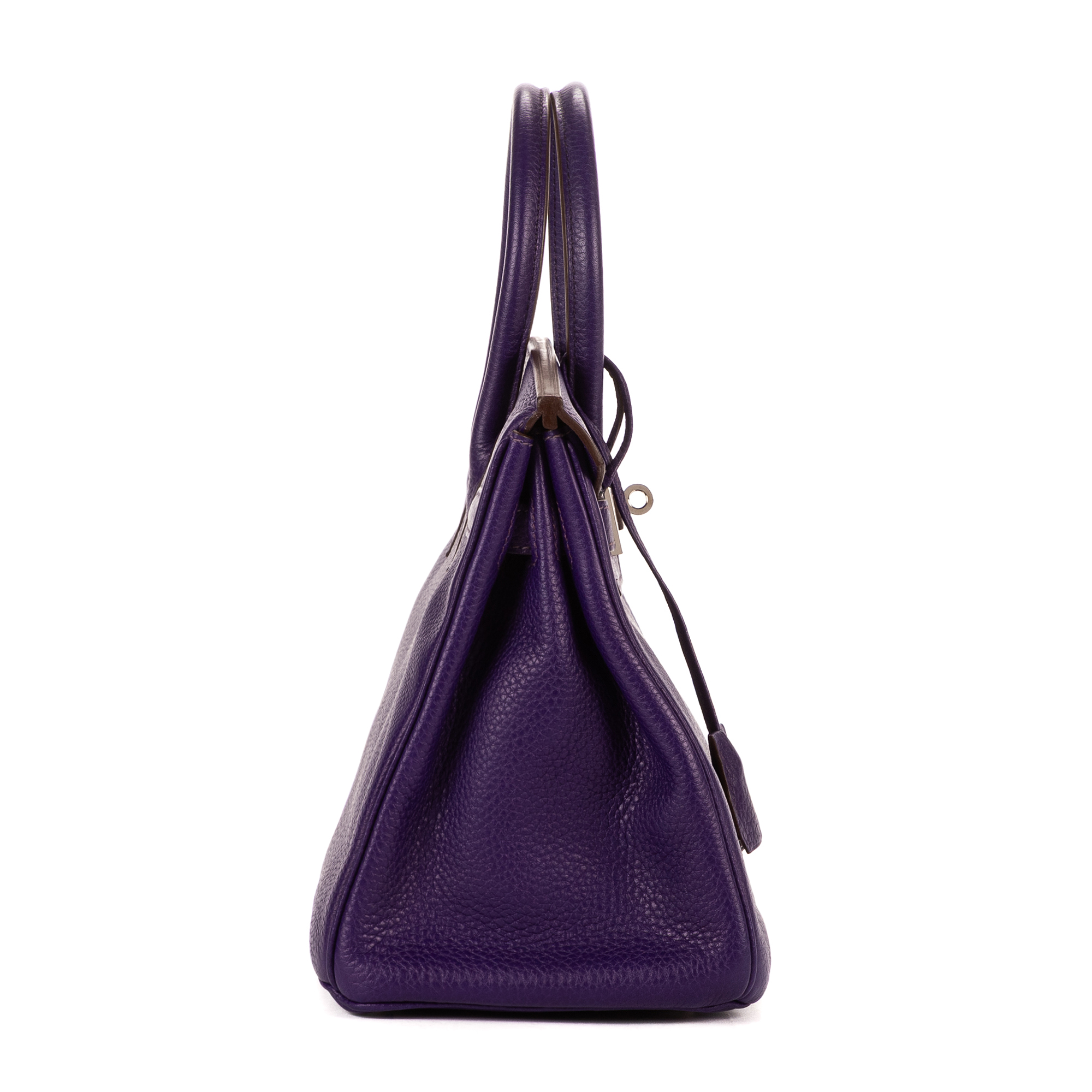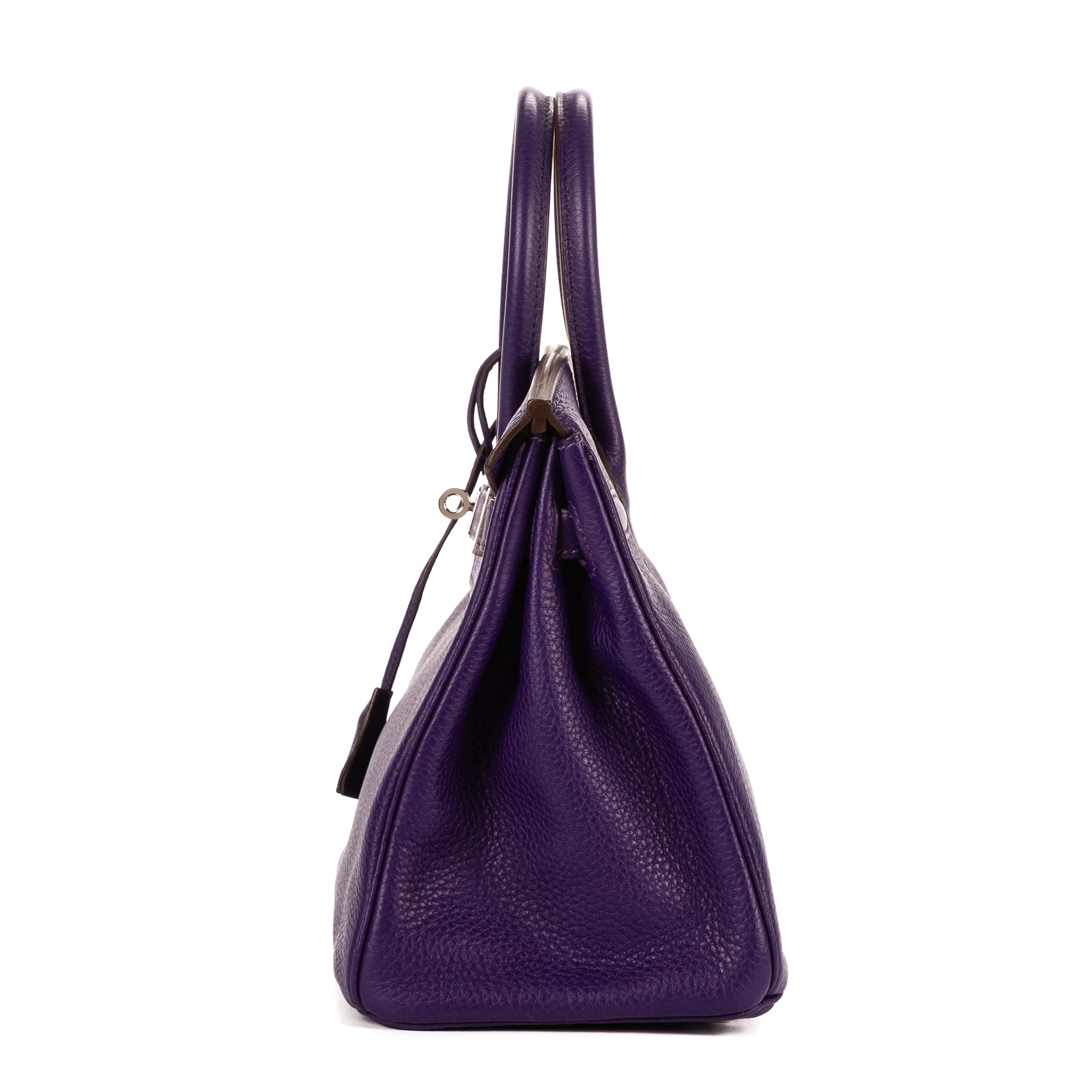Hermès Sac à main Birkin 30 en Violet et Argent. Le produit est en Parfait état (AA).