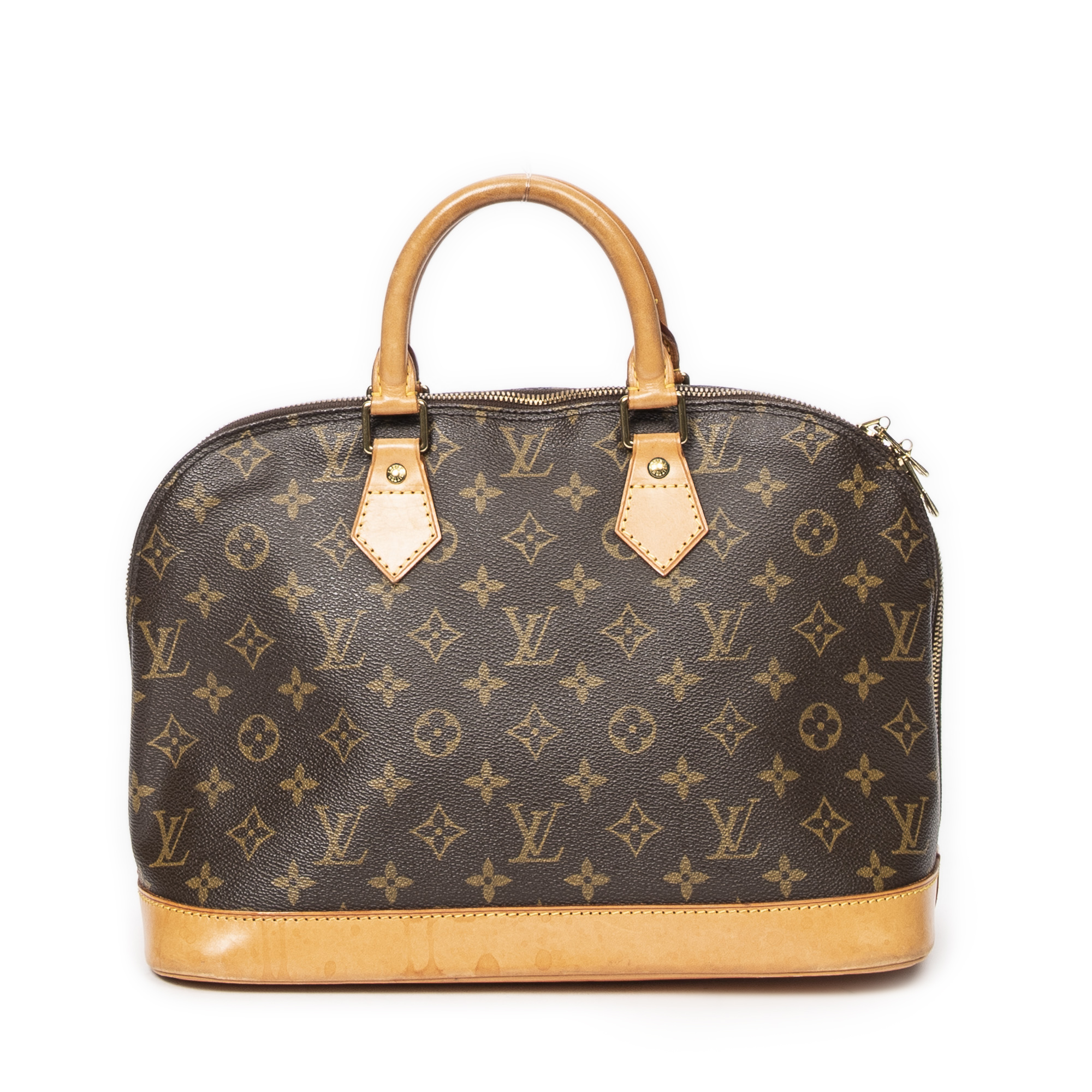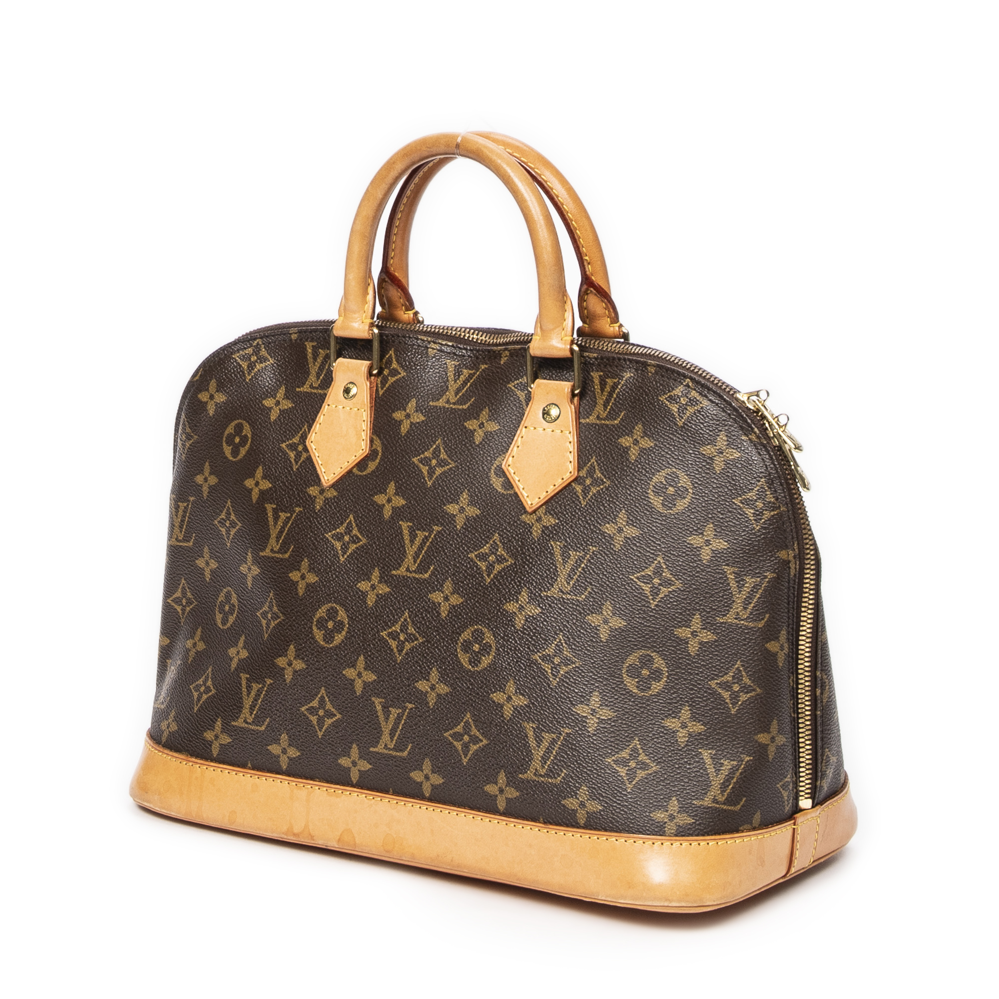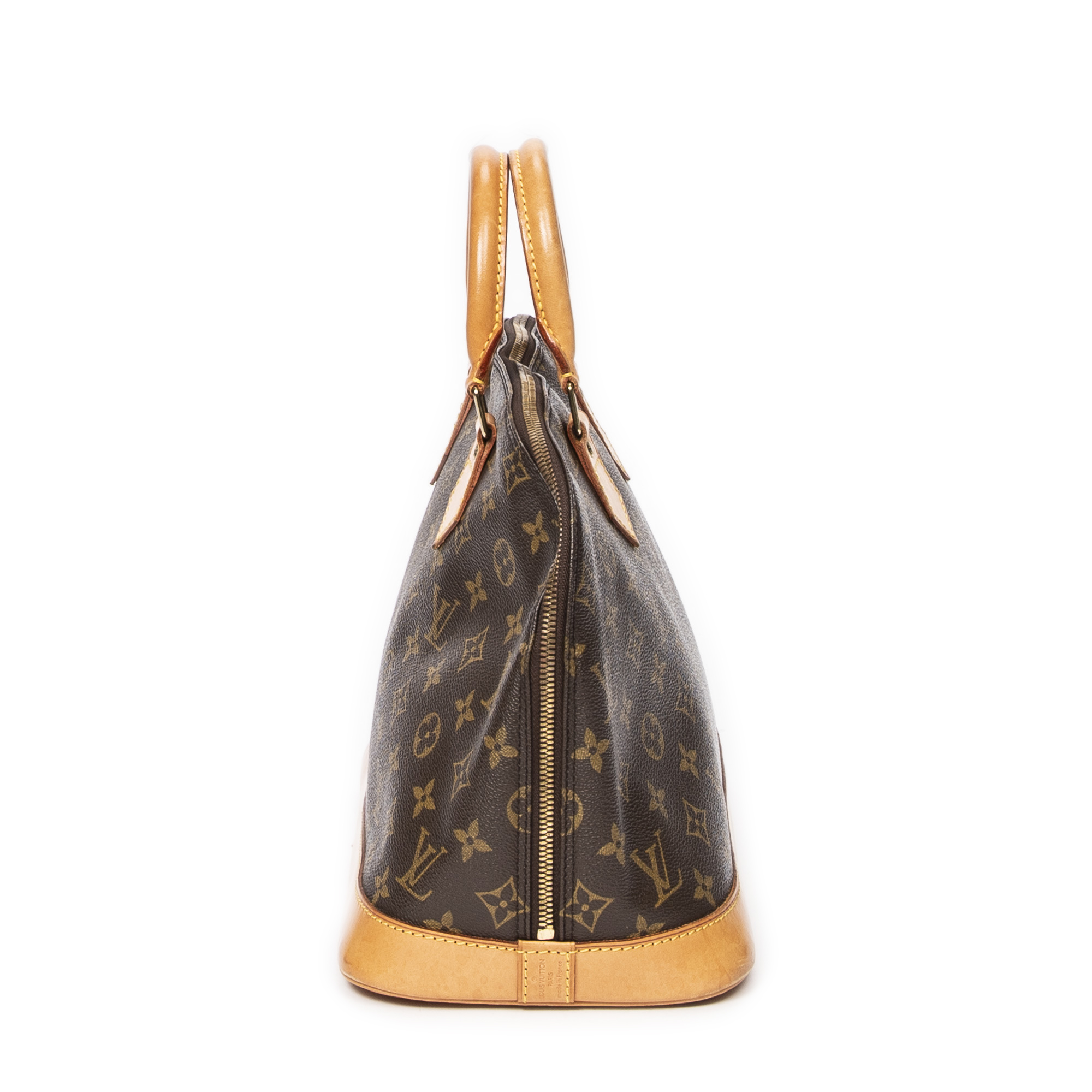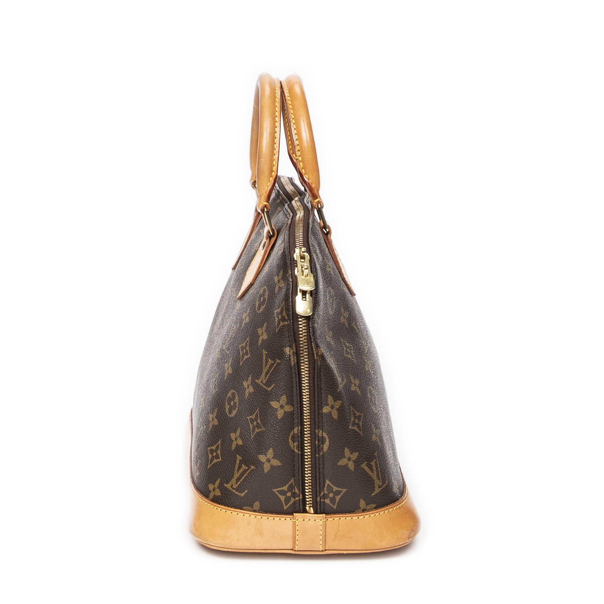 Louis Vuitton sac à main Alma PM en brun et laiton doré. Le produit est en Excellent état (A).