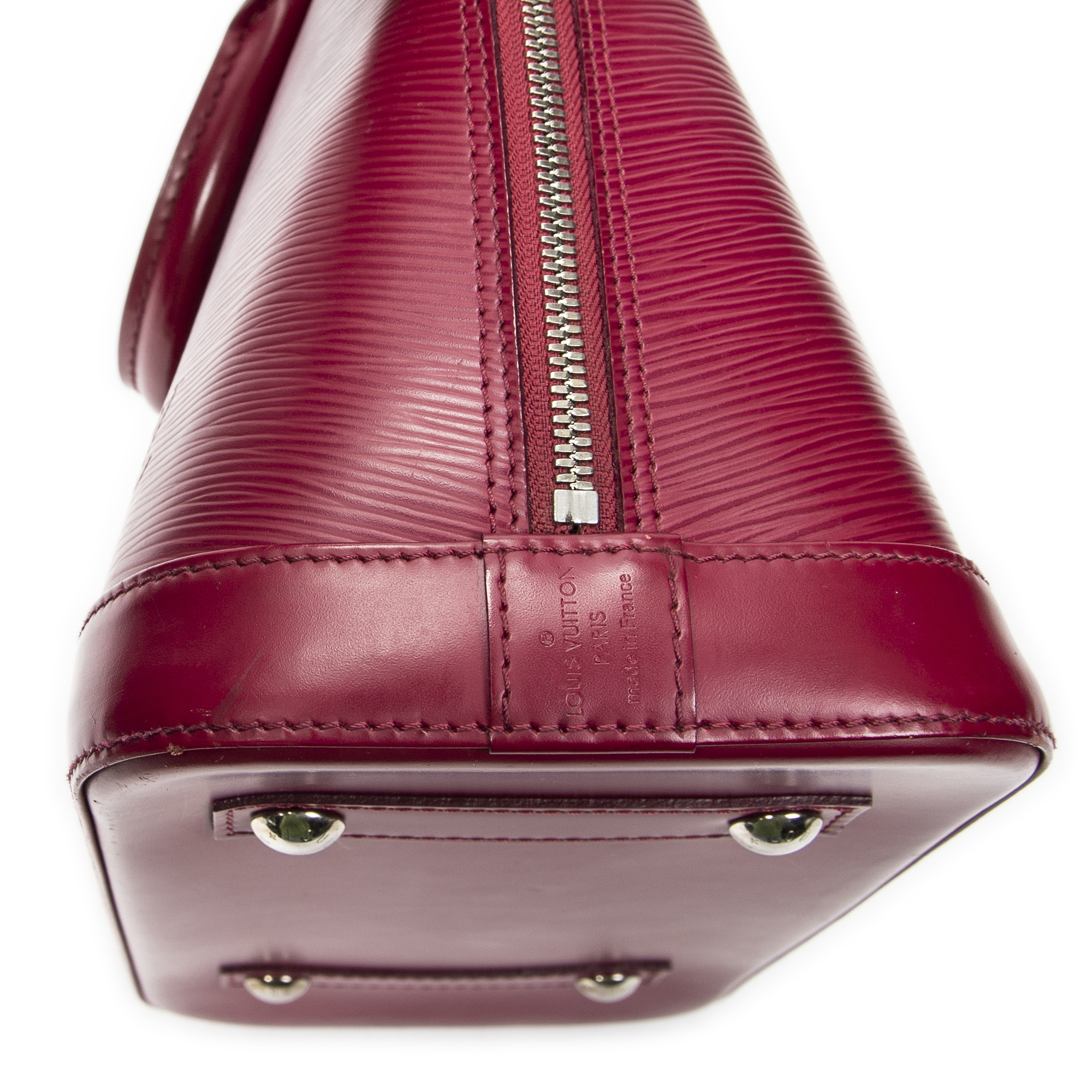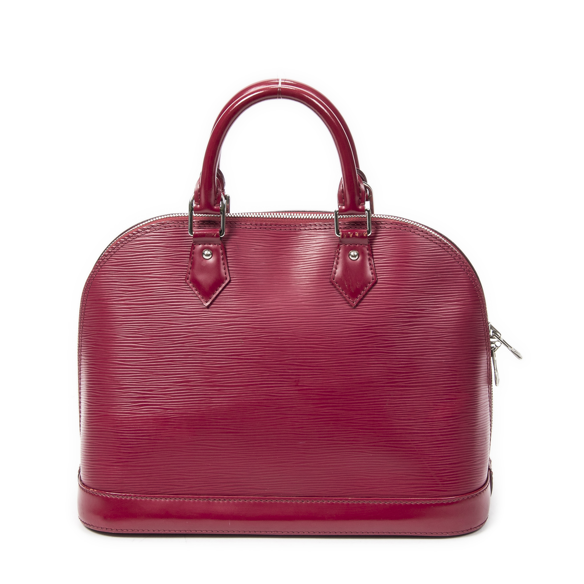 Louis Vuitton Sac à main Alma PM en Fuchsia et Laiton d’argent. Le produit est en Excellent état (A).