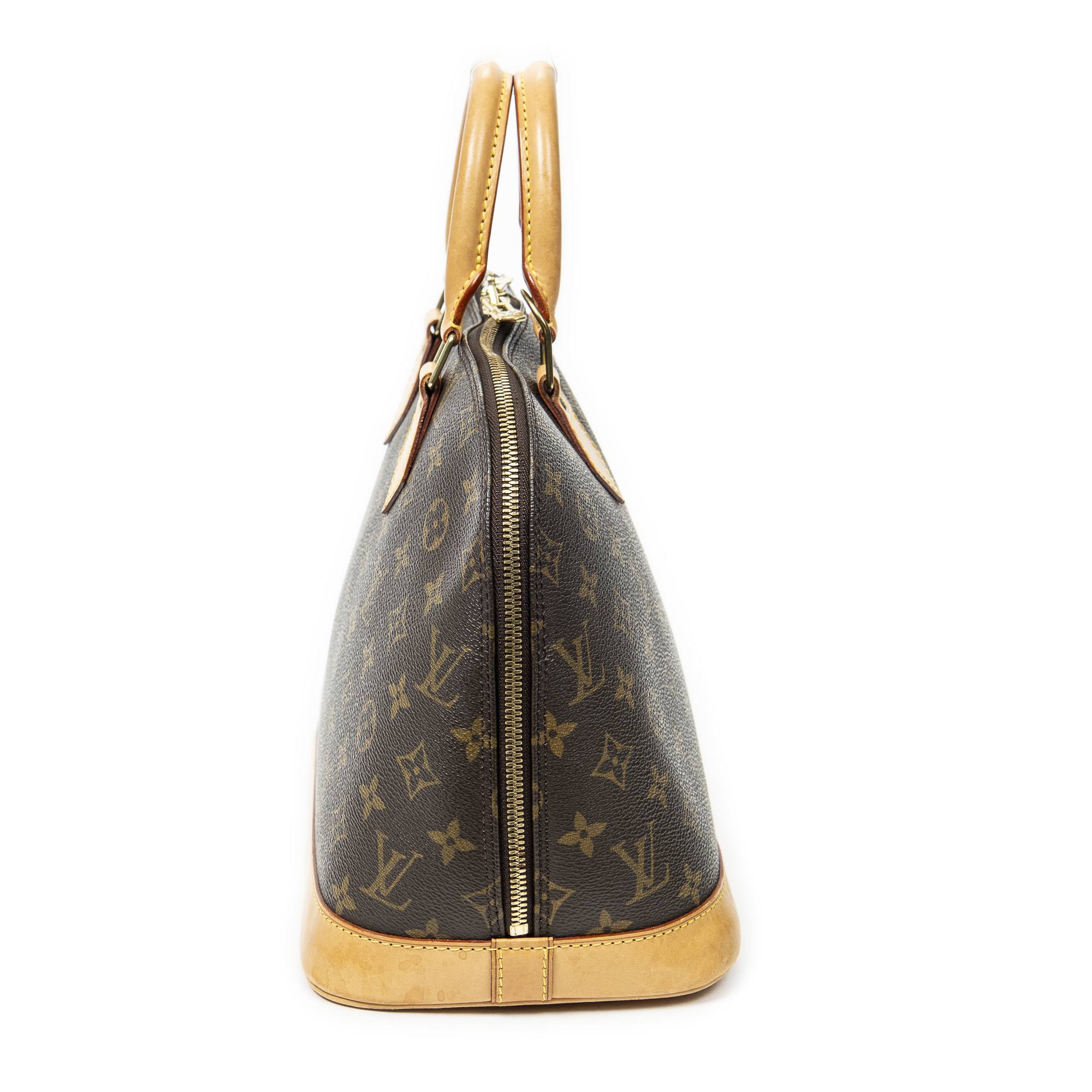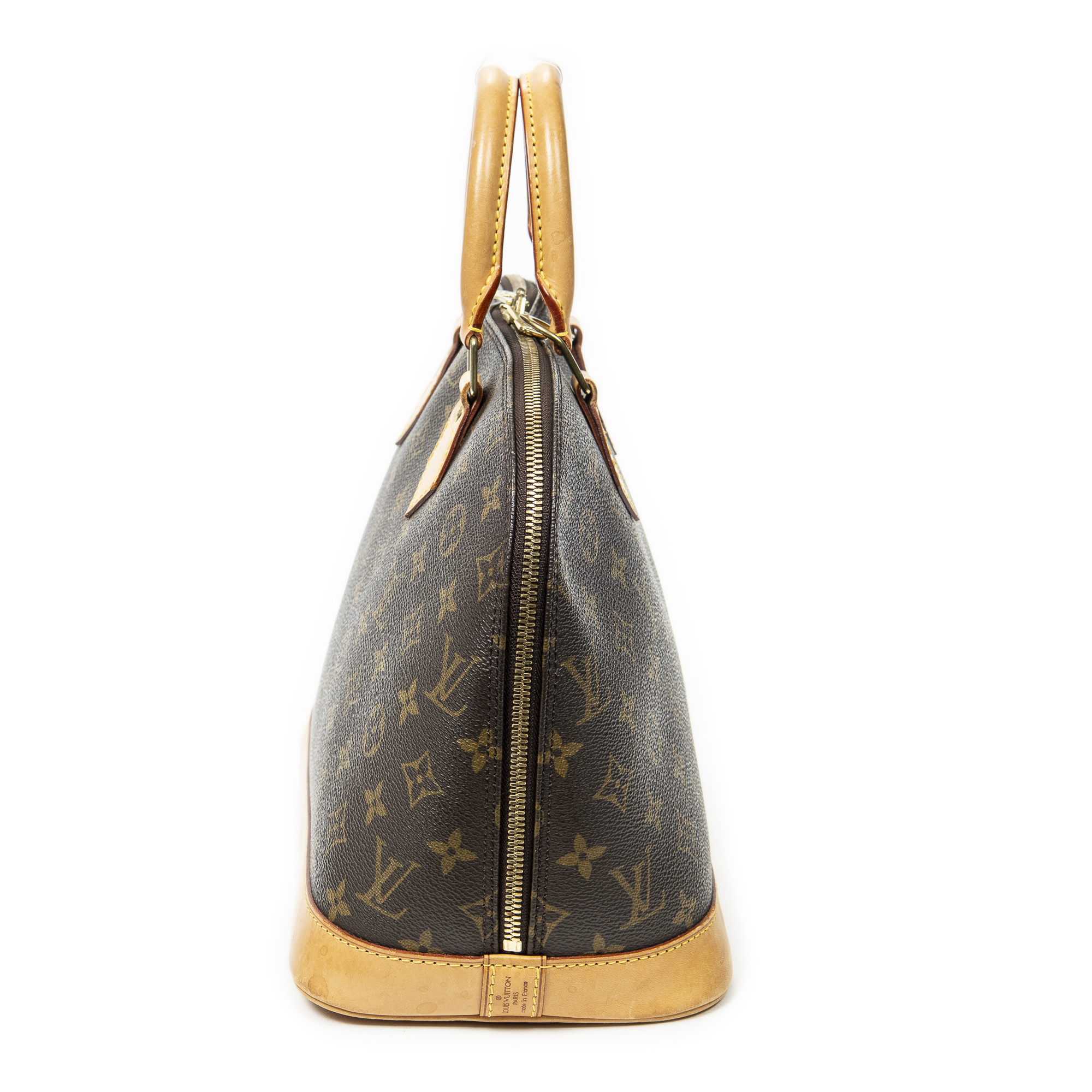 Louis Vuitton Sac à main Alma PM en Marron et Laiton doré. Le produit est en Très Bon état (AB).