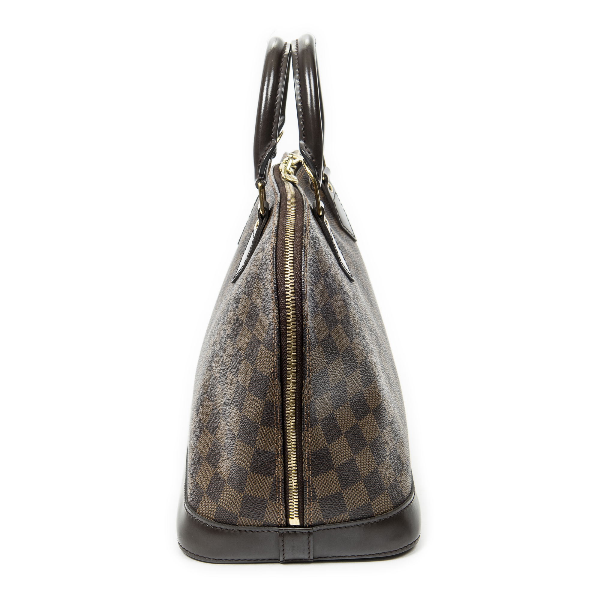 Louis Vuitton Sac à main Alma PM en Marron et Laiton doré. Le produit est en Excellent état (A).