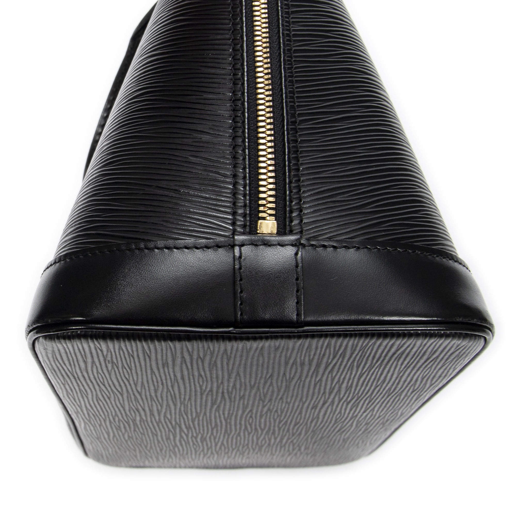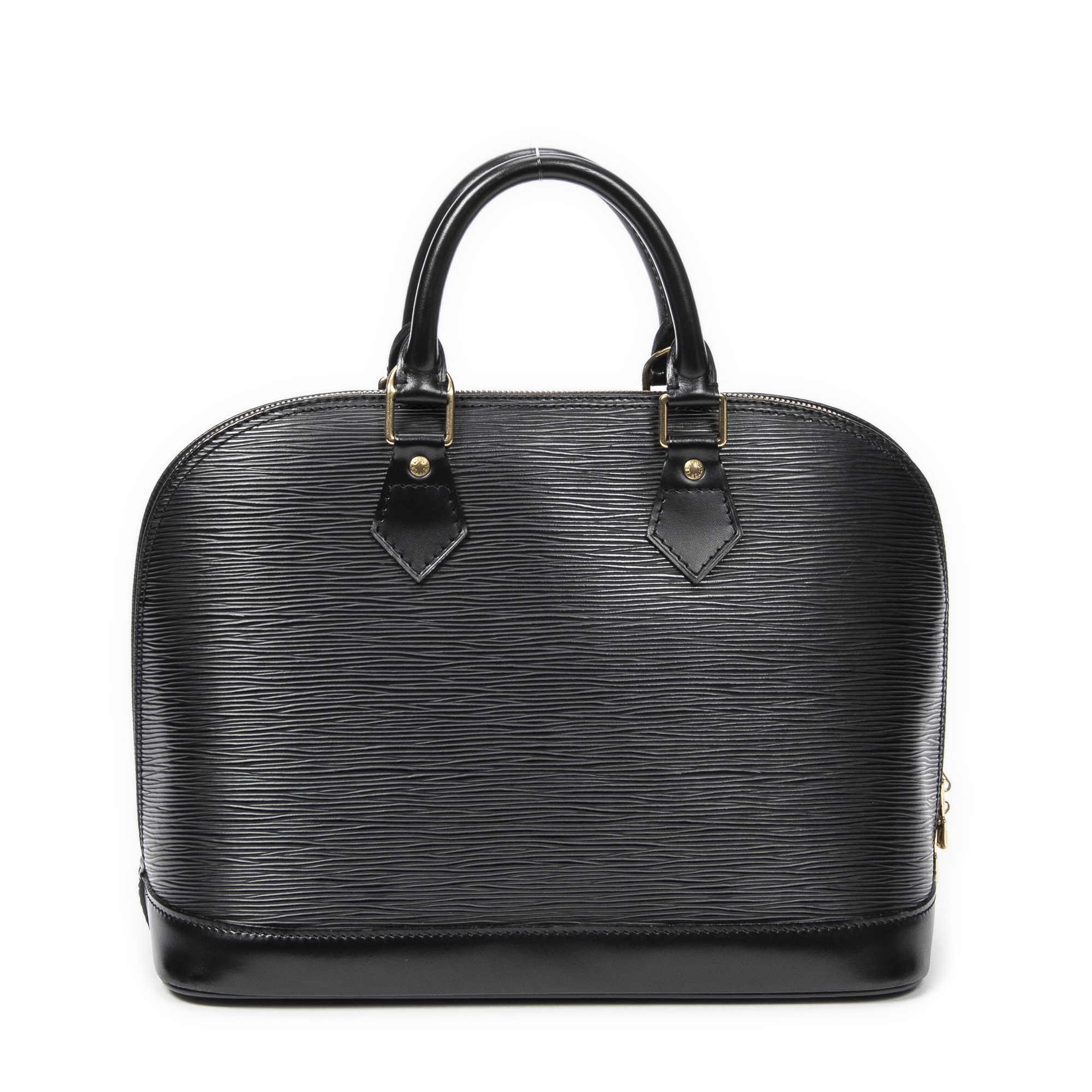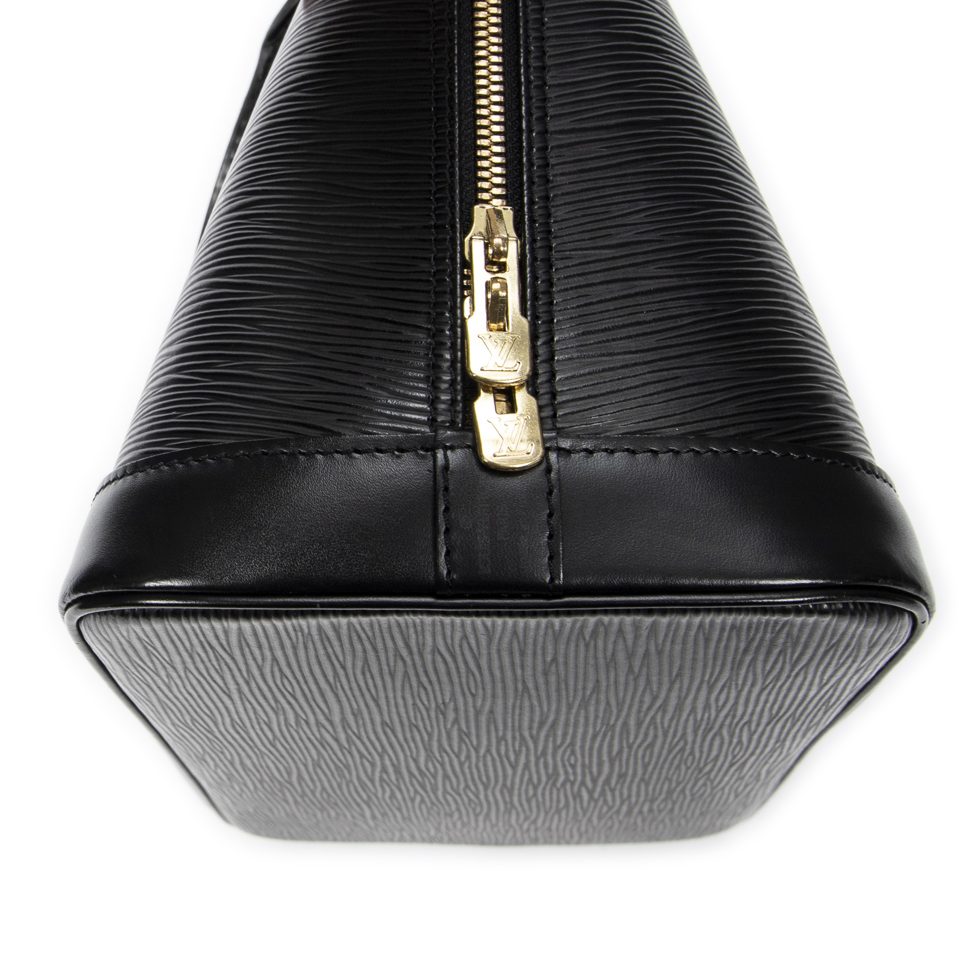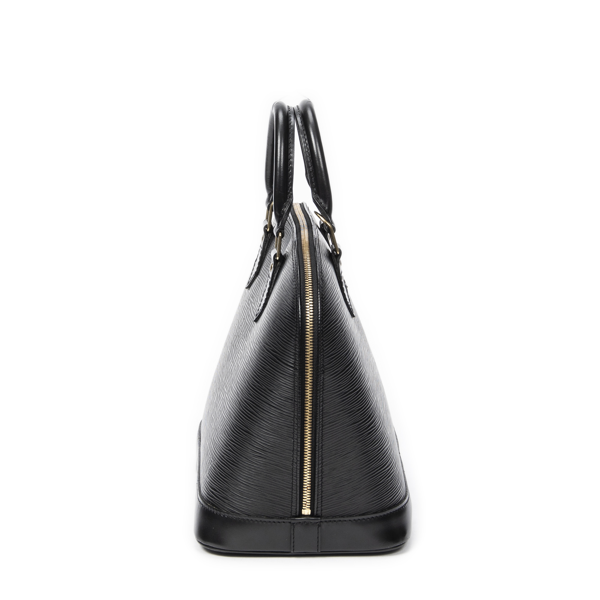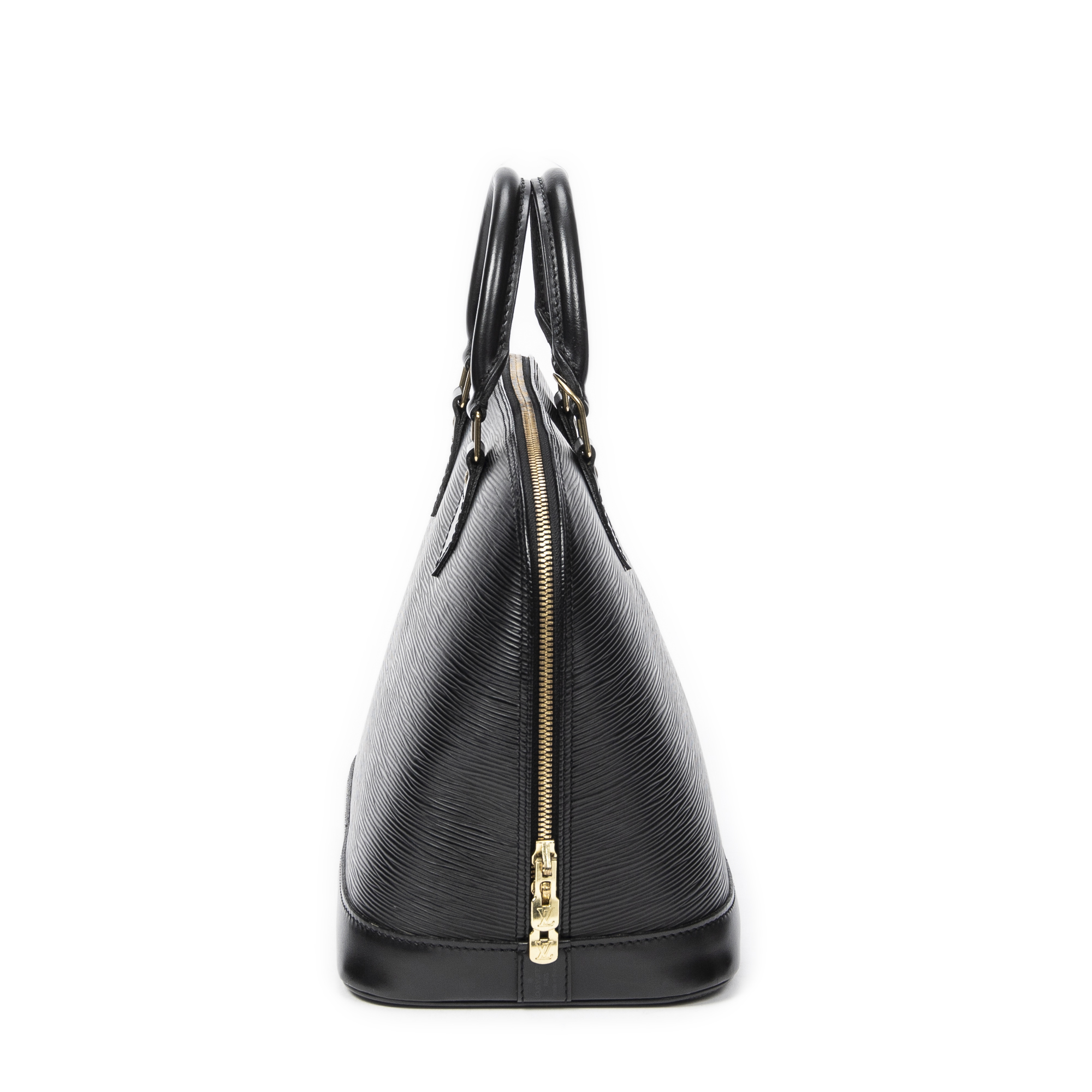 Louis Vuitton Sac à main Alma PM en Noir et Laiton doré. Le produit est en Excellent état (A).