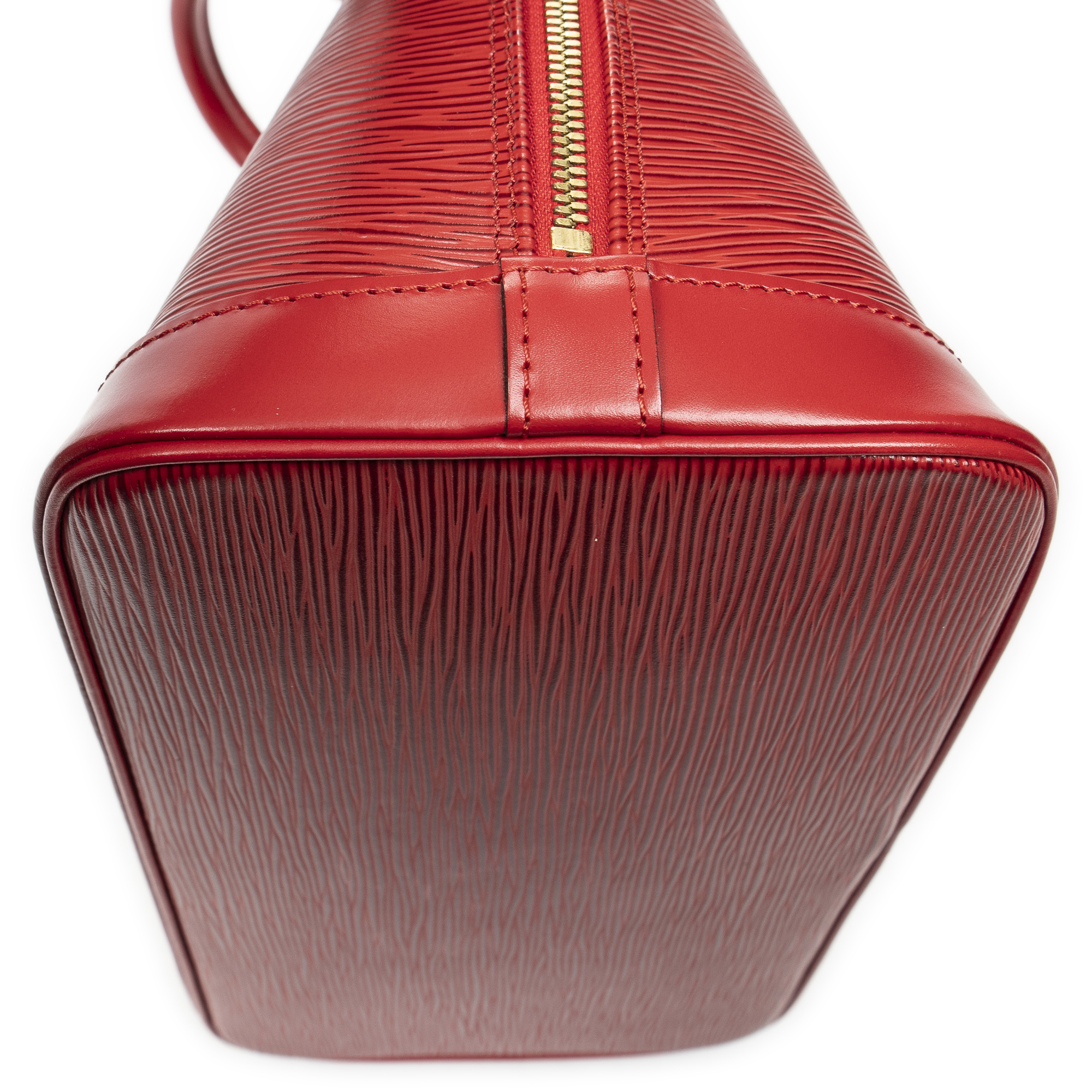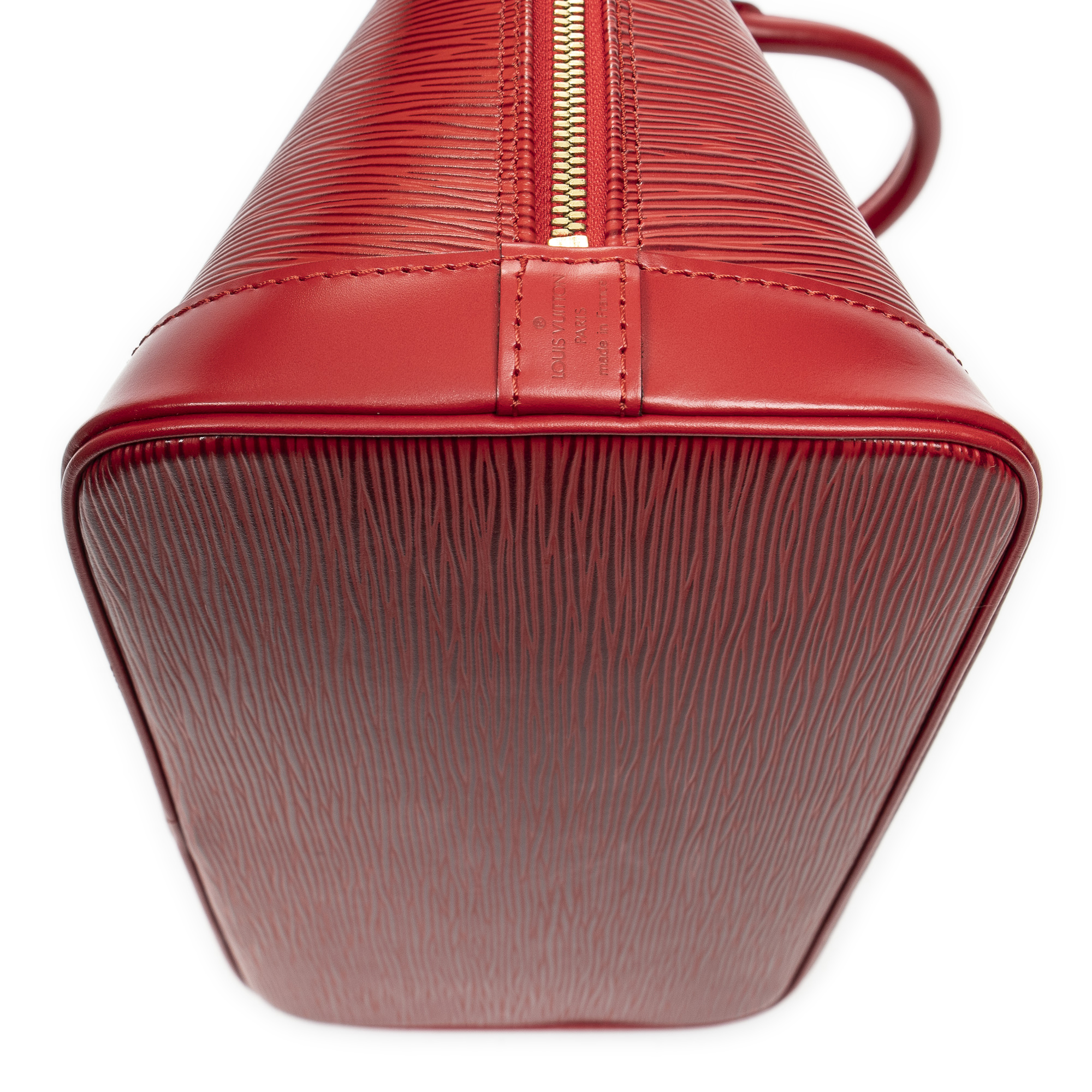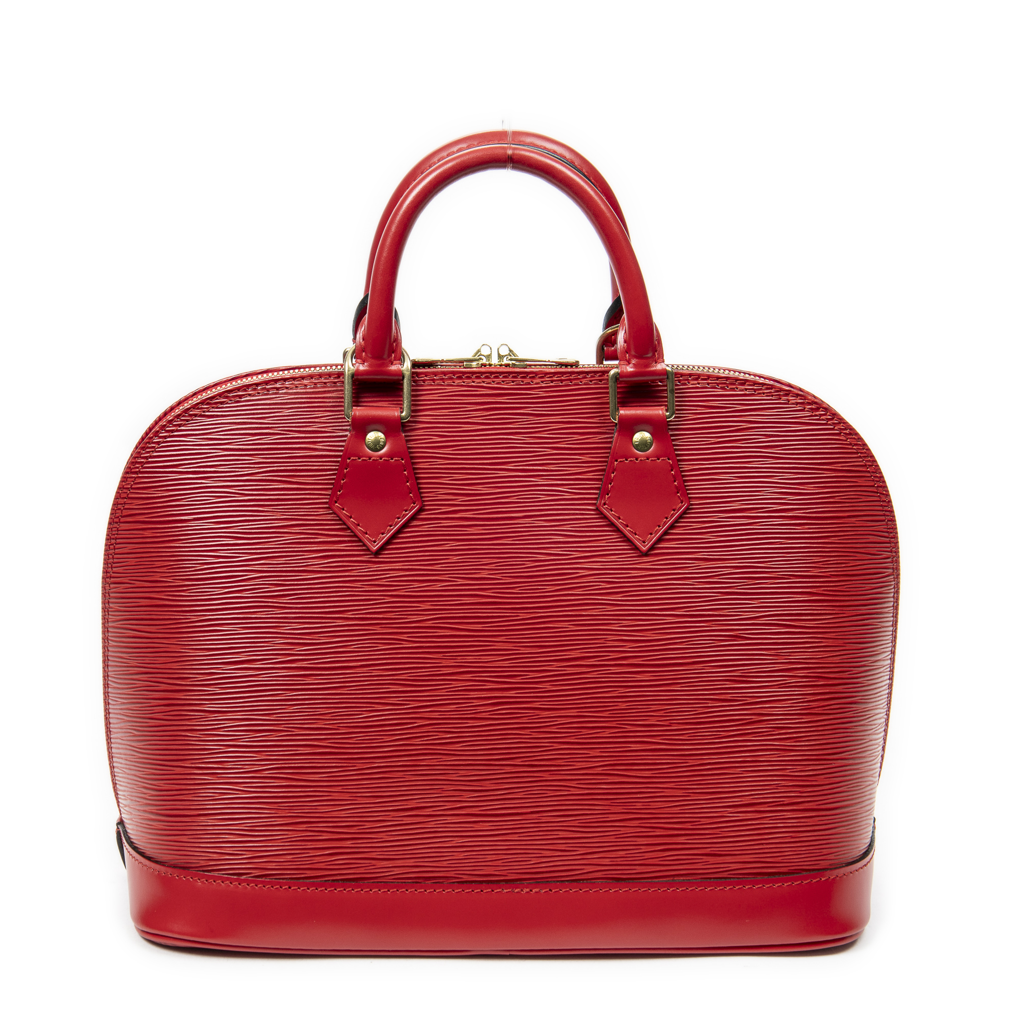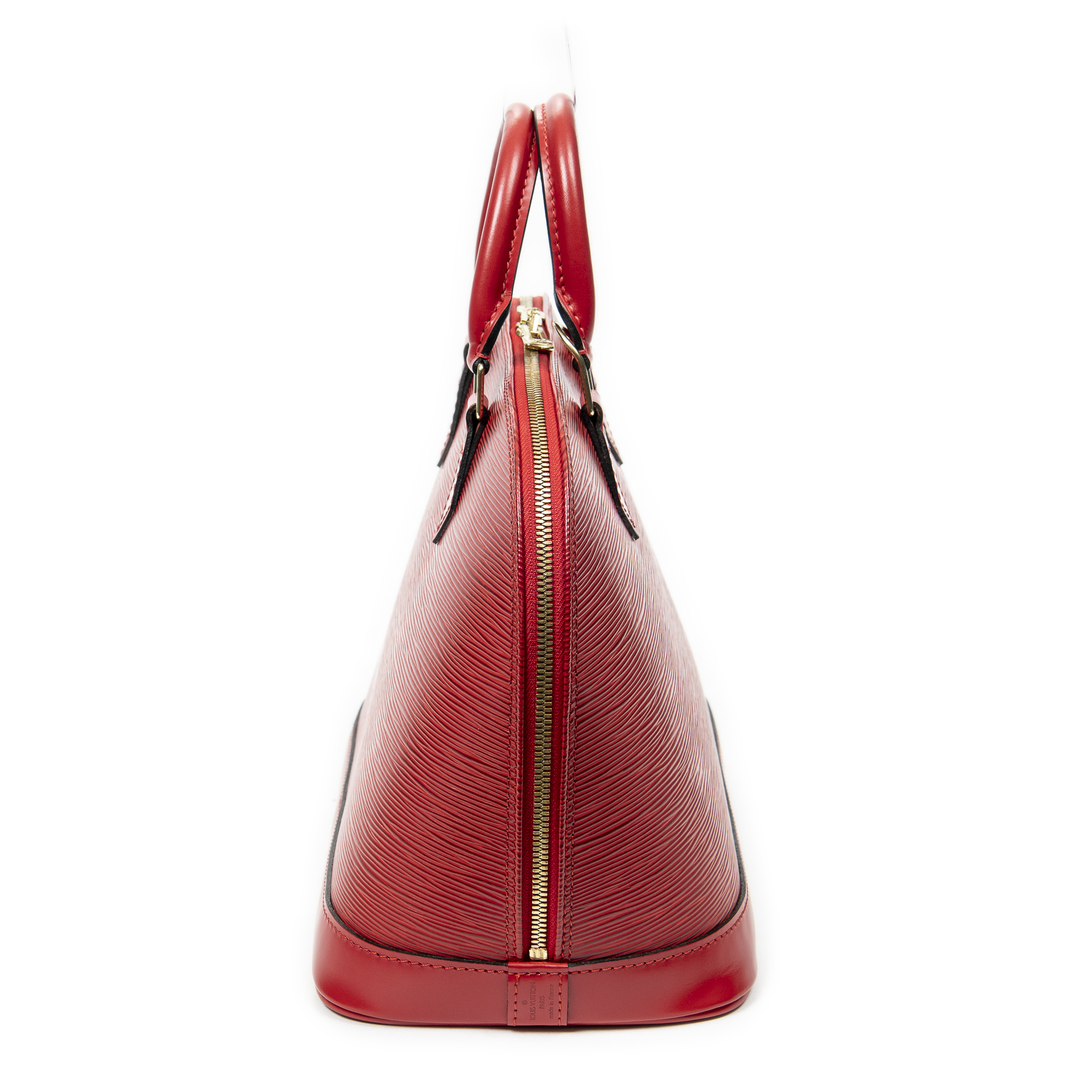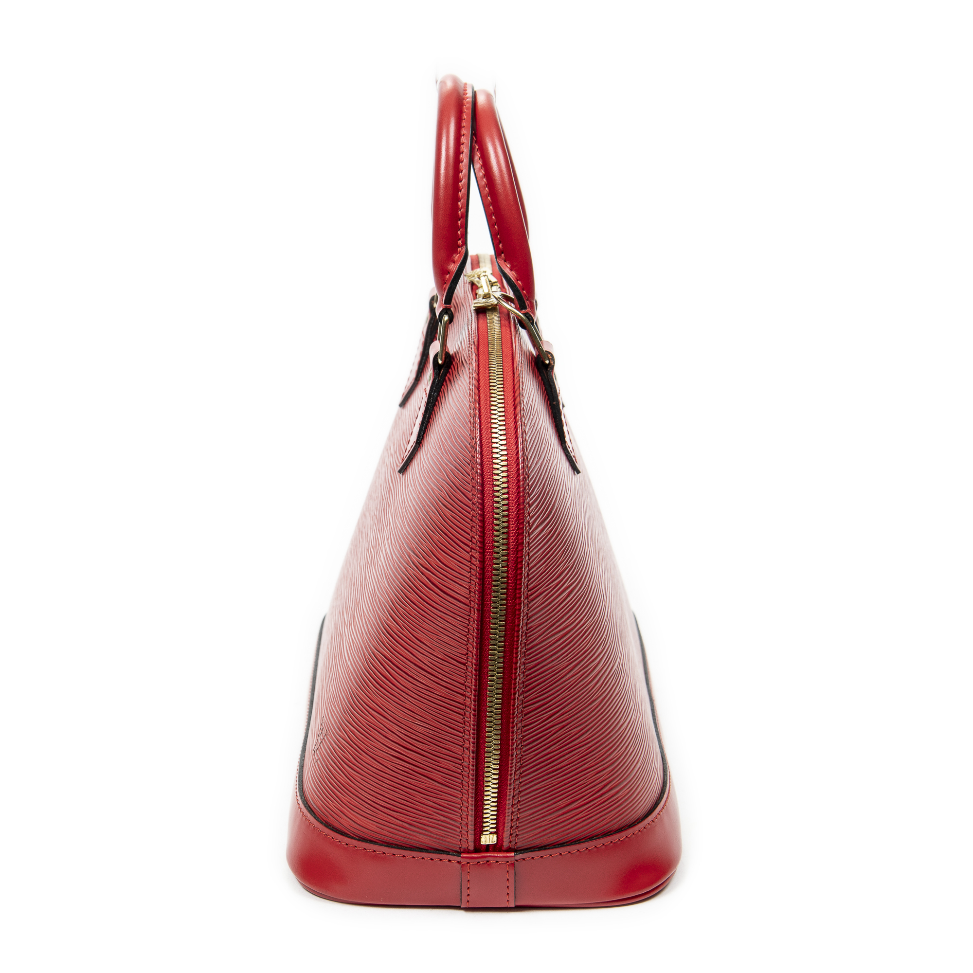 Louis Vuitton Sac à main Alma PM en Rouge et Laiton doré. Le produit est en Parfait état (AA).