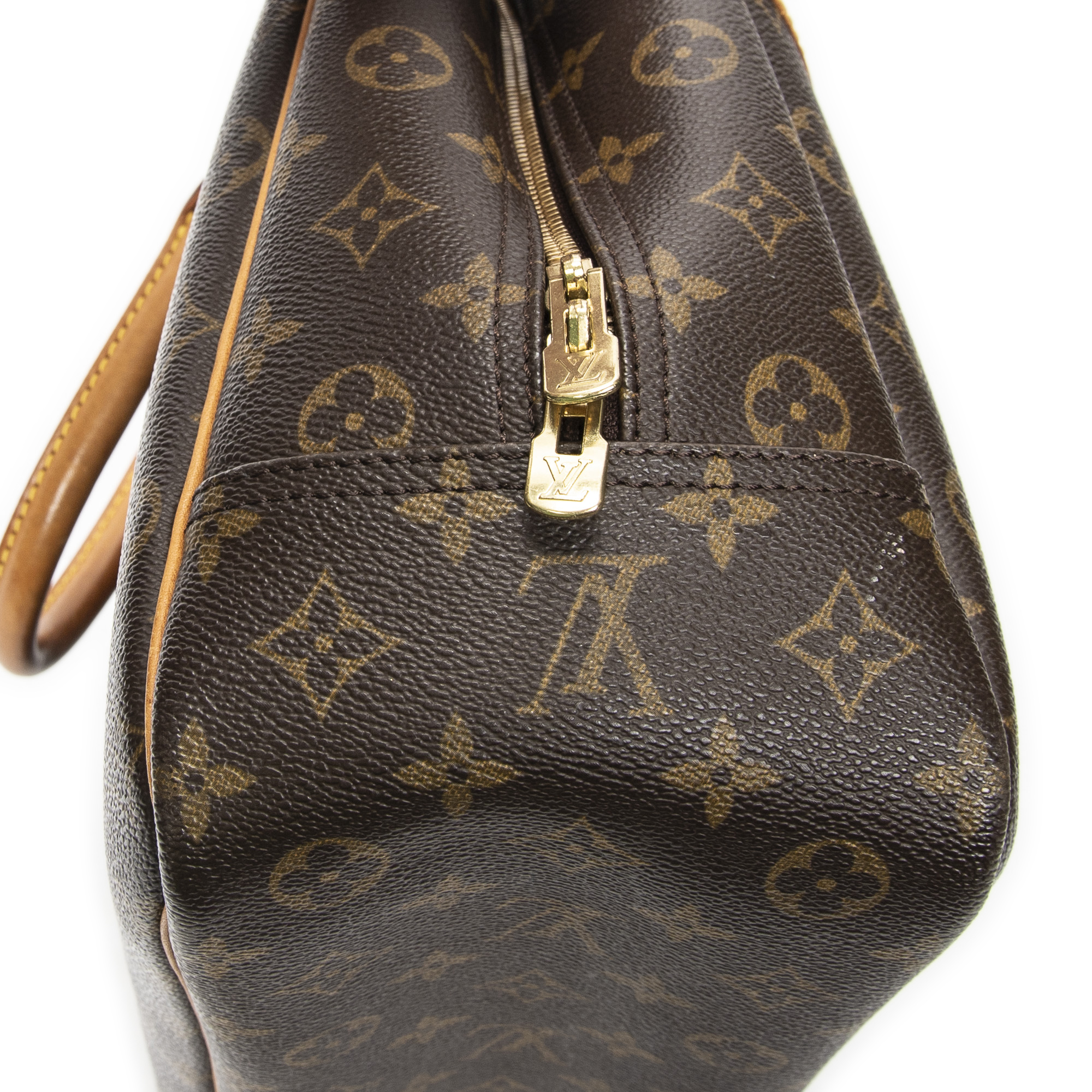 Louis Vuitton Sac à main Deauville en Brown et Cuivre d’Or. Le produit est en Très Bon état (AB).