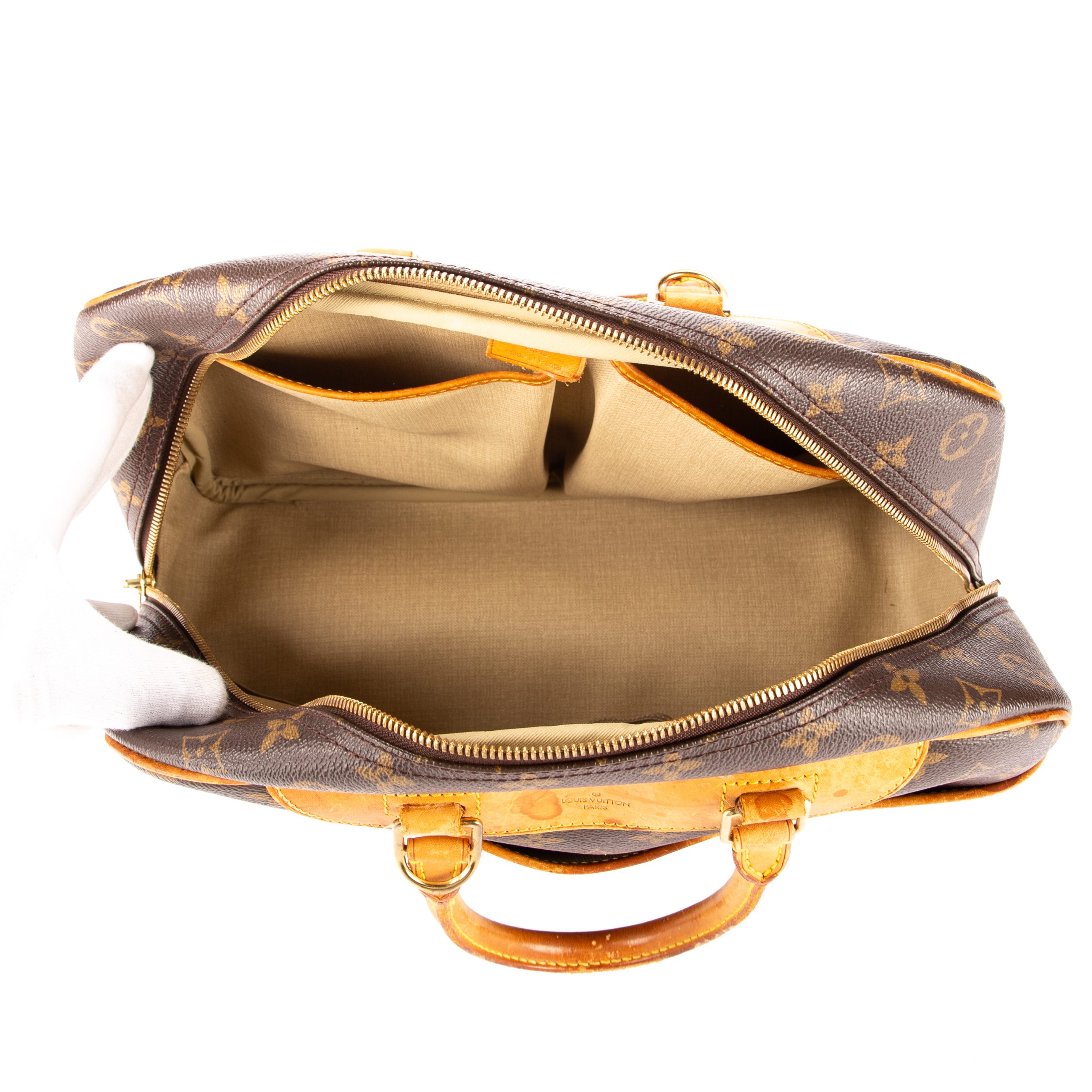 Louis Vuitton Sac à main Deauville en Brown et Cuivre d’Or. Le produit est en Très Bon état (AB).