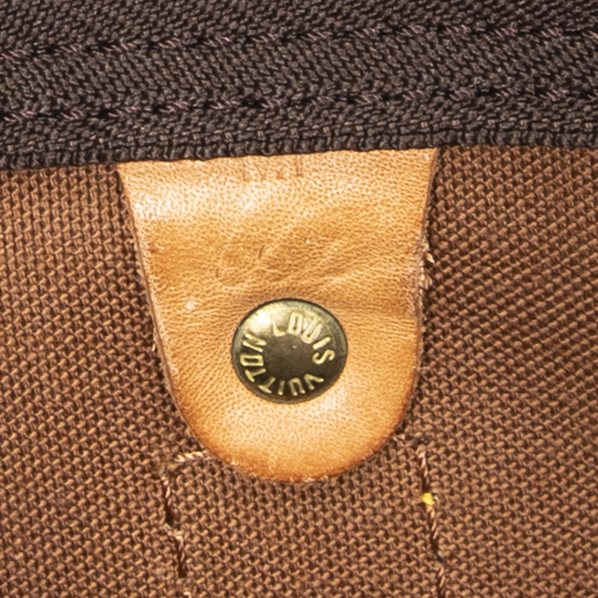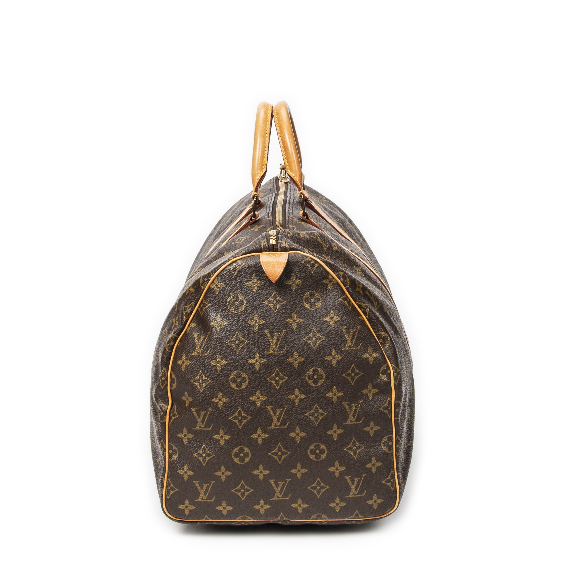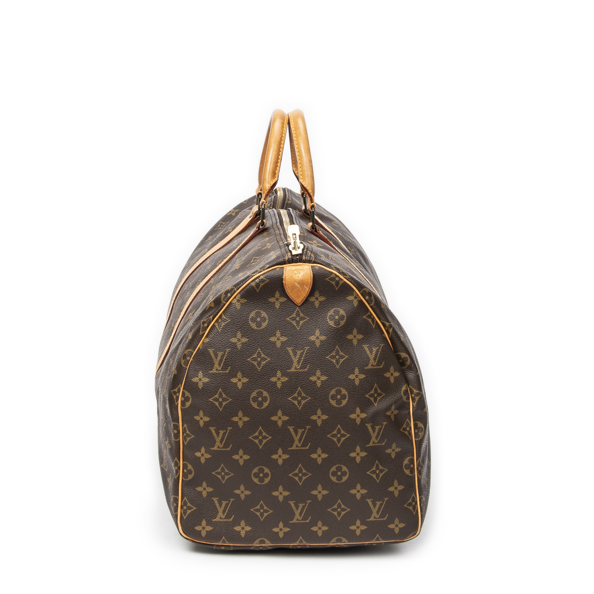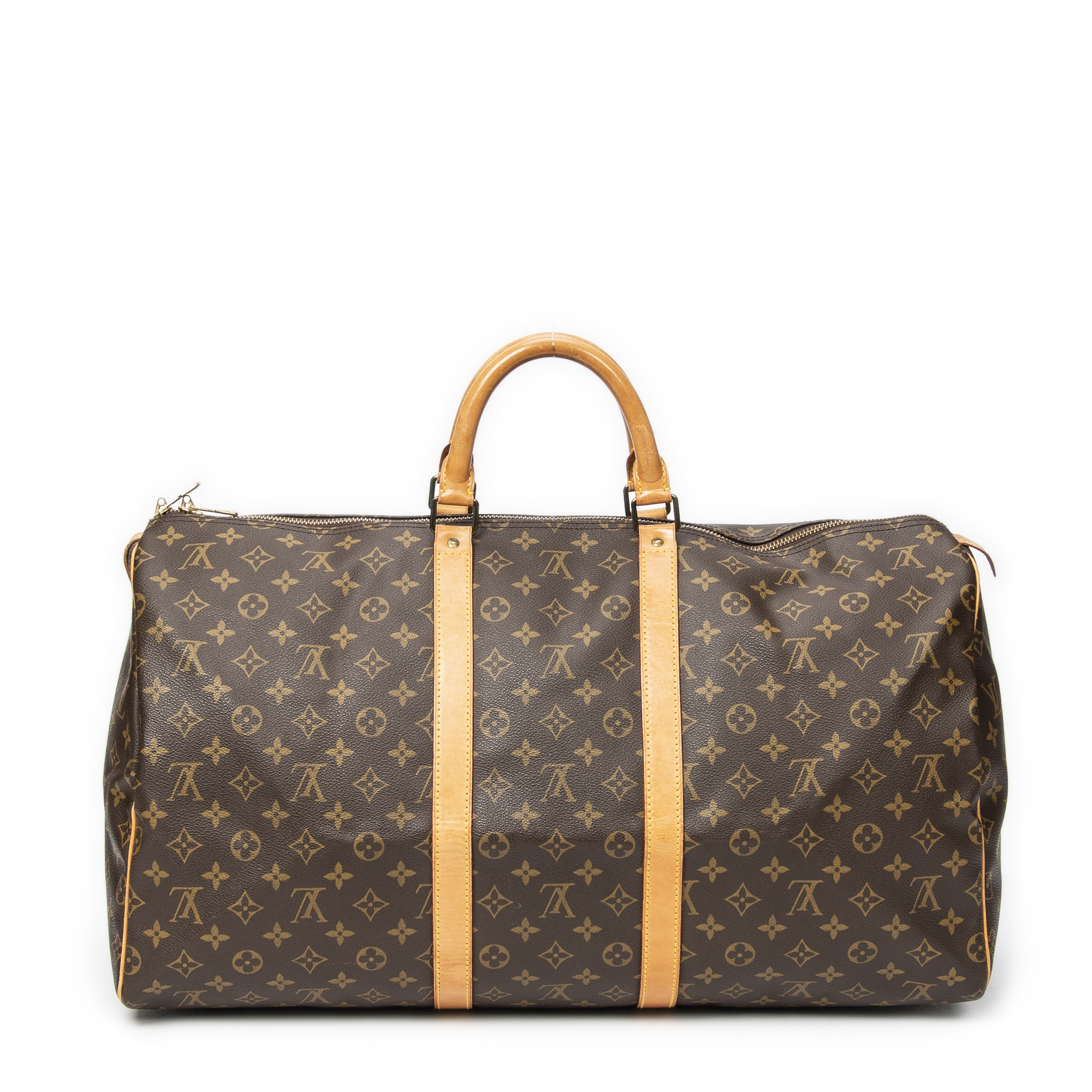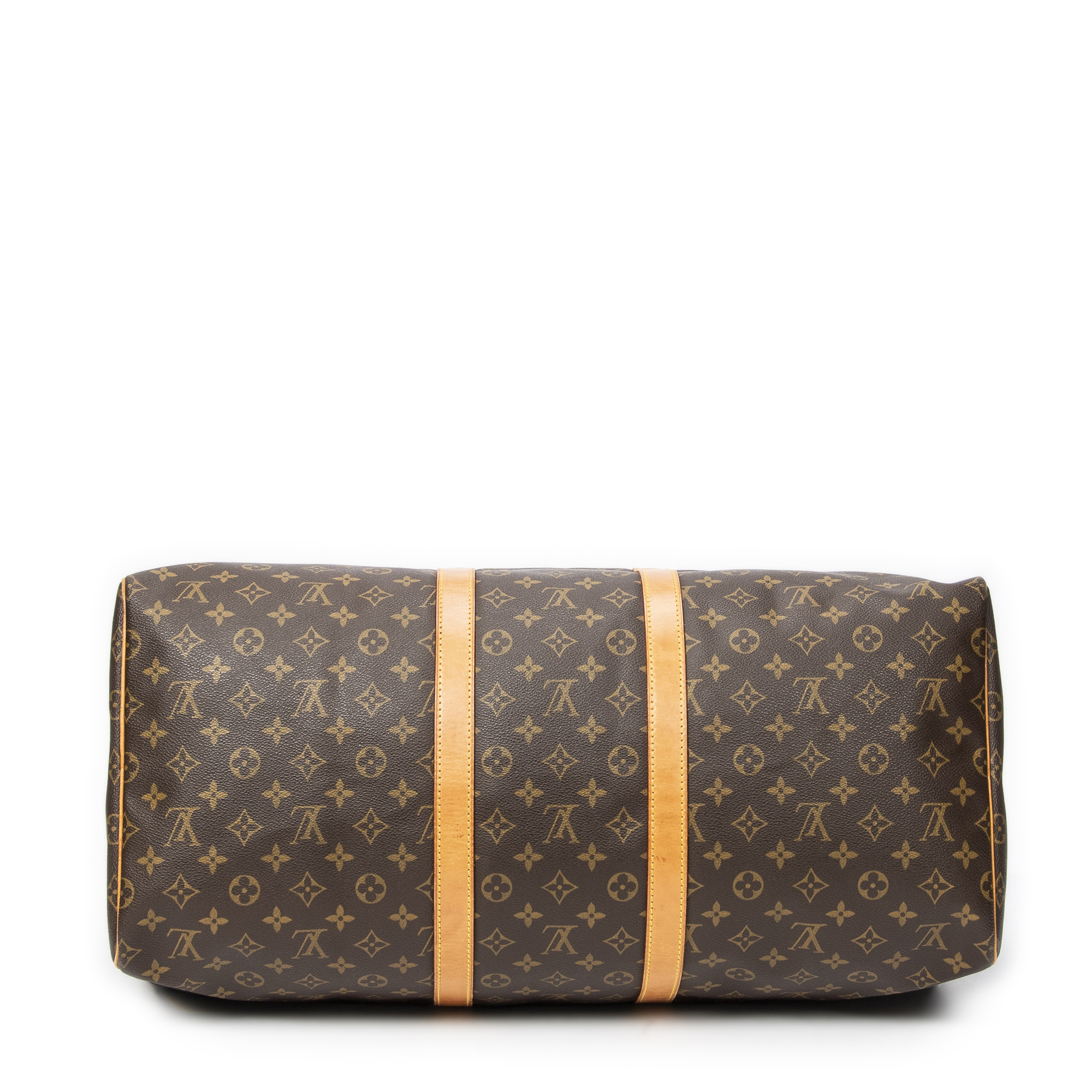 Louis Vuitton Sac de voyage Keepall 55 en Marron et Laiton doré. Le produit est en Très Bon état (AB).
