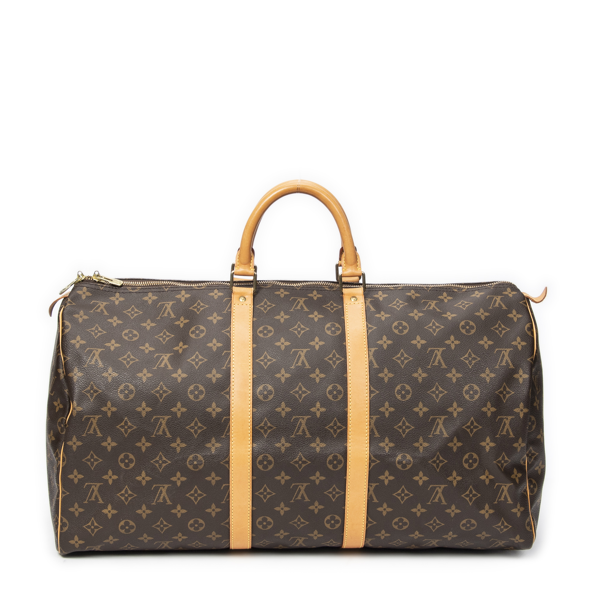 Louis Vuitton Sac de voyage Keepall 55 en Marron et Laiton doré. Le produit est en Excellent état (A).