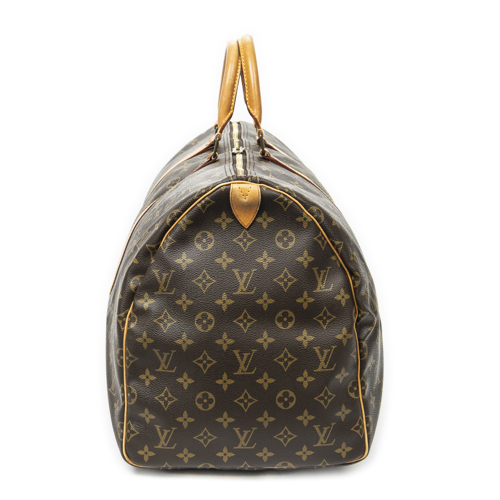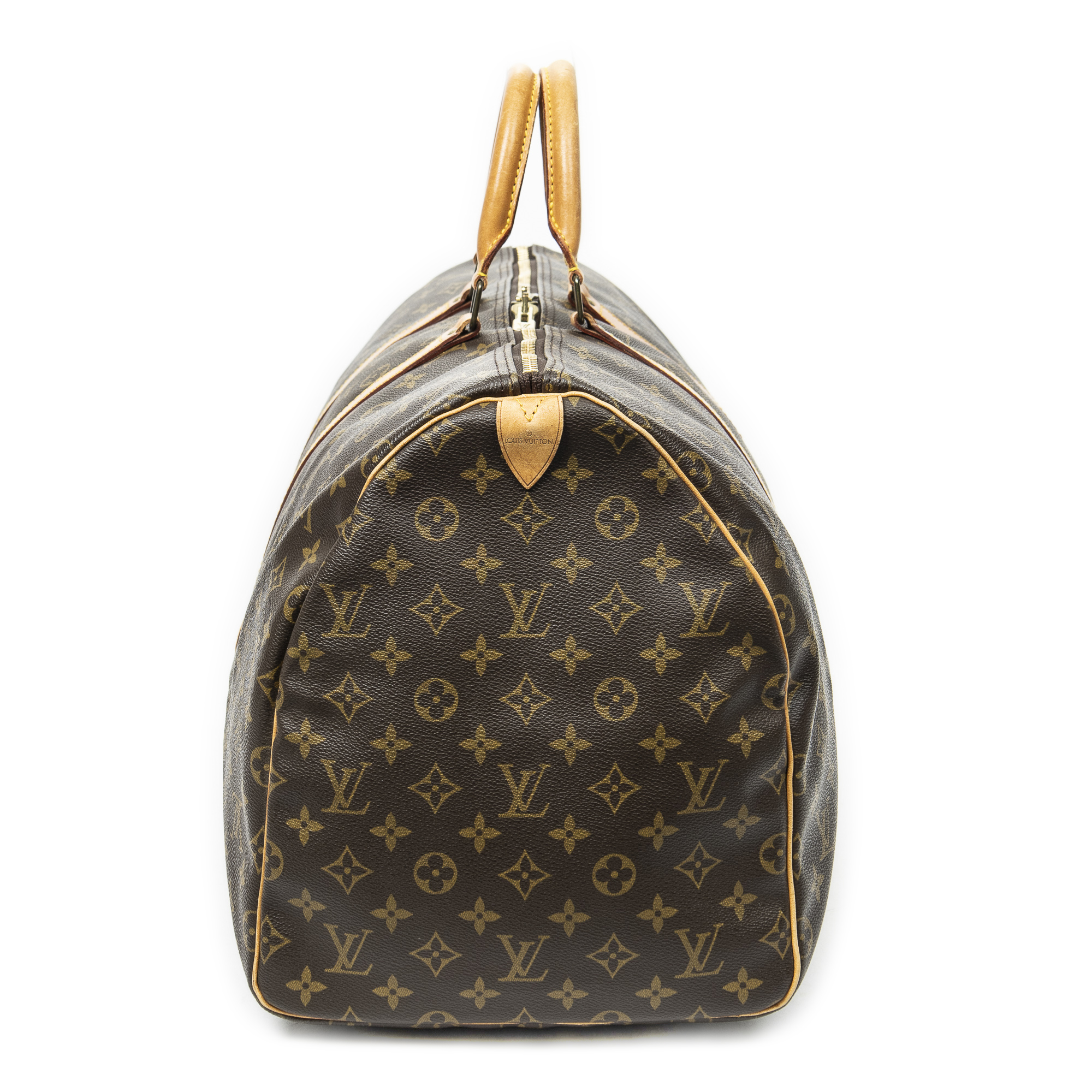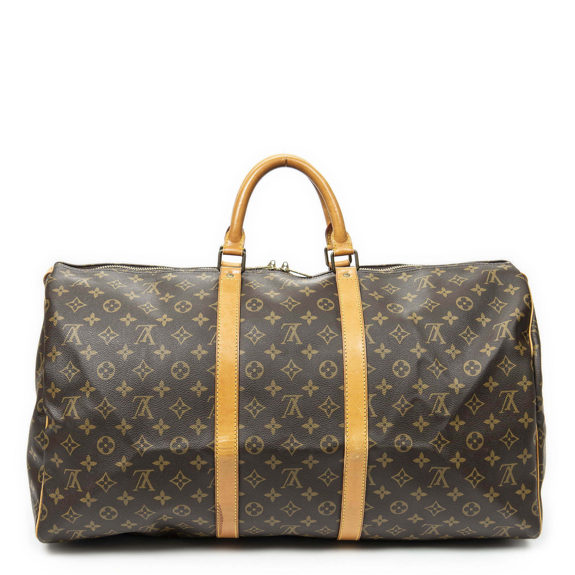 Louis Vuitton Sac de voyage Keepall 55 en Marron et Laiton doré. Le produit est en Très Bon état (AB).