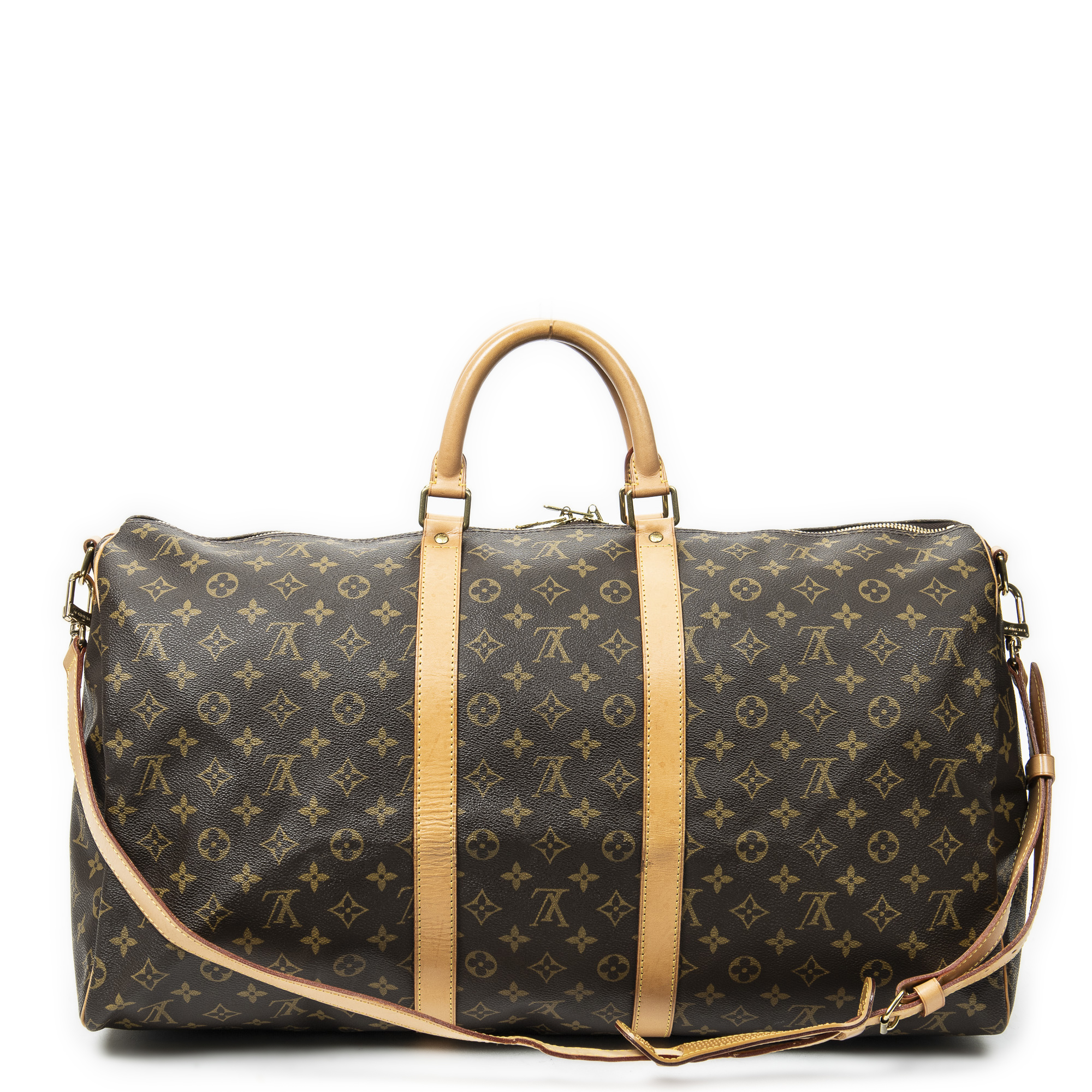 Louis Vuitton Sac de voyage Keepall Bandouliere 55 en Brown et Cuivre d’Or. Le produit est en Excellent état (A).
