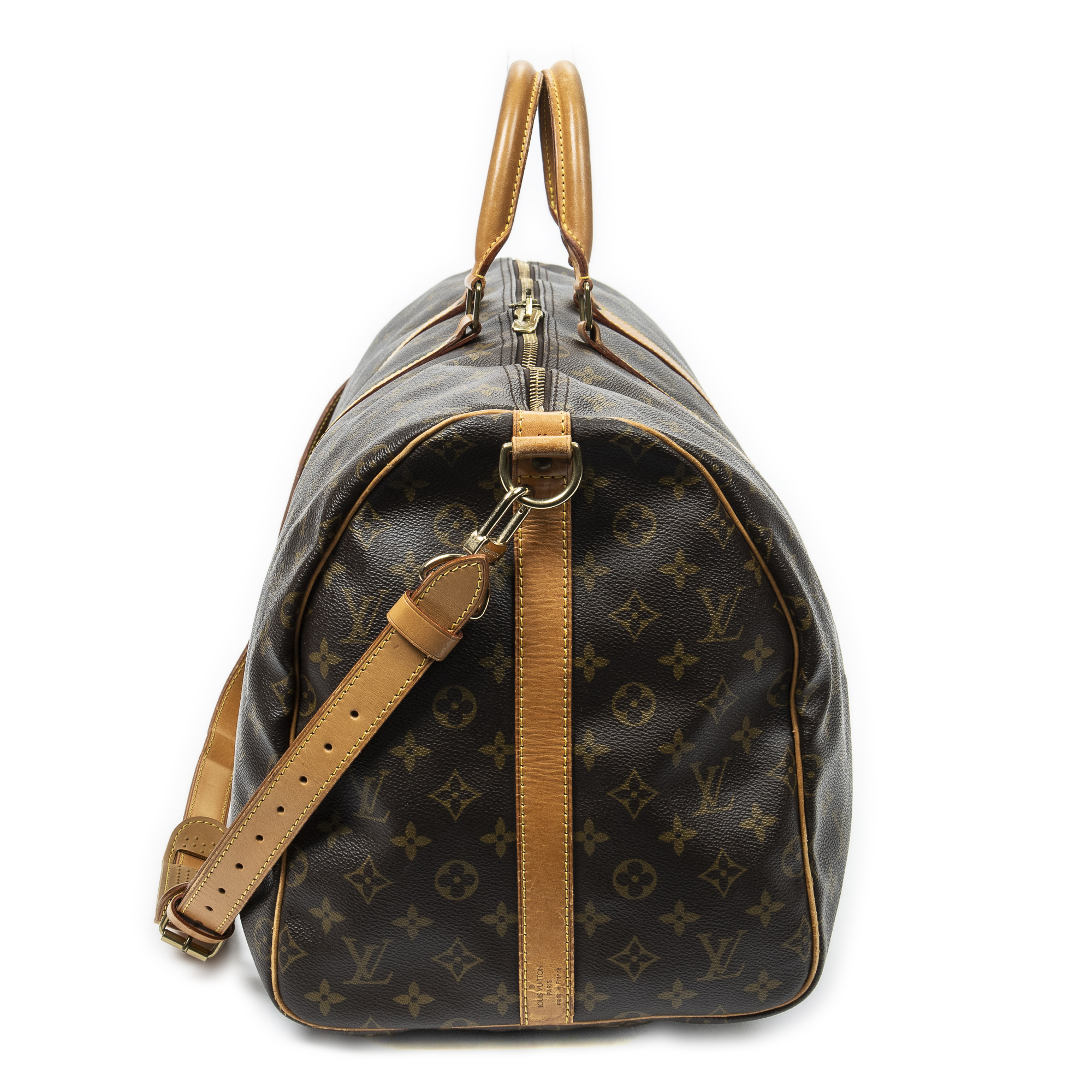 Louis Vuitton Sac de voyage Keepall Bandouliere 55 en Brown et Cuivre d’Or. Le produit est en Très Bon état (AB).