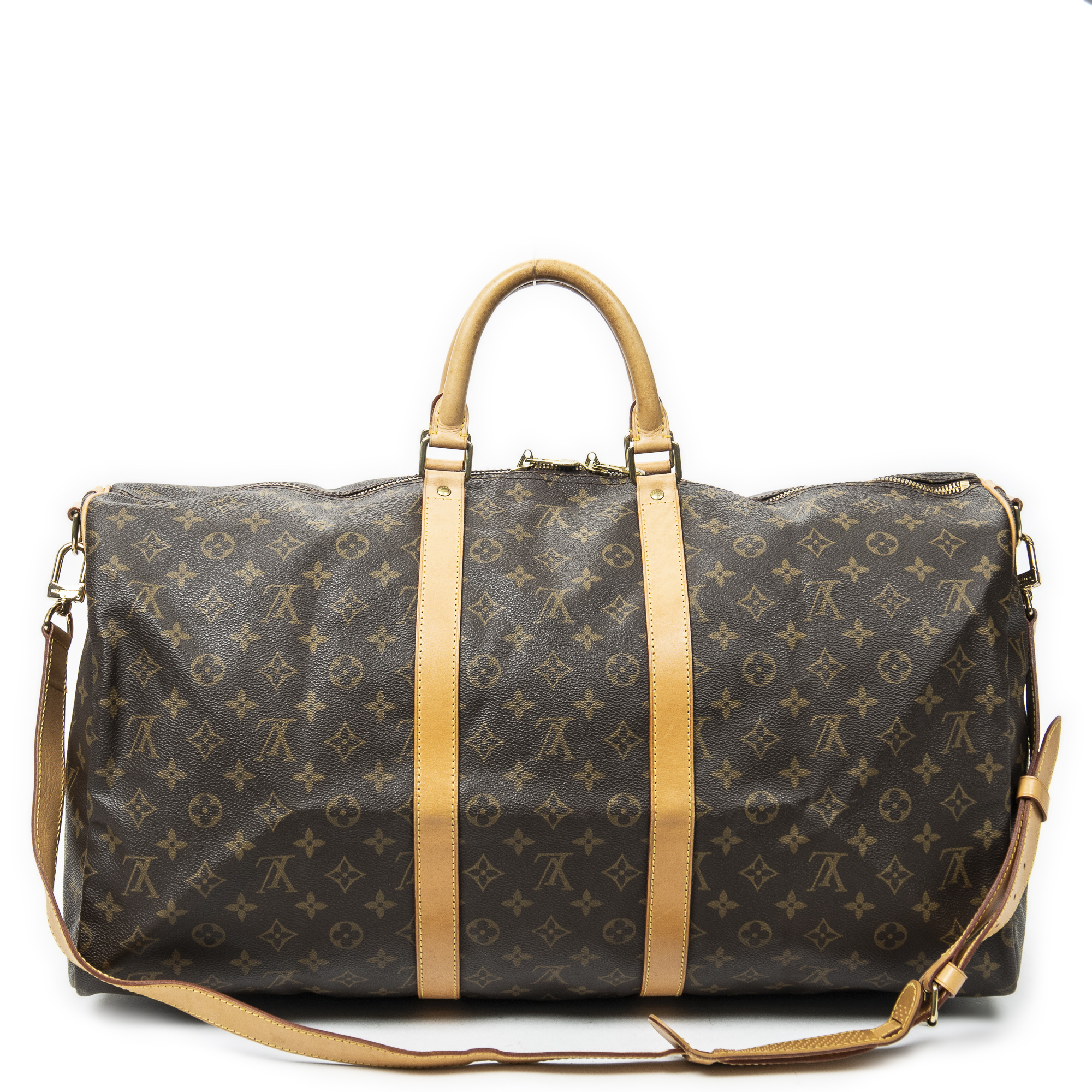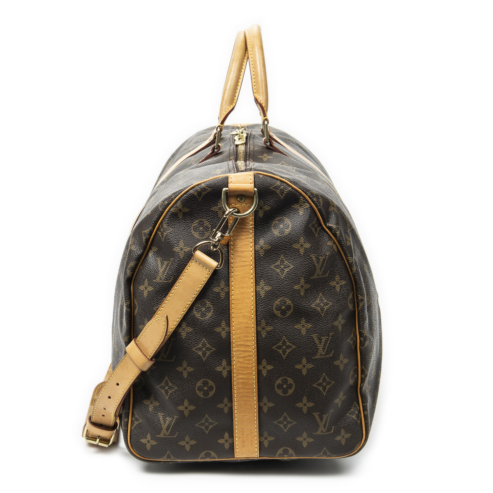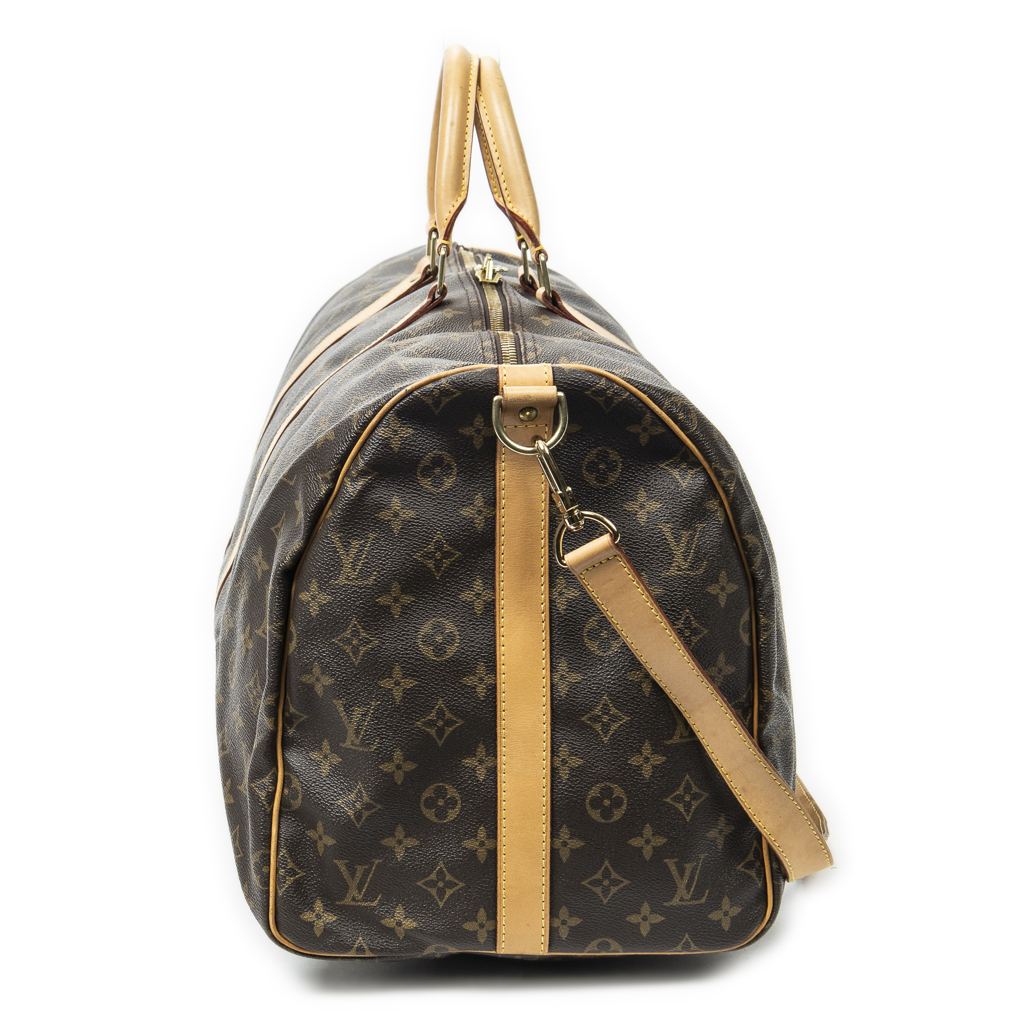 Louis Vuitton Sac de voyage Keepall Bandouliere 55 en Brown et Cuivre d’Or. Le produit est en Excellent état (A).