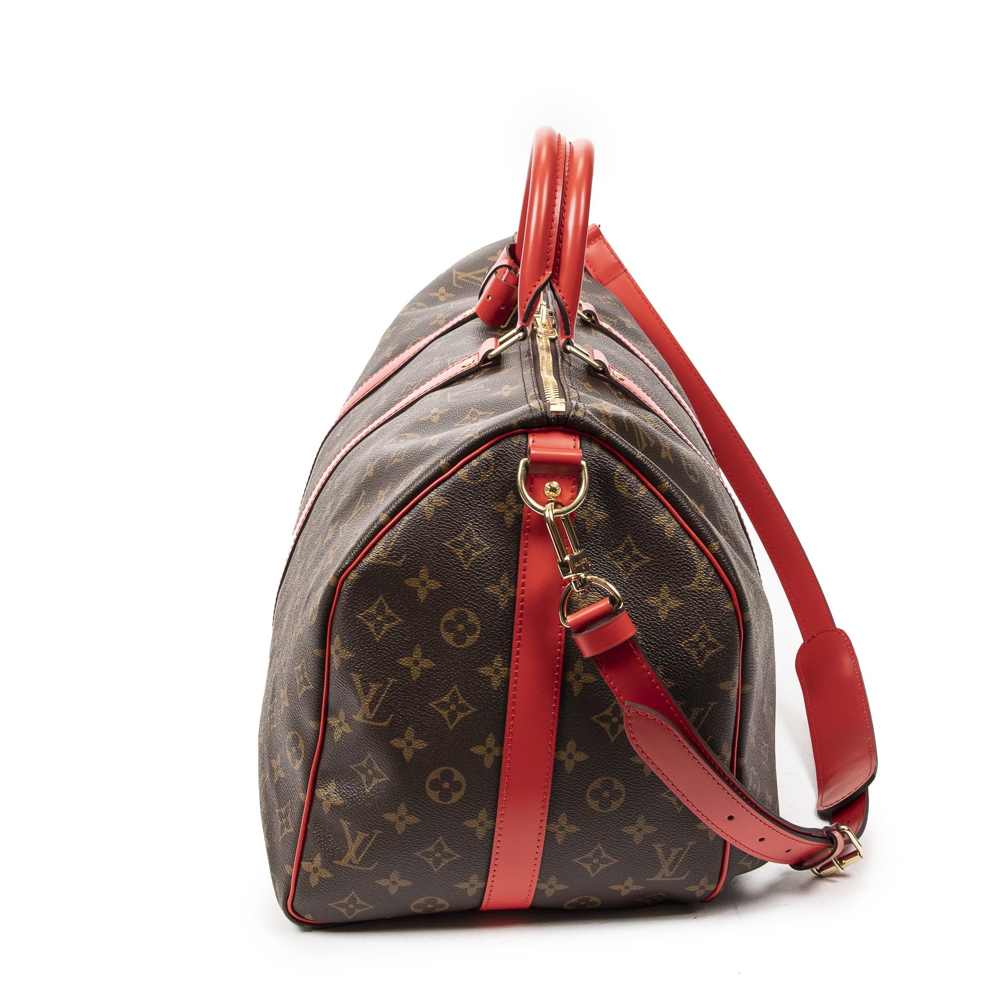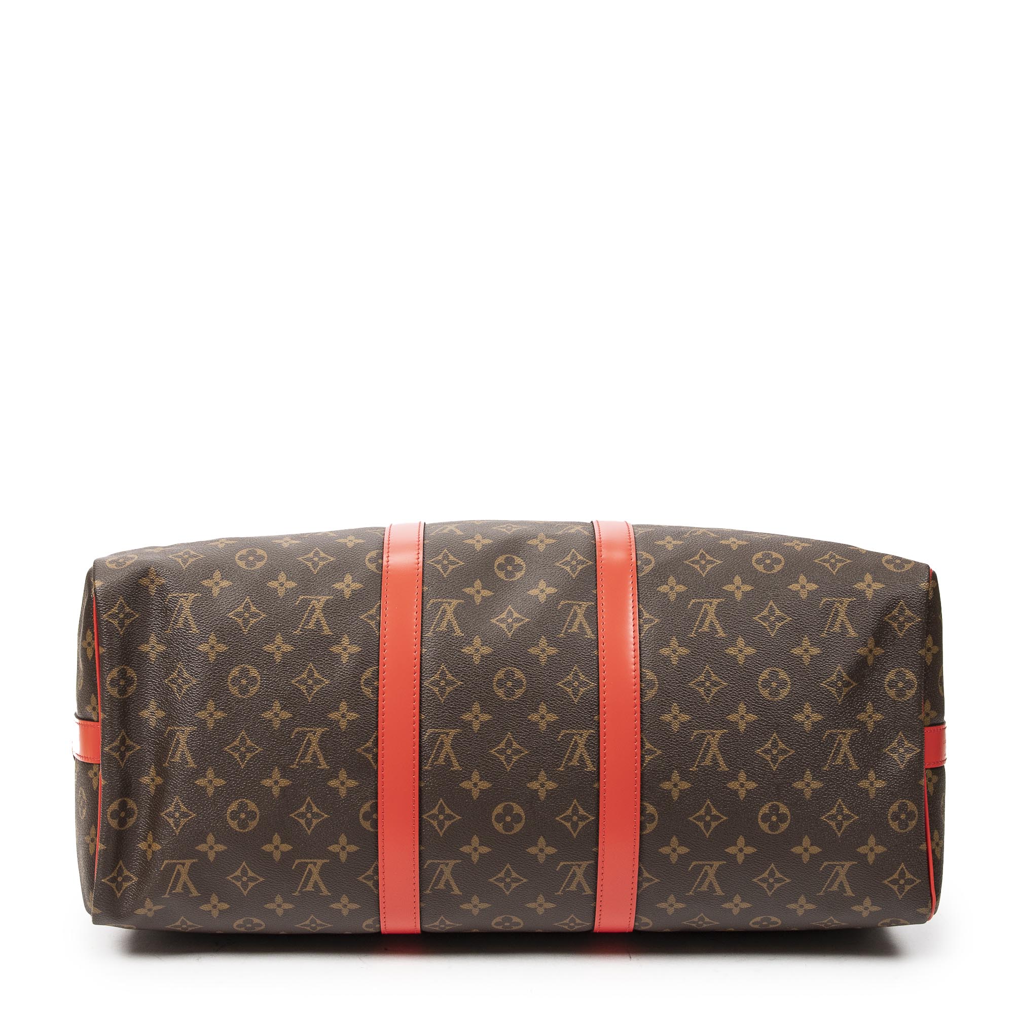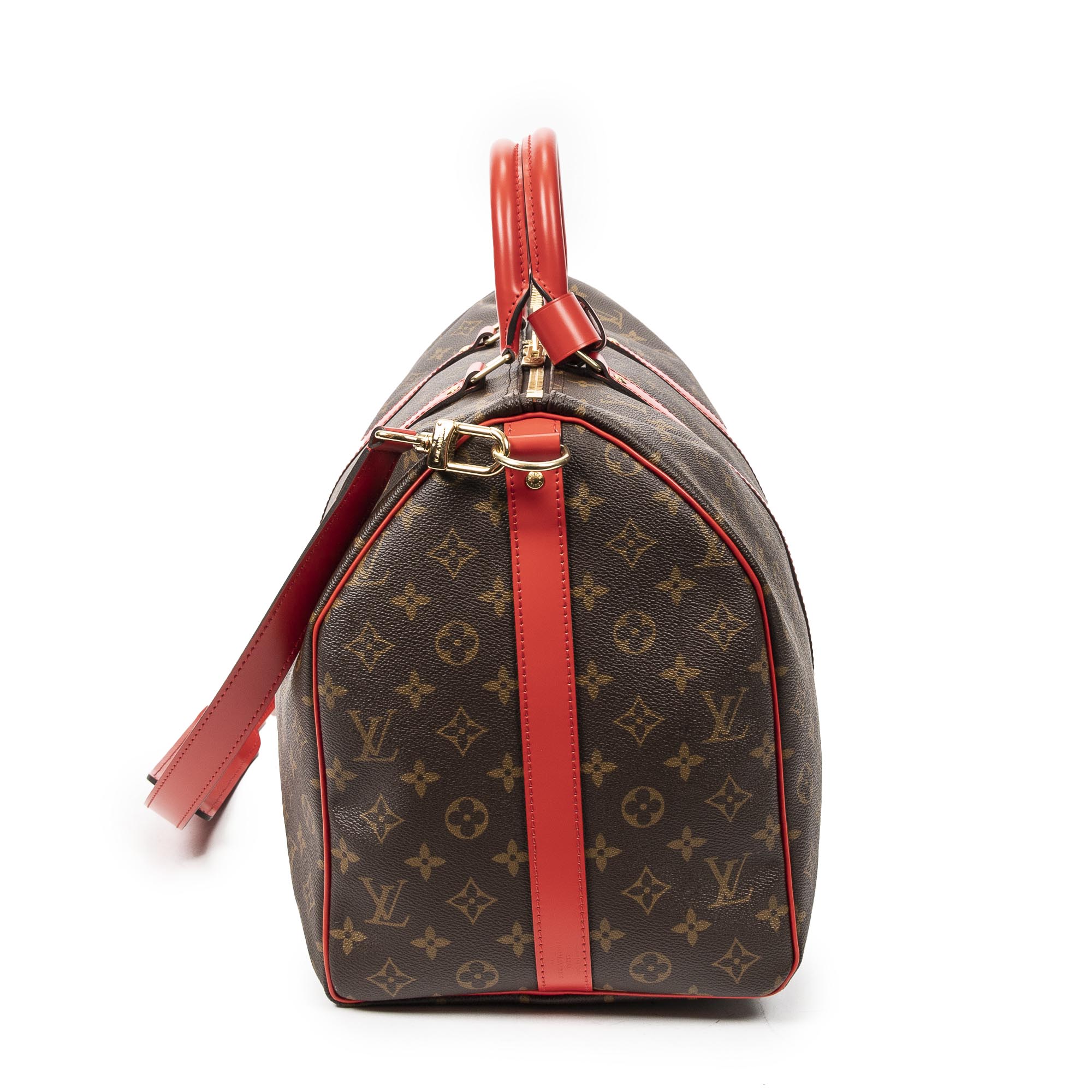Louis Vuitton Sac de voyage Ltd. Ed. Summer Edition Keepall Bandouliere 50 en Marron/Rouge et Cuivre d’Or. Le produit est en Parfait état (AA).