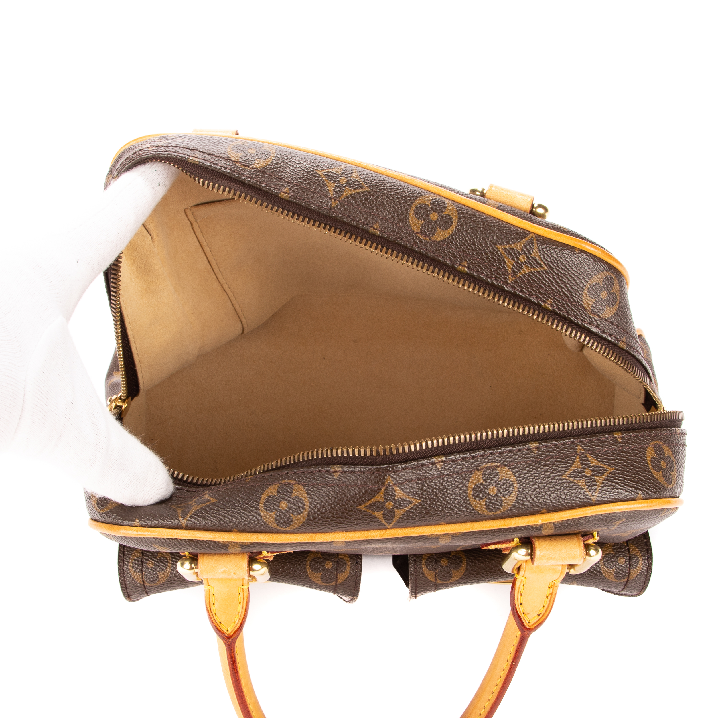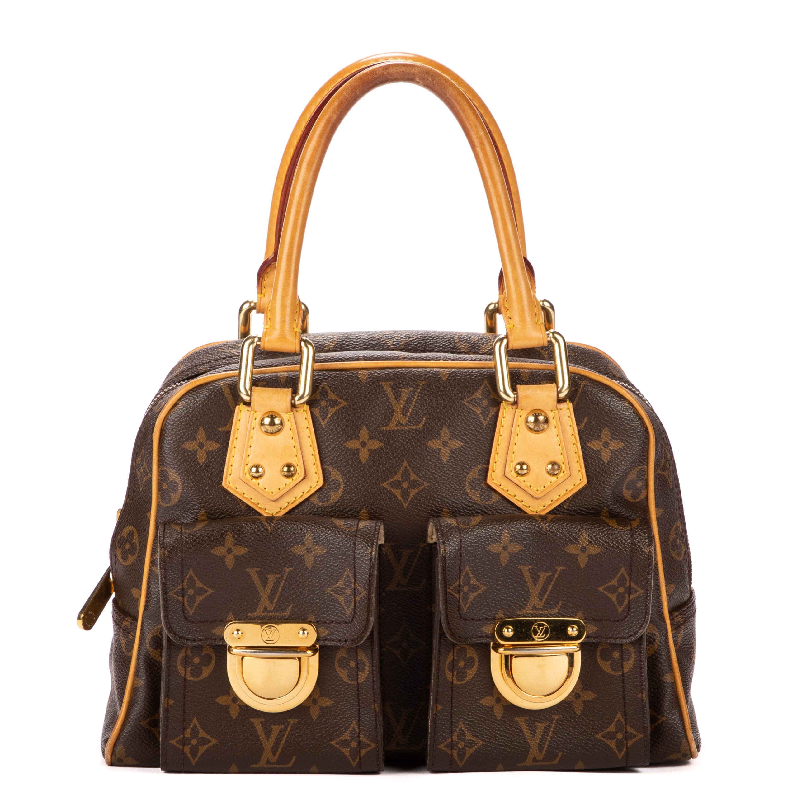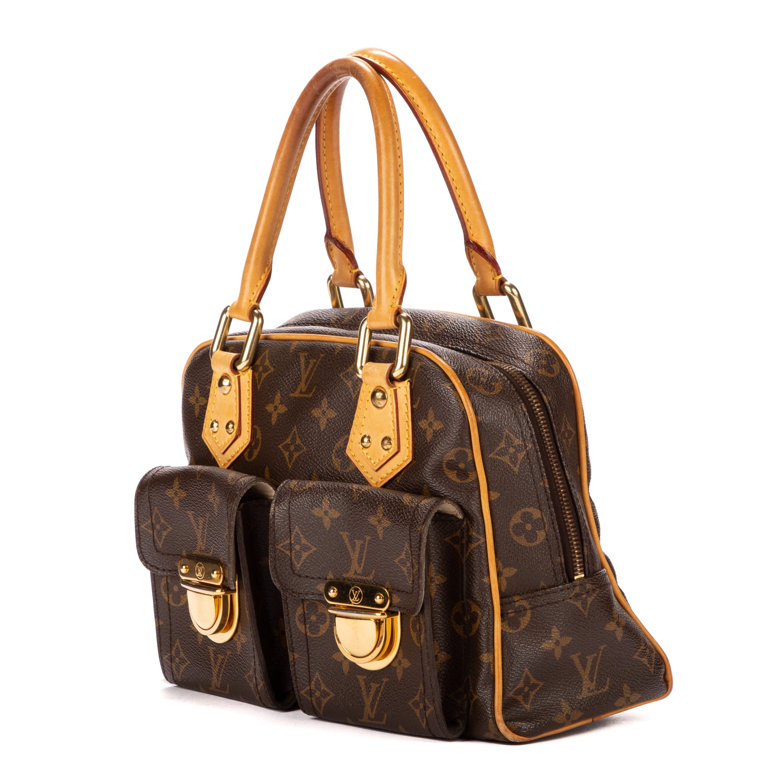 Louis Vuitton Sac à main Manhattan PM en Brown et Cuivre d’Or. Le produit est en Très Bon état (AB).