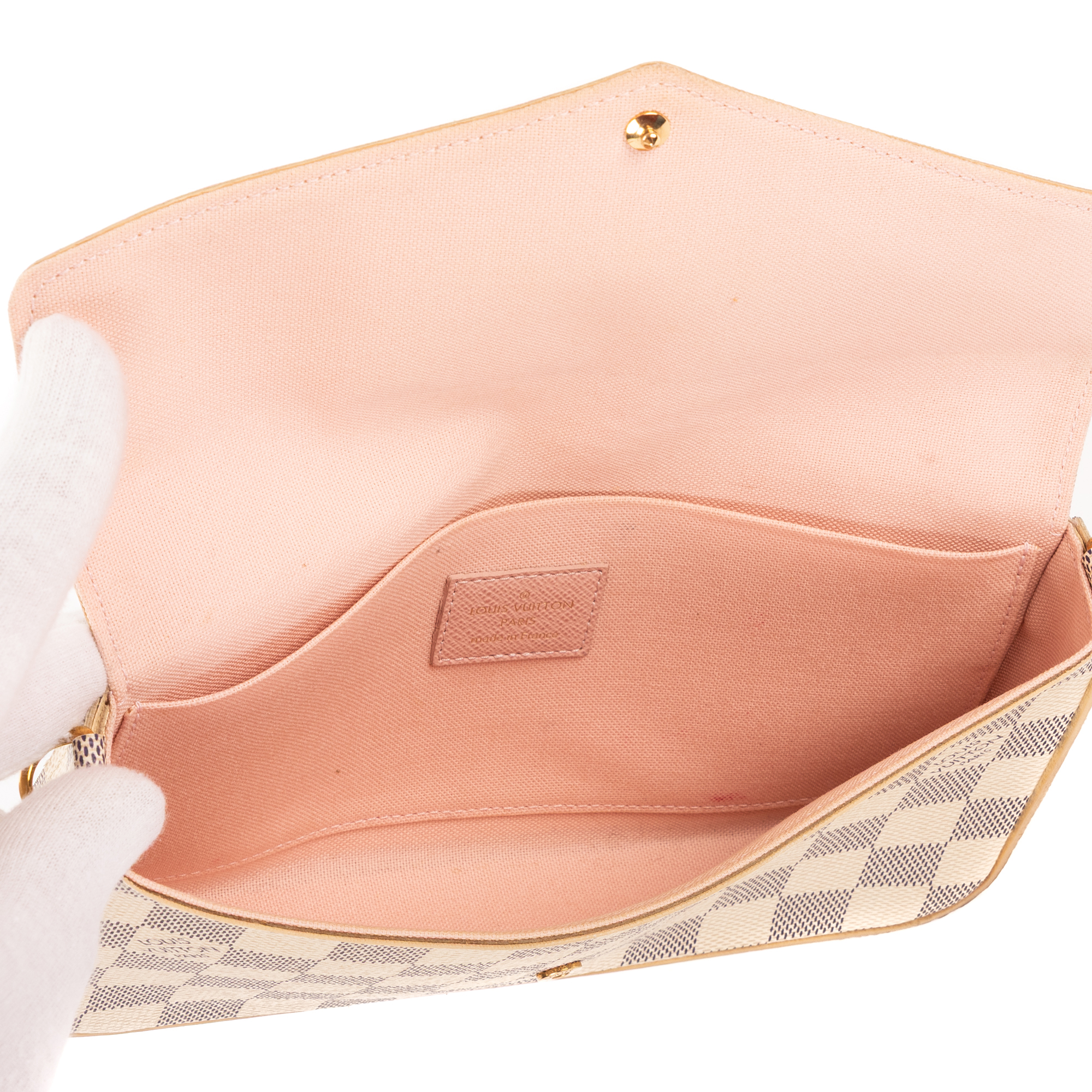 Louis Vuitton Sac à main Pochette Félicie en White et Cuivre d’Or. Le produit est en Excellent état (A).