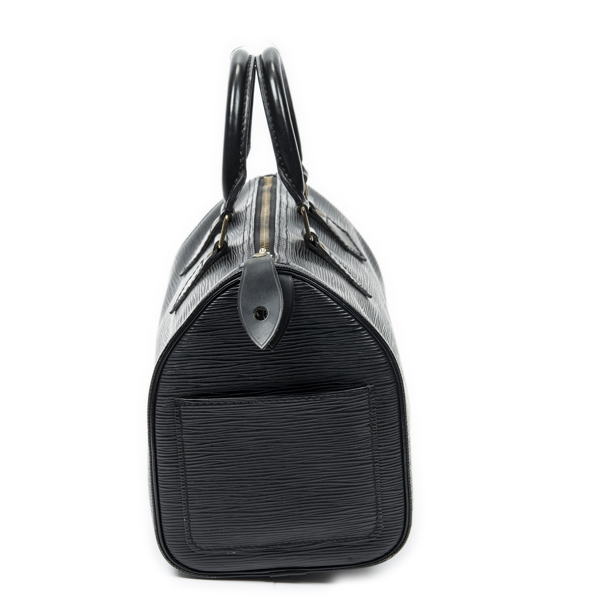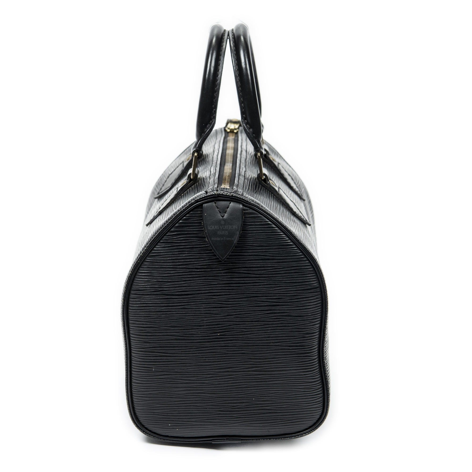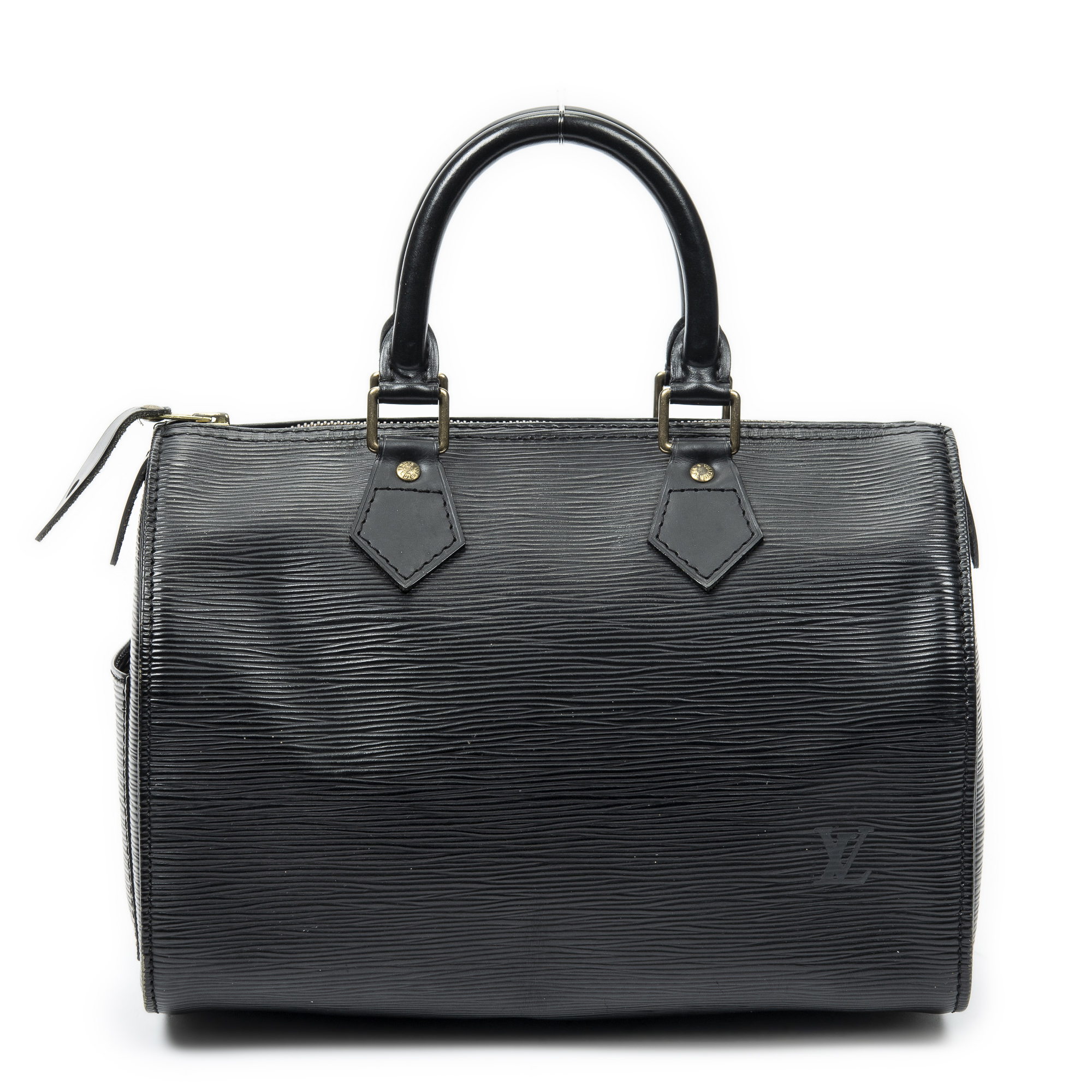 Louis Vuitton Sac à main Speedy 25 en Black et Cuivre d’Or. Le produit est en Très Bon état (AB).