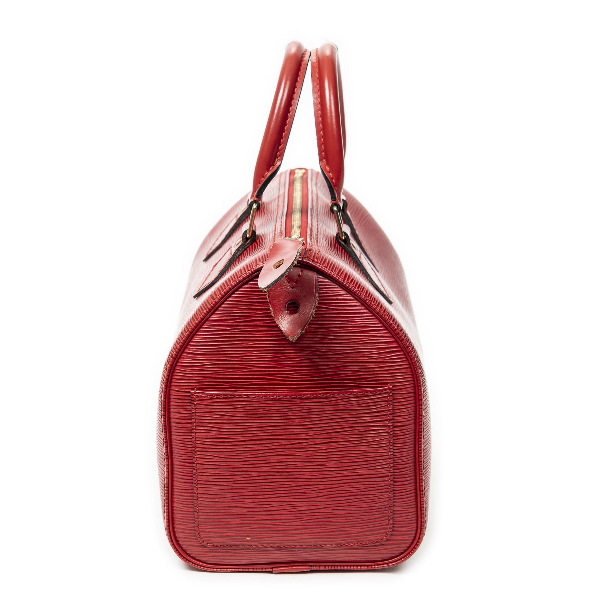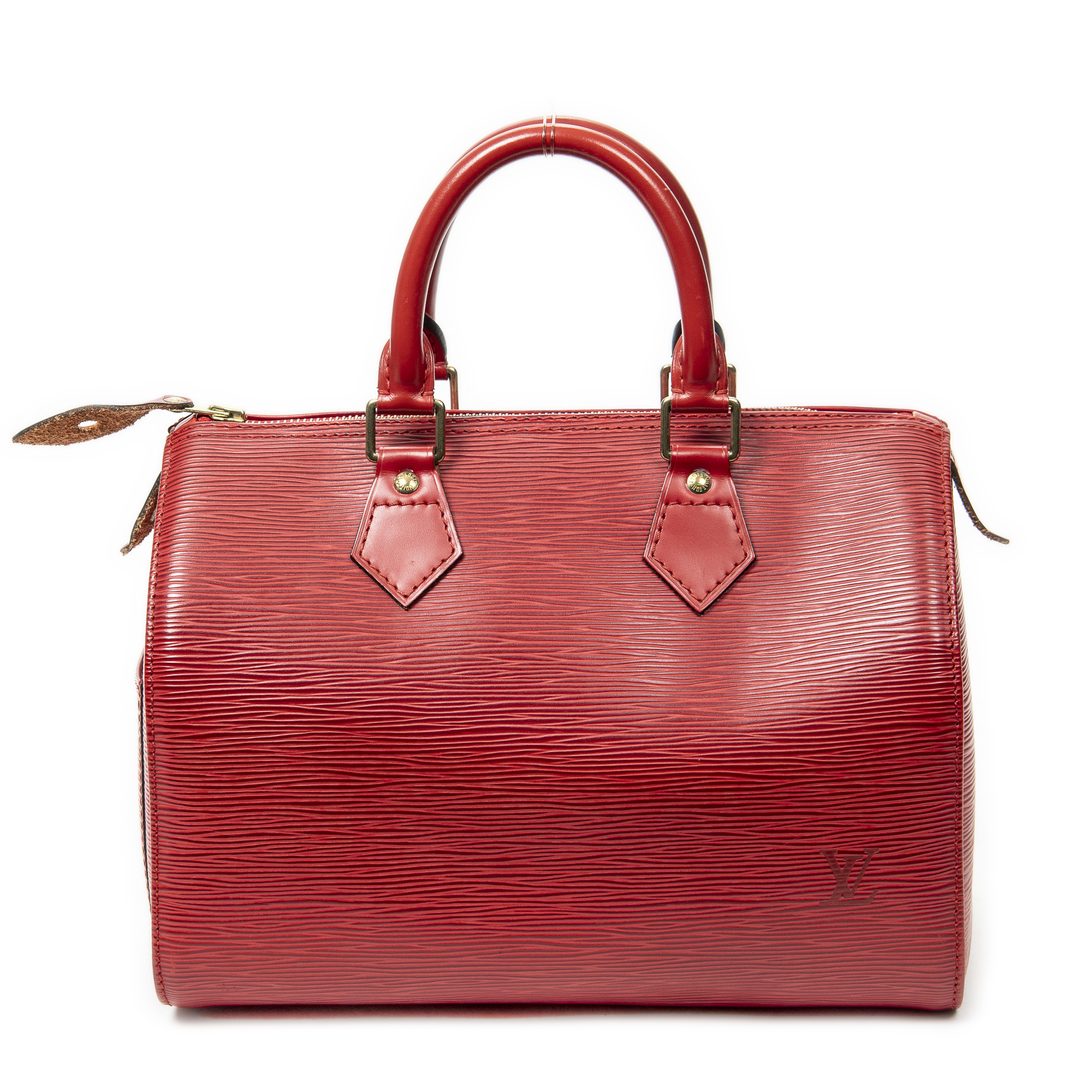 Louis Vuitton Sac à main Speedy 25 en Rouge et Laiton doré. Le produit est en Excellent état (A).