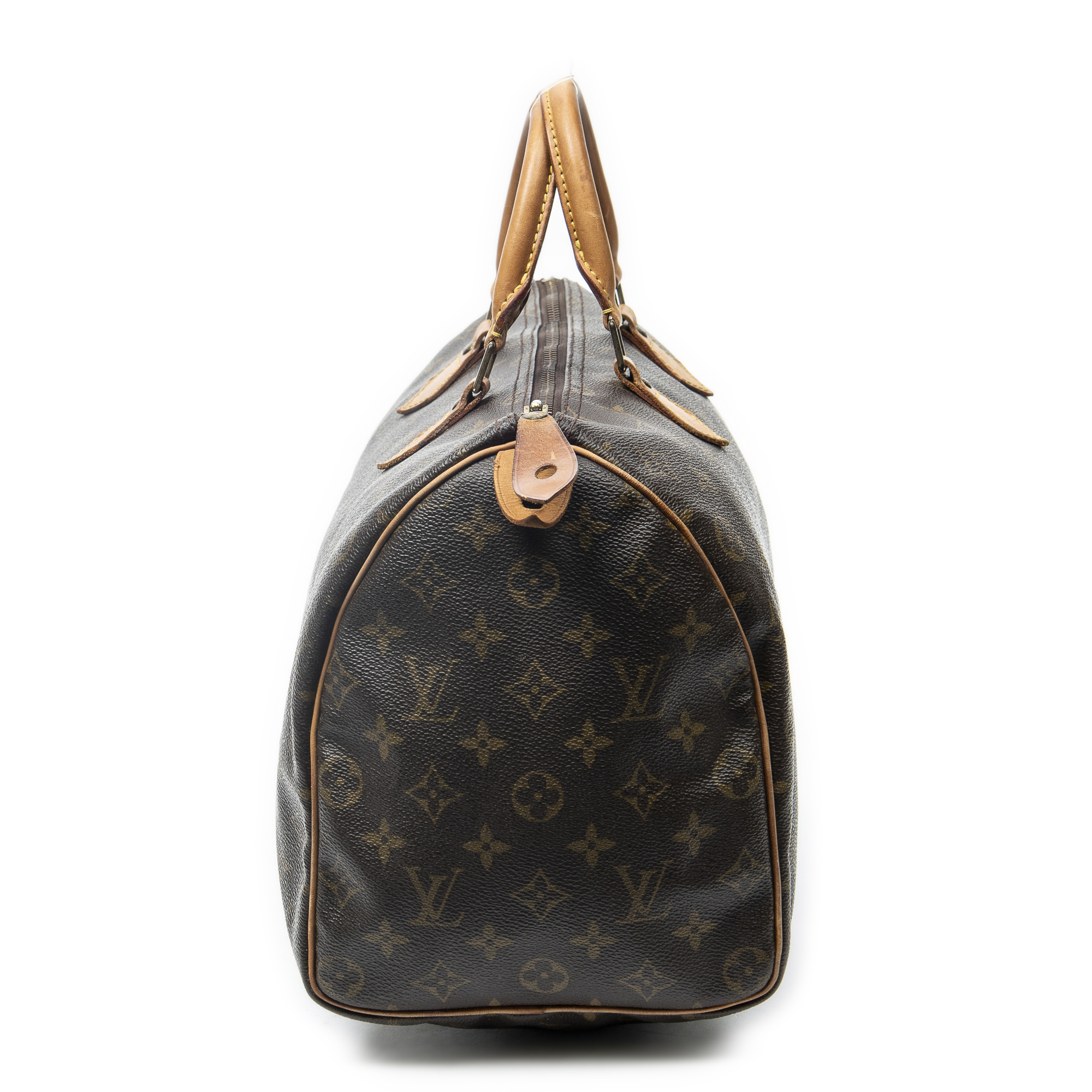 Louis Vuitton Sac à main Speedy 35 en Brown et Cuivre d’Or. Le produit est en Très Bon état (AB).