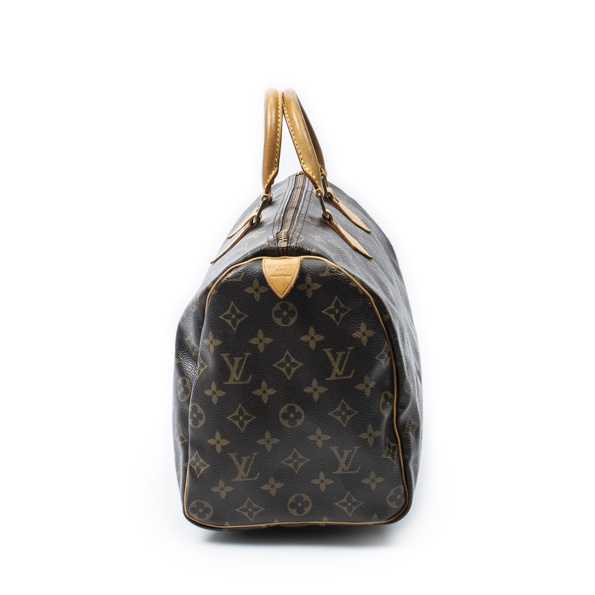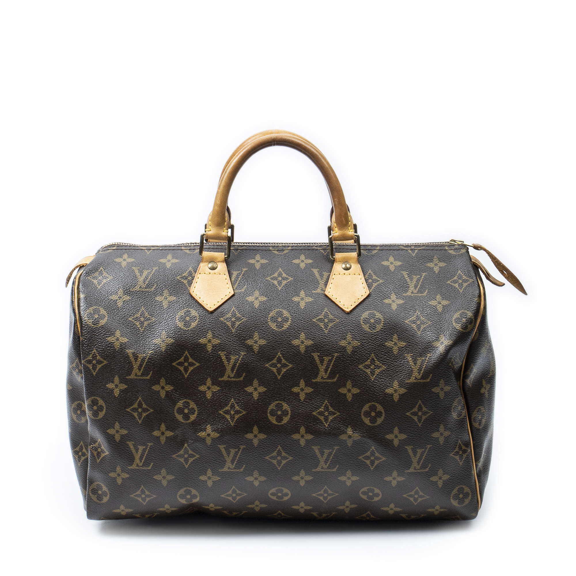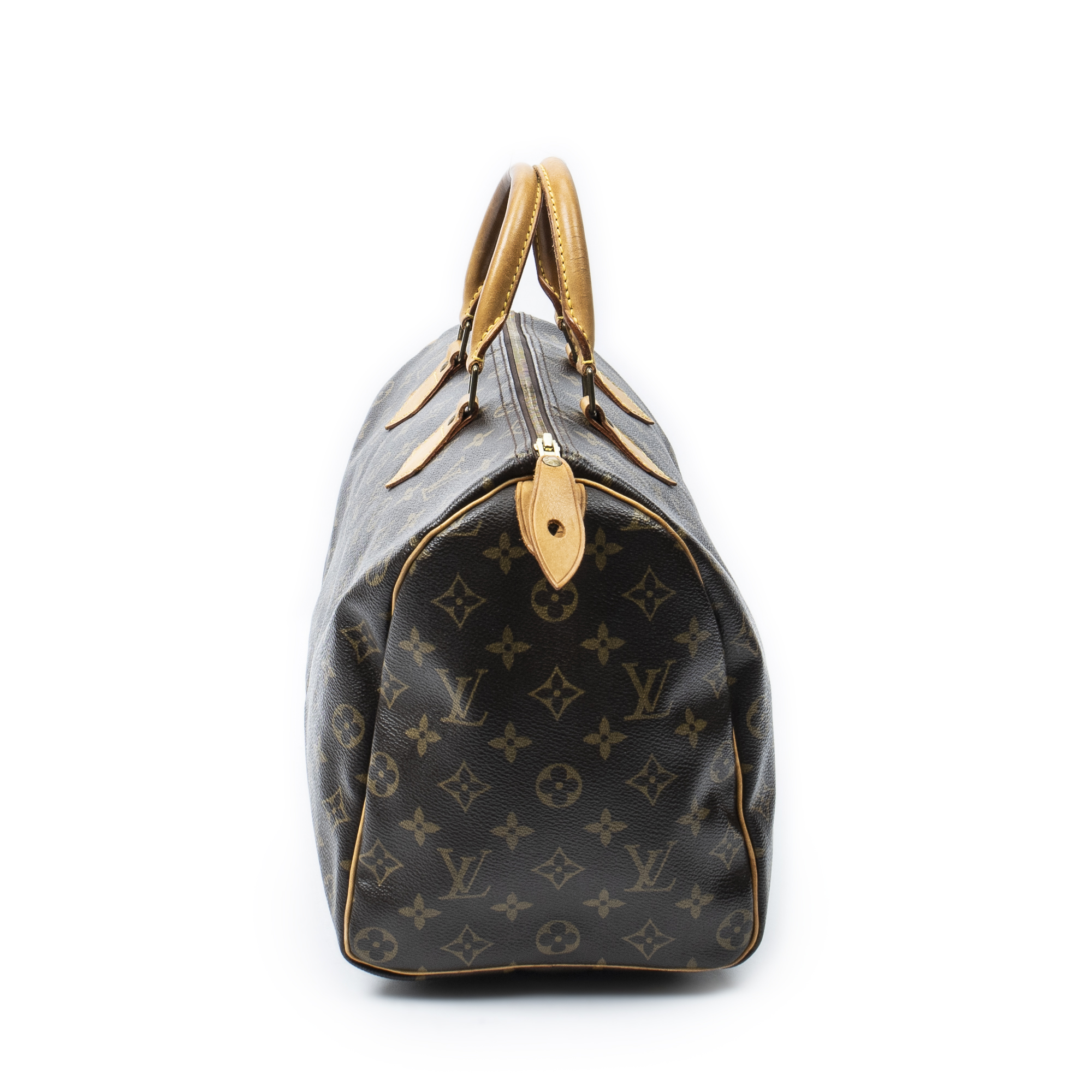 Louis Vuitton sac à main Speedy 35 en brun et laiton doré. Le produit est en Très Bon état (AB).