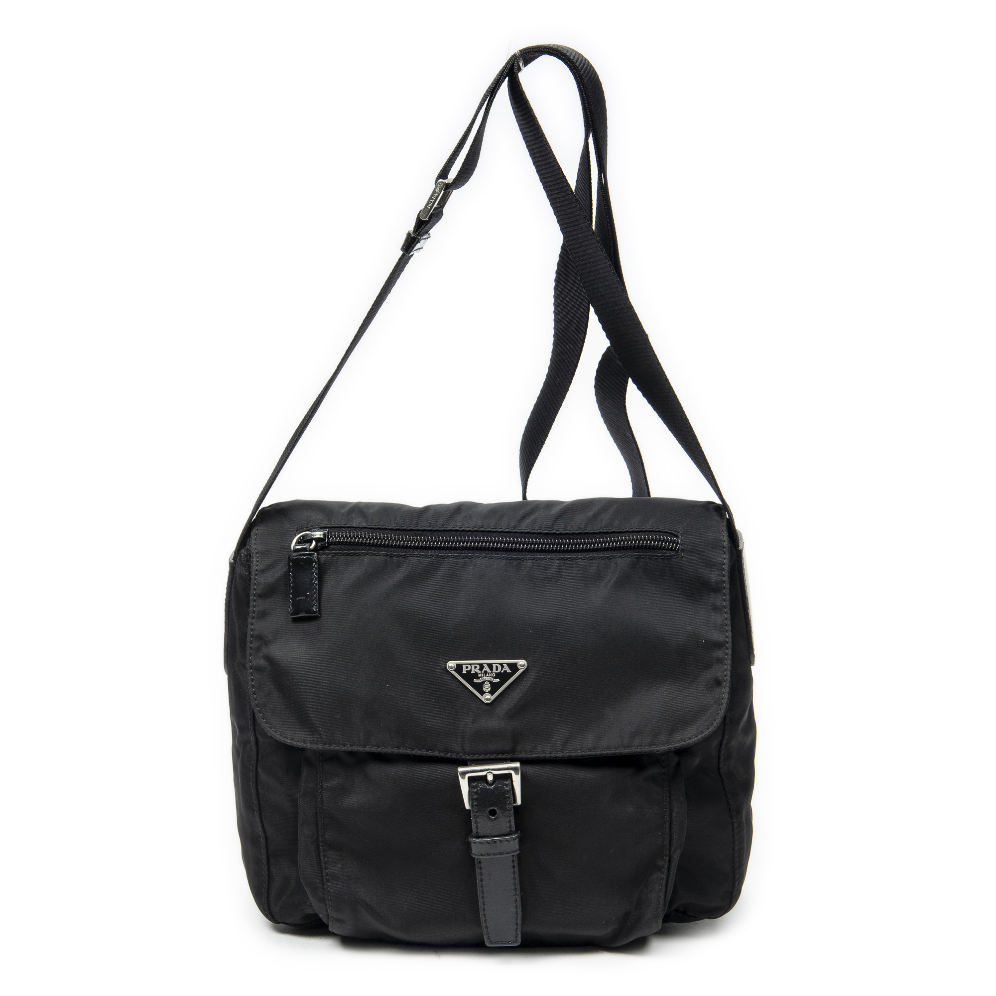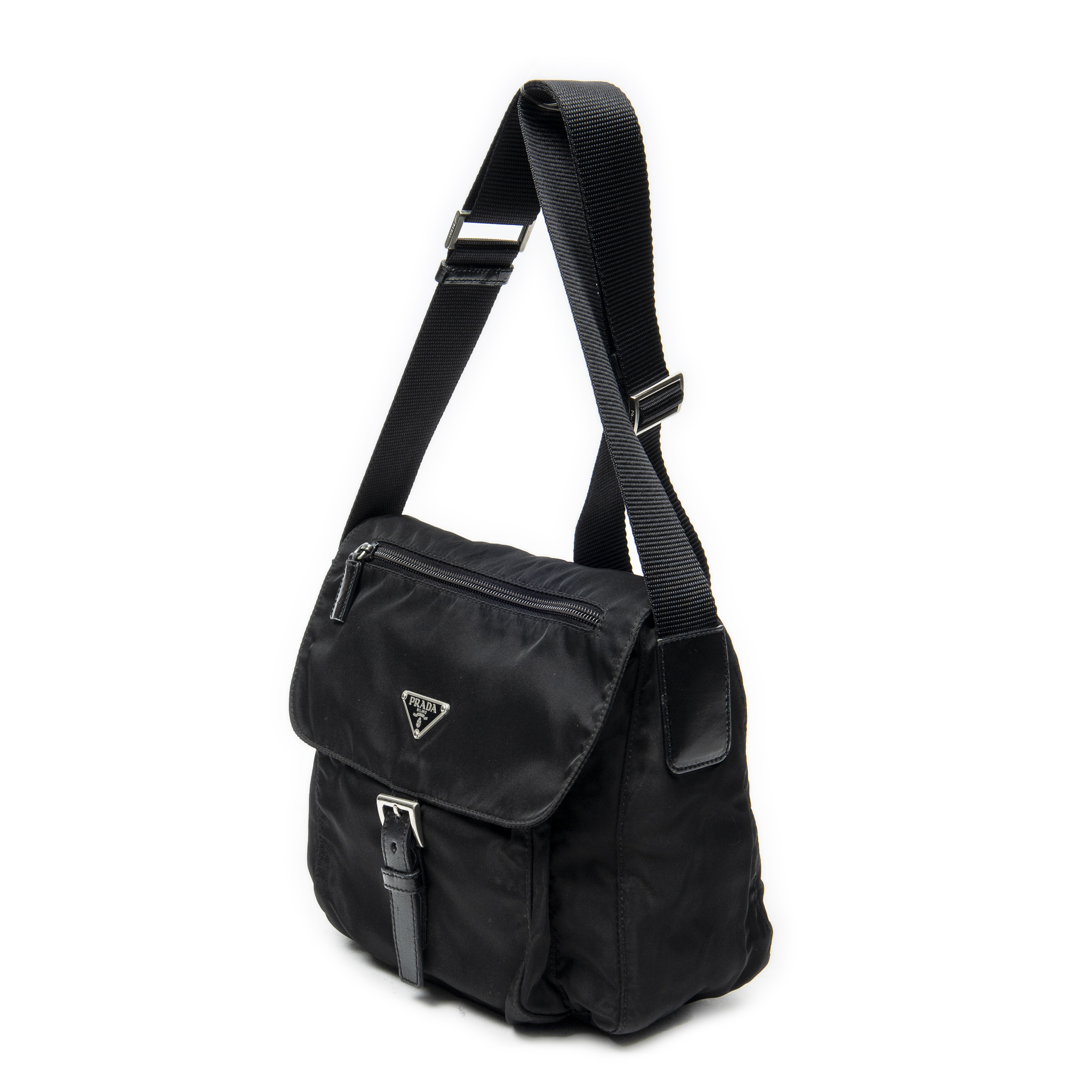 Prada Buckle Flap Crossbody en Black